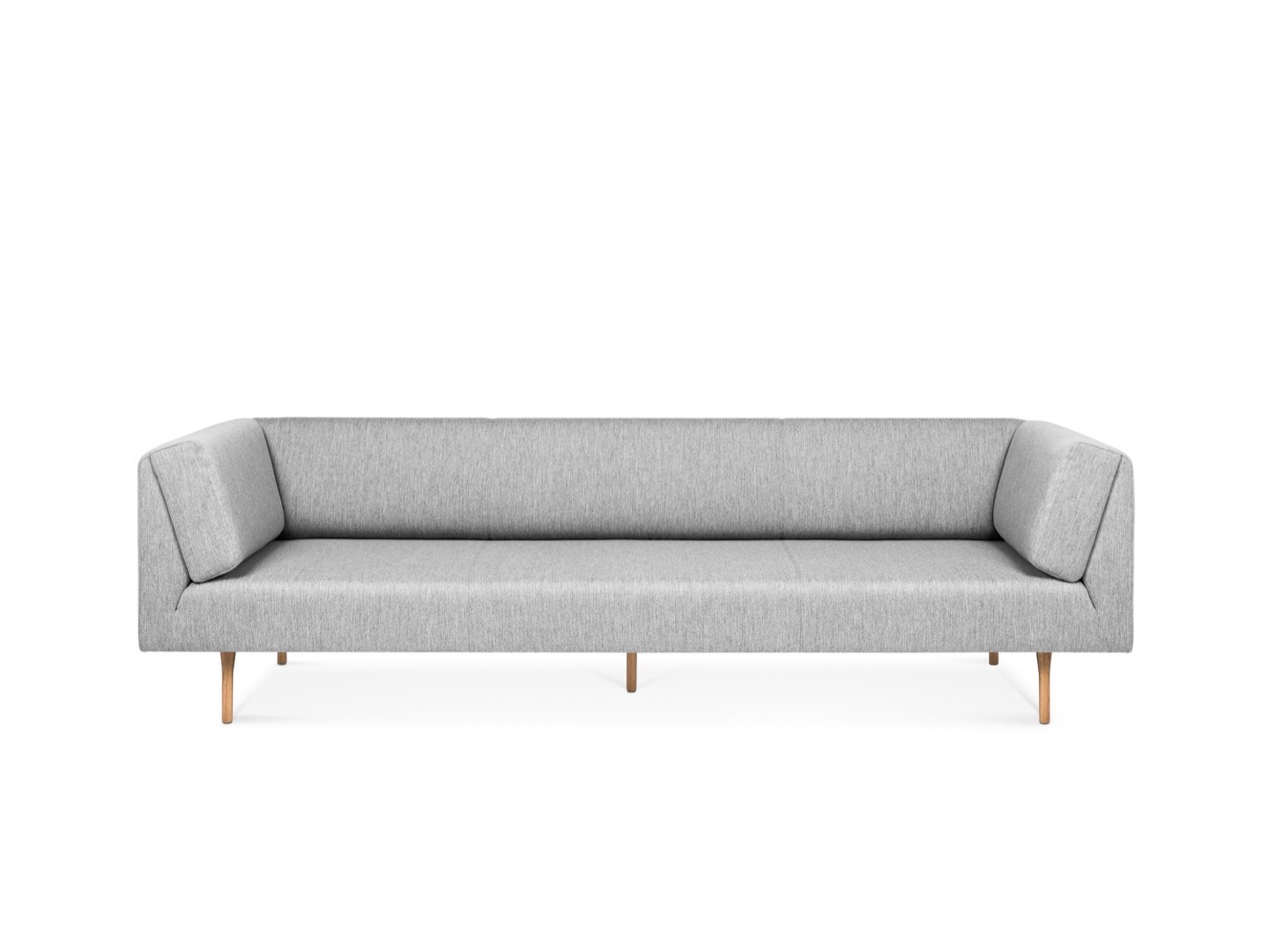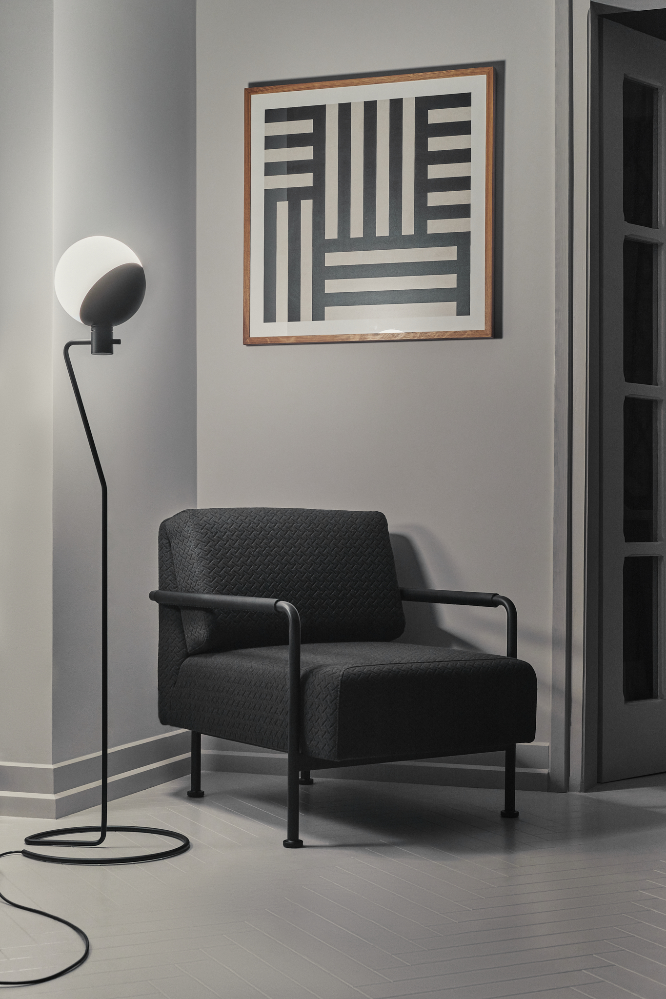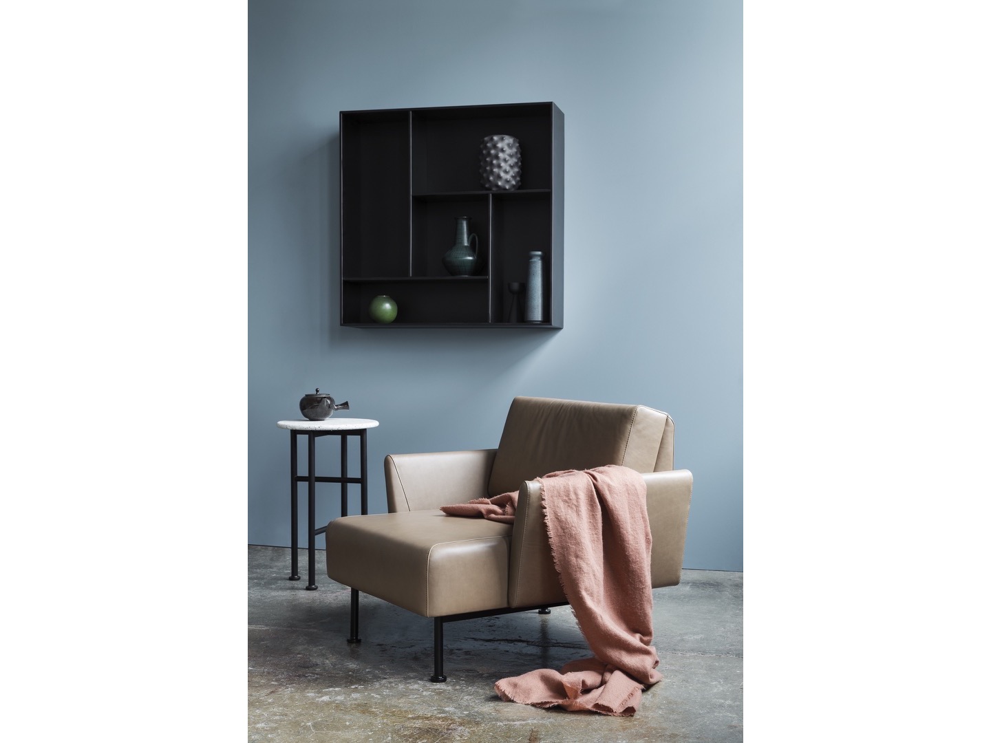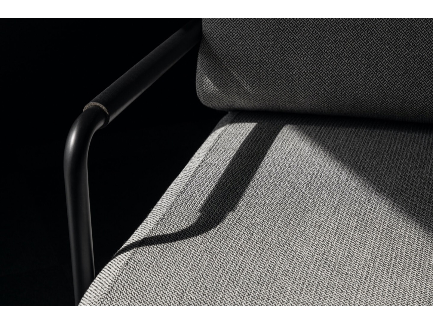 Charakterystyczną cechą kolekcji jest prostopadłościenna poduszka podłokietnika skierowana, pod kątem, do wewnątrz siedziska. Geometryczne oparcia składają się z twardszego korpusu i miękkiego podparcia, a połączone są w jedną formę wspólnym materiałem tapicerskim.