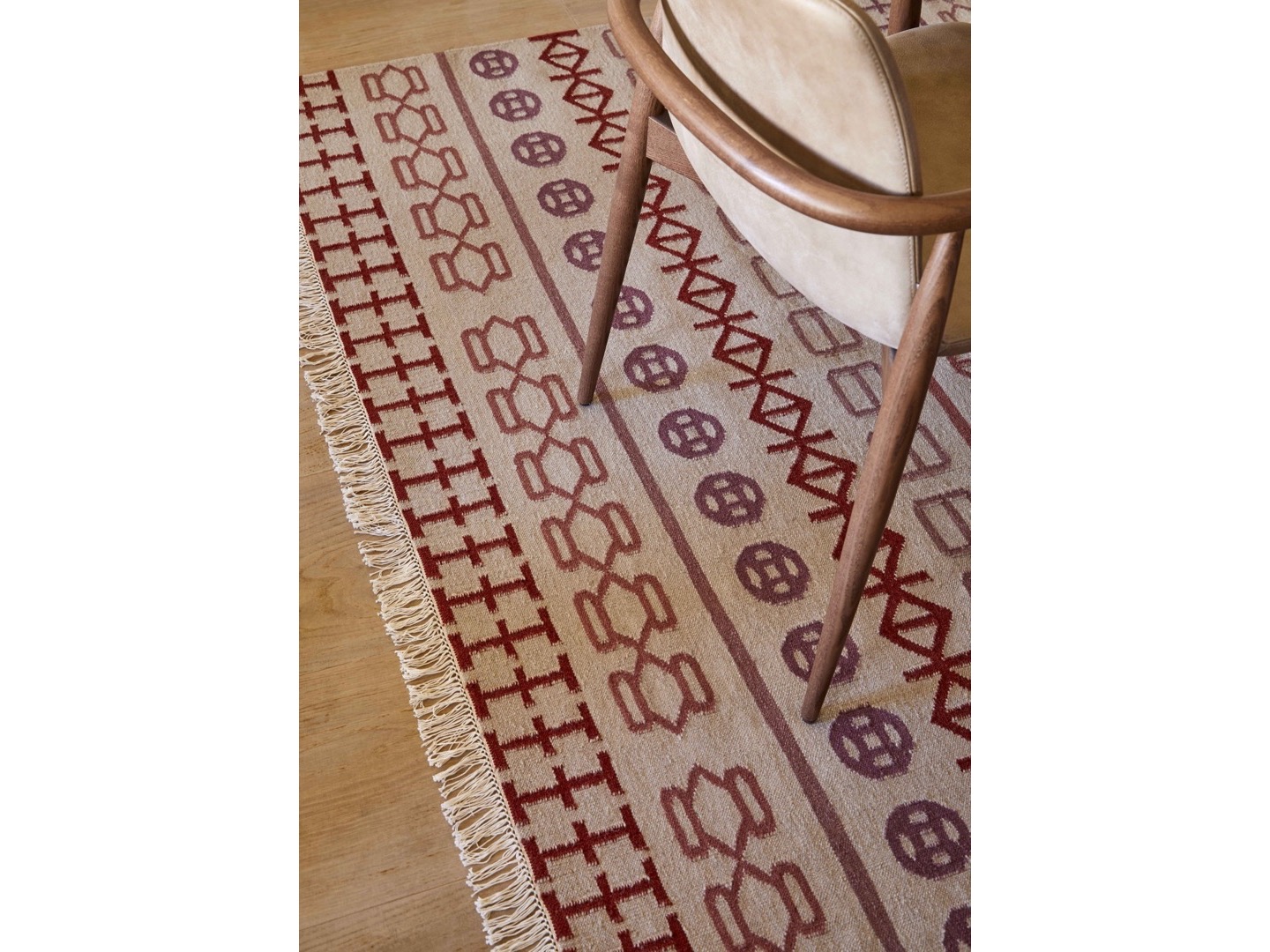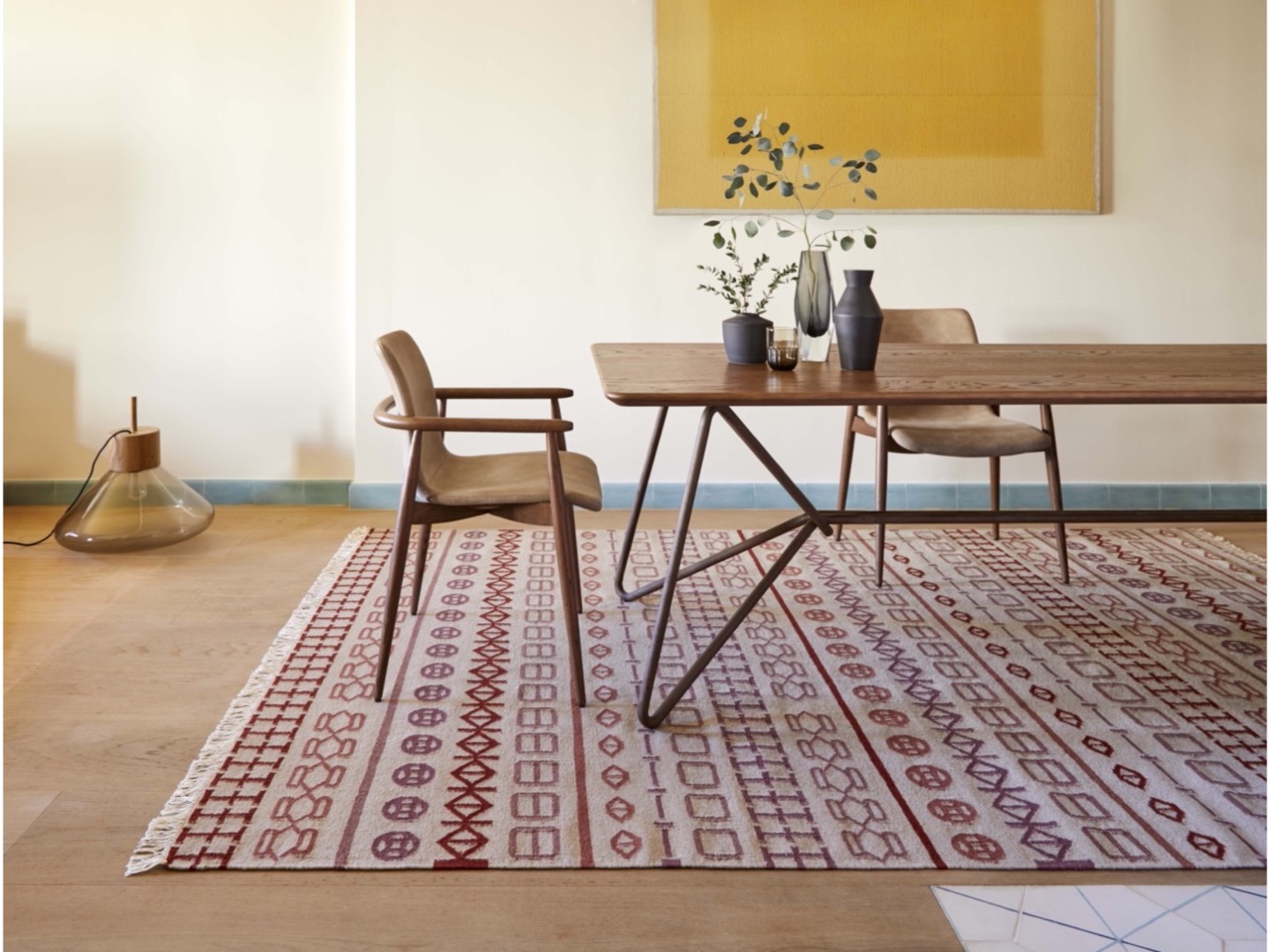 Ręcznie robiony dywan o charakterystycznym geometrycznym wzorze.