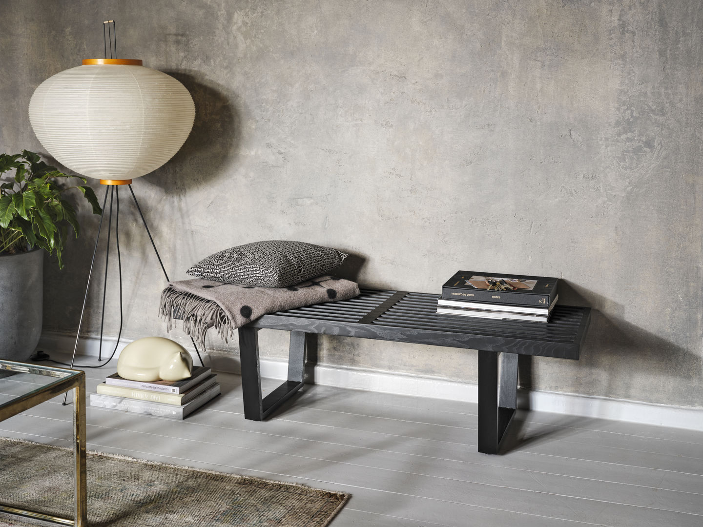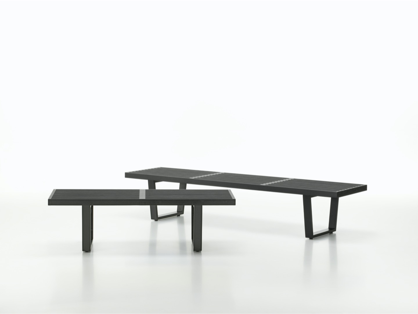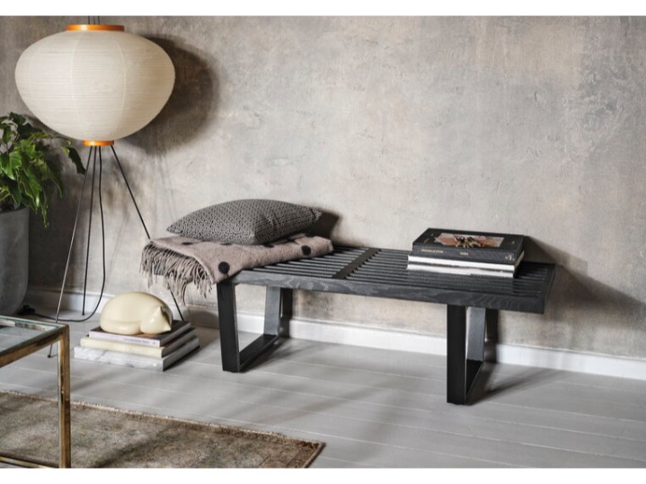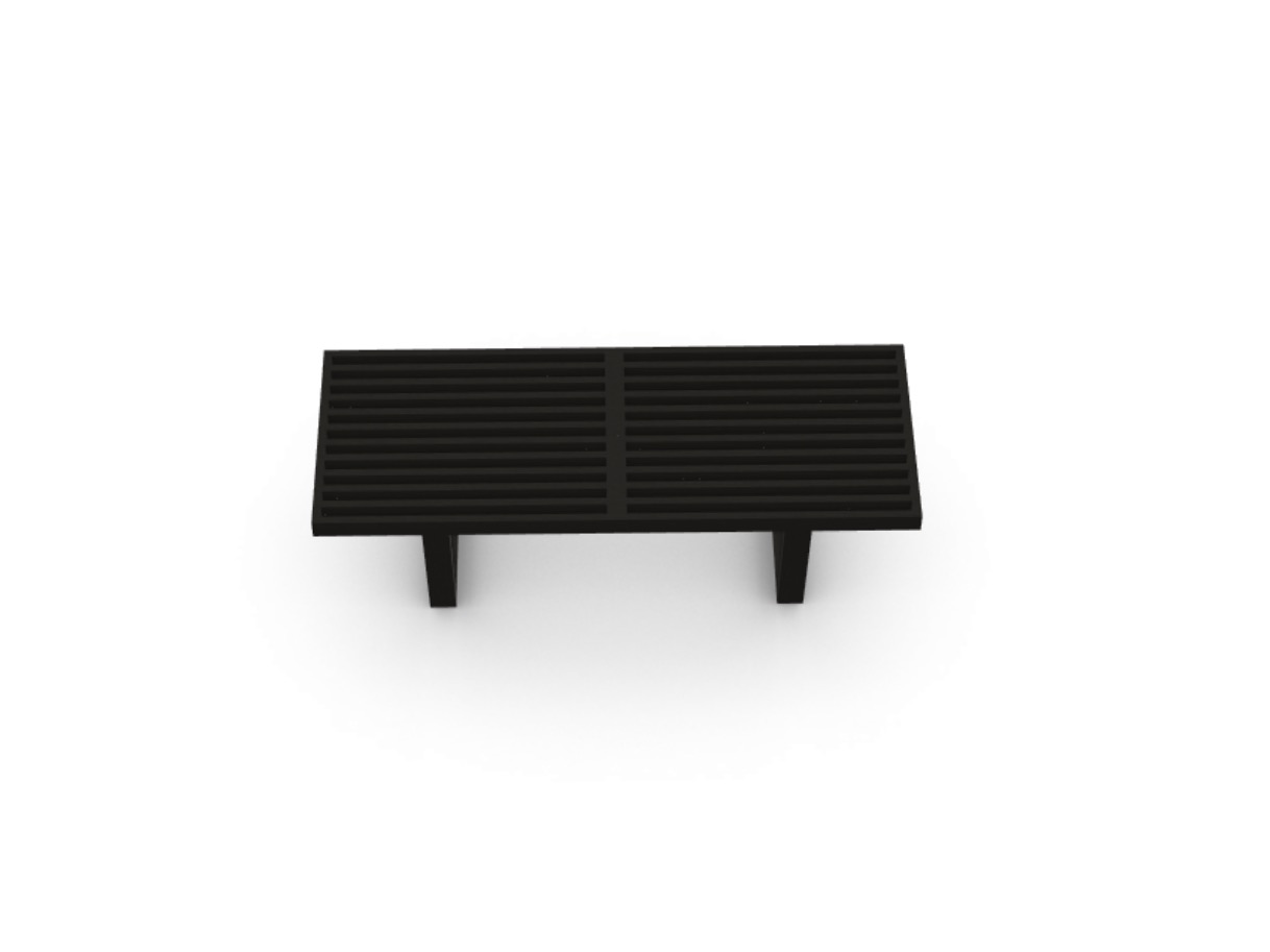 Ławka Nelson Bench jest wykonana z drewna jesionowego, łącząc naturalny kolor siedziska z czarnym wykończeniem podstawy. Jej czysta, linearna estetyka podkreśla architektoniczne wykształcenie projektanta, George'a Nelsona. Może służyć jako ławka lub niski stolik i jest dostępna w dwóch różnych długościach.