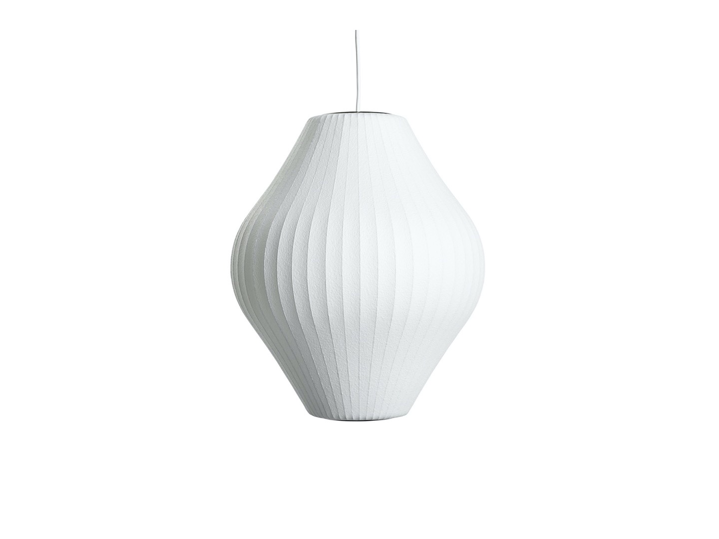 Nelson Pear Bubble Lamp, jest częścią serii Nelson Bubble Lamp o kształcie gruszki, która rozszerza się w kierunku środka, z przecinającymi się liniami pod konstrukcją, które podkreślają jej krzywe. Pierwotnie George Nelson zaprojektował serię lamp Bubble w 1952 roku. Zainspirował go zestaw szwedzkich lamp wiszących pokrytych jedwabiem.