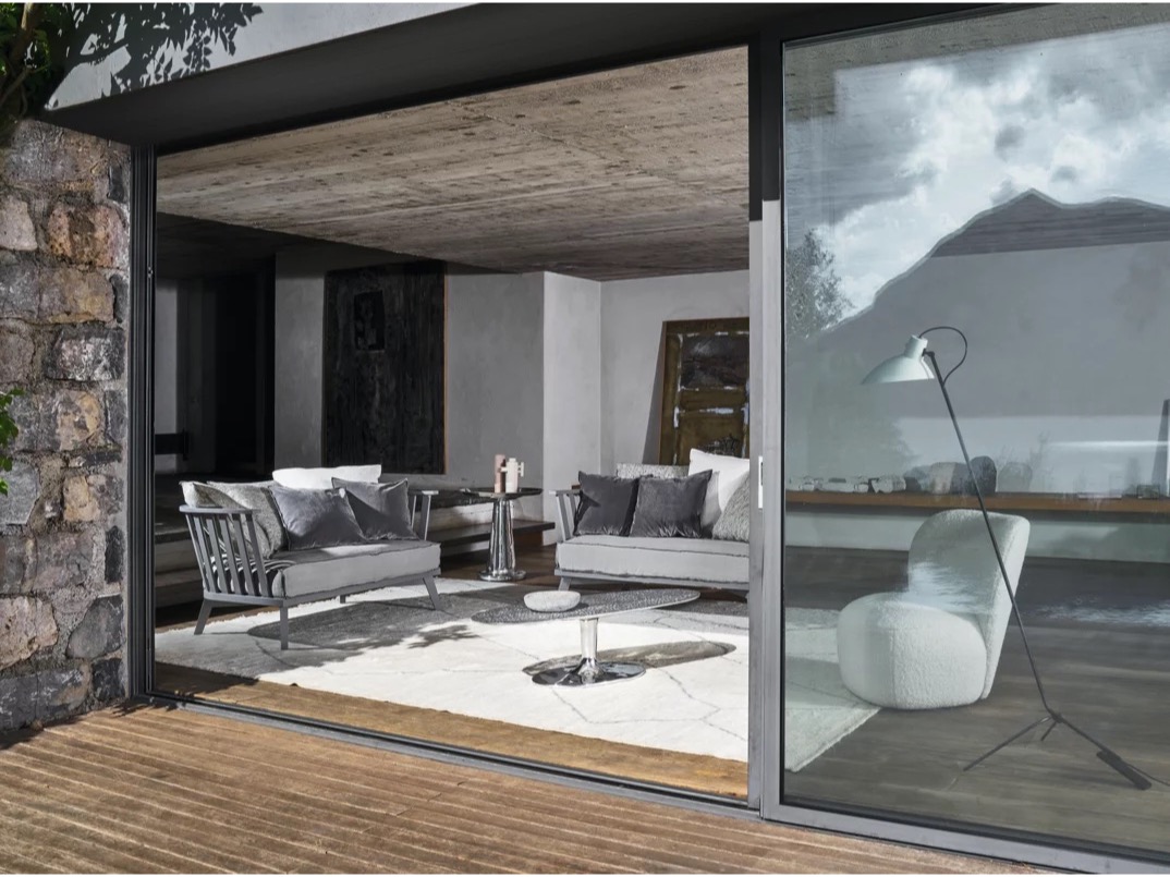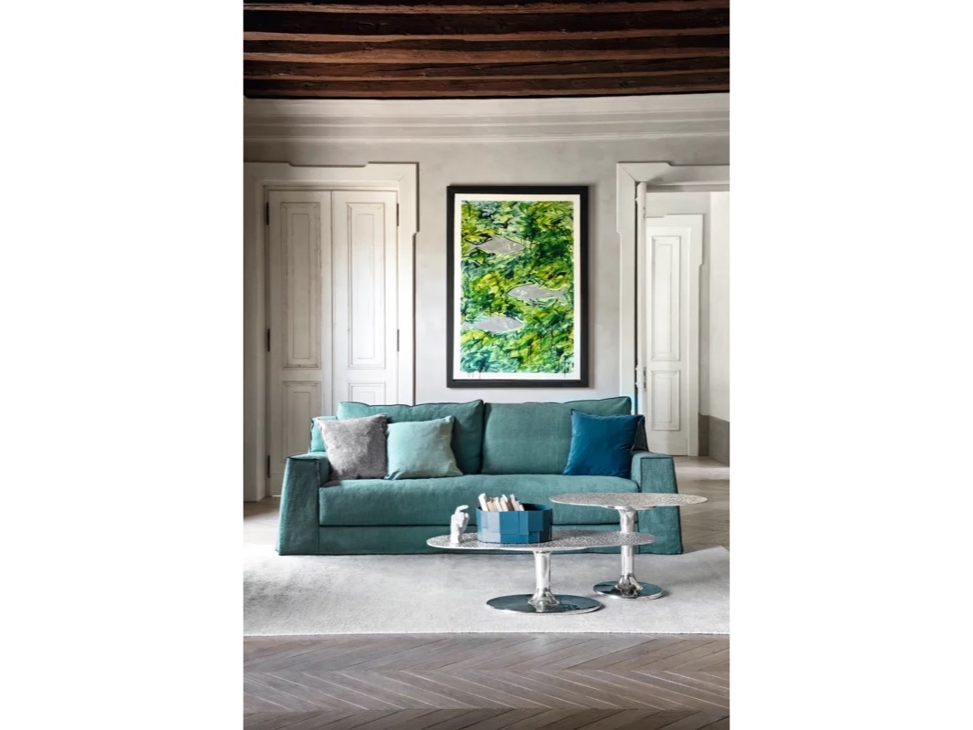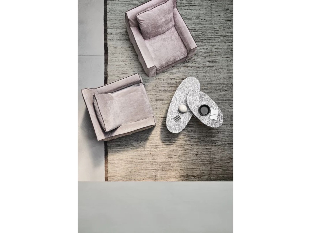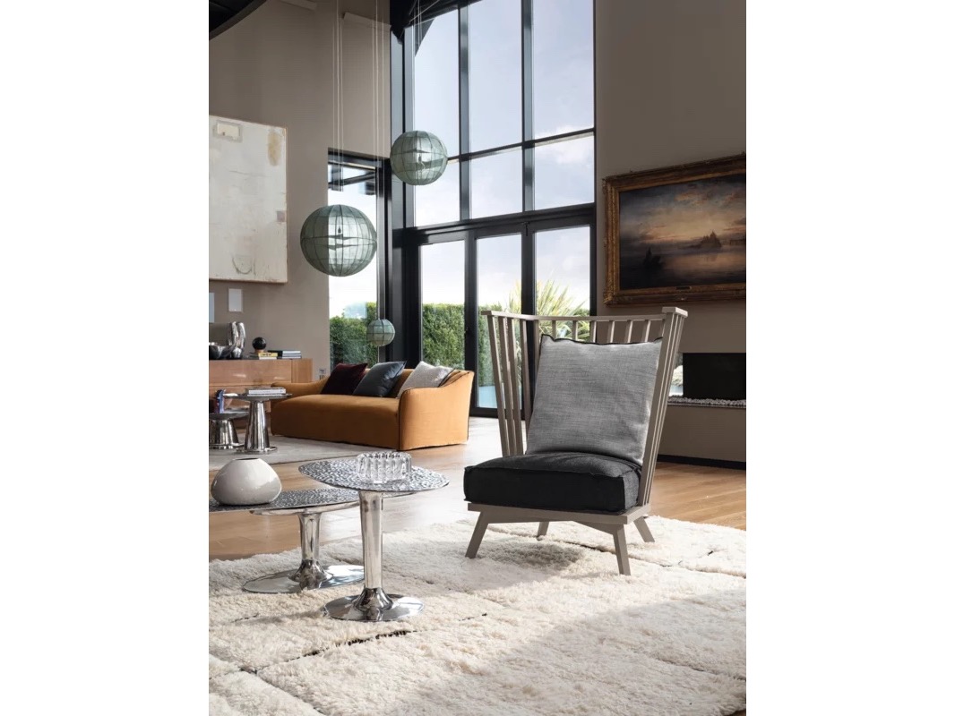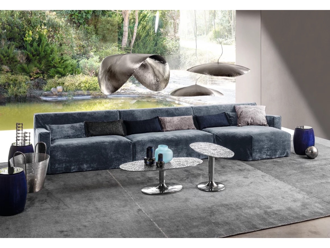 Wykonane w całości z polerowanego odlewu aluminium, są dostępne w różnych rozmiarach i wysokościach i charakteryzują się pojedynczą centralną podstawą, która wydaje się podtrzymywać tacę z lekko uniesionymi krawędziami. Połysk powierzchni sprawia, że światło za każdym razem tworzy inny efekt.