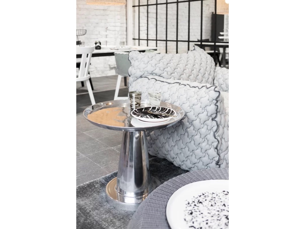 Kontrasty światła i refleksów charakteryzują rodzinę stolików kawowych Next 141/142/144. Wykonane w całości z polerowanego odlewu aluminiowego, są dostępne w różnych rozmiarach i wysokościach. Połysk powierzchni sprawia, że światło za każdym razem tworzy inne efekty.