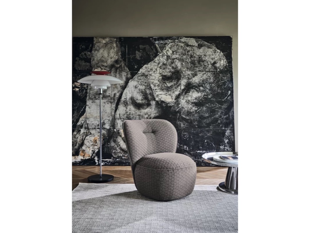 Pełne objętości zaokrąglone kształty charakteryzują rodzinę stołów Next 232/236. Dostępne w dwóch rozmiarach, wyróżniają się rzeźbiarską podstawą centralną o pełnych kształtach, wykonaną z betonu GFRC, wykończoną matową szarą farbą, a blat wykonany jest z białego marmuru z Carrary.