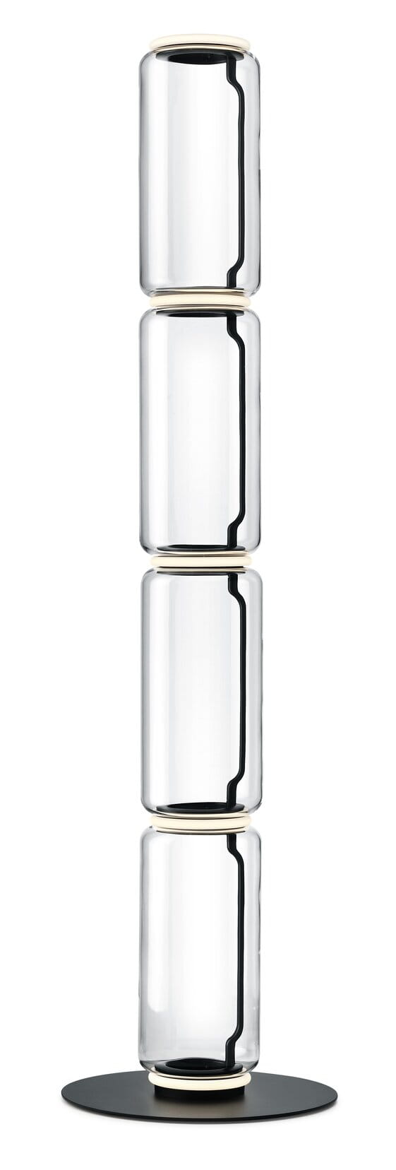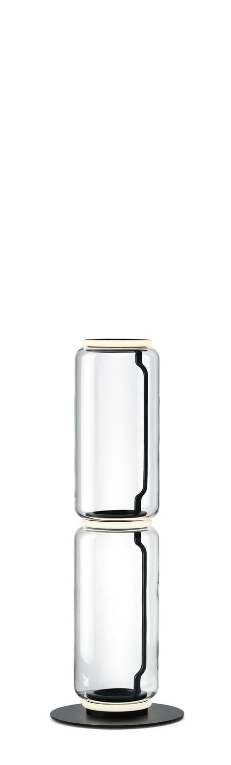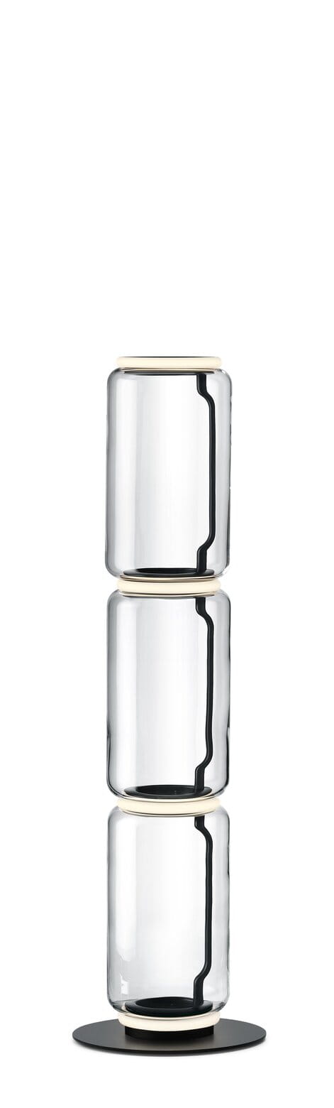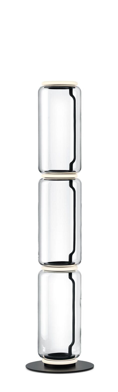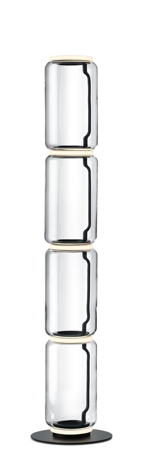 Lampy stojące składające się z połączonych ze sobą szklanych modułów osiągających wysokość 2,17 metra. Cylindryczna i półsferyczna konstrukcja z przezroczystego dmuchanego szkła, podstawa i pierścienie z odlewanego ciśnieniowo aluminium, wewnętrzne ramiona boczne z hydroformowanej stali i formowane wtryskowo opalowe dyfuzory z silikonowym pierścieniem zewnętrznym. Panel sterowany pedałem służy jako ściemniacz do regulacji natężenia światła w zakresie od 10% do 100% w dowolnym kierunku. Montowany na ścianie zasilacz z wymiennym panelem.