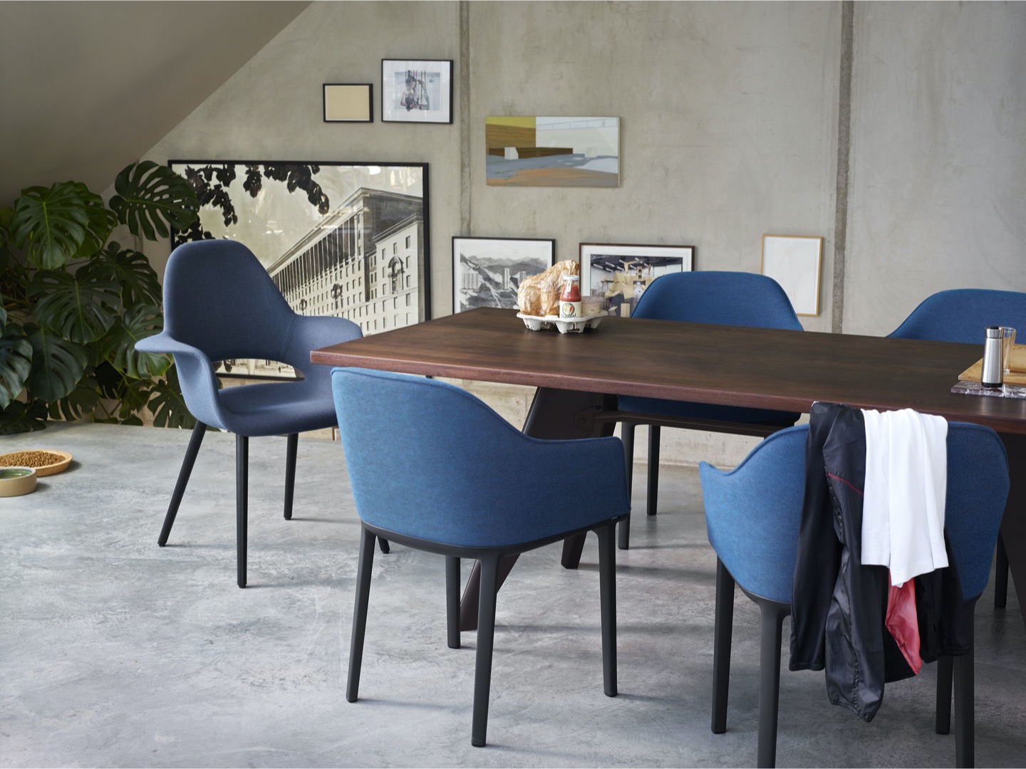 Organic Chair jest małym krzesełkiem do czytania, oryginalnie zaprojektowane do MoMA w Nowym Jorku przez Charlesa Eamsa i Eero Saarinena. Ten organiczny design został zaprojektowany do użytku domowego, a tu prezentujemy wersję konferencyjną.. Weszło do seryjnej produkcji dopiero w latach 50tych, bo dopiero wtedy możliwe było wyprodukowanie w większej ilości takich organicznych kształtów siedziska. W kolekcji dostępna jest również wersja z wyższym siedziskiem "Organic Highback"- 107cm.