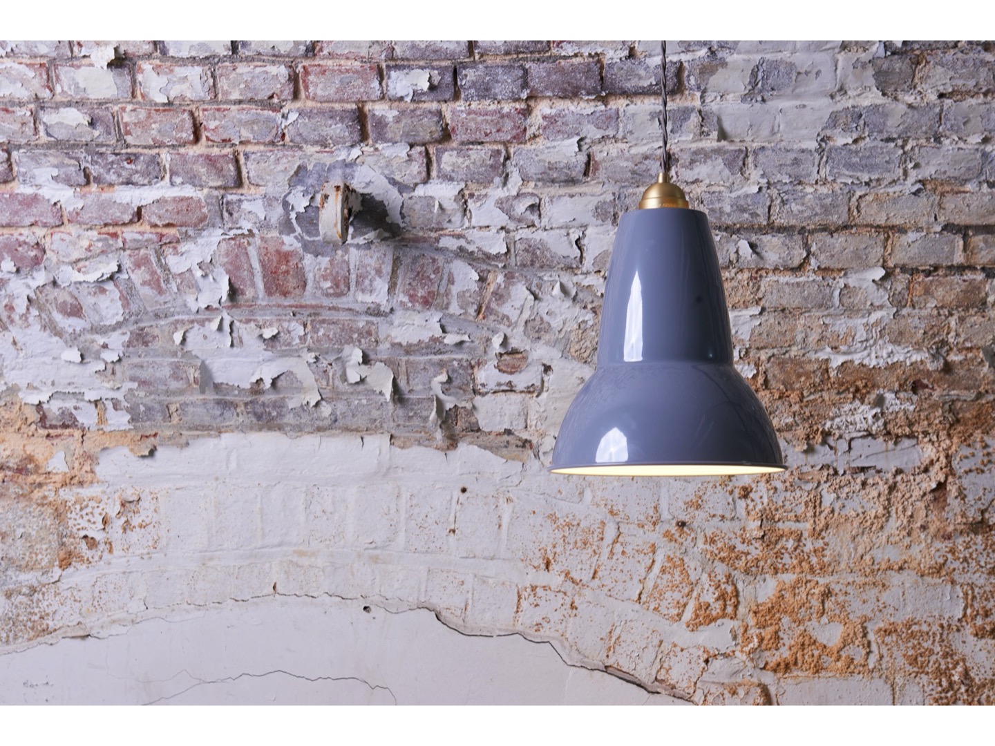 Original 1227? Brass Pendant to wariacja klasycznej lampy Anglepoise? ozdobiona mosiężnymi dodatkami, które nadają jej bardziej szlachetny, ekskluzywny charakter. Lampa wisi na pięknym, skręcanym z dwóch linek przewodzie w materiałowym oplocie, który - wraz doskonale dobraną paletę kolorów - nadaje lampie niepowtarzalny klimat lat pięćdziesiątych ubiegłego wieku.