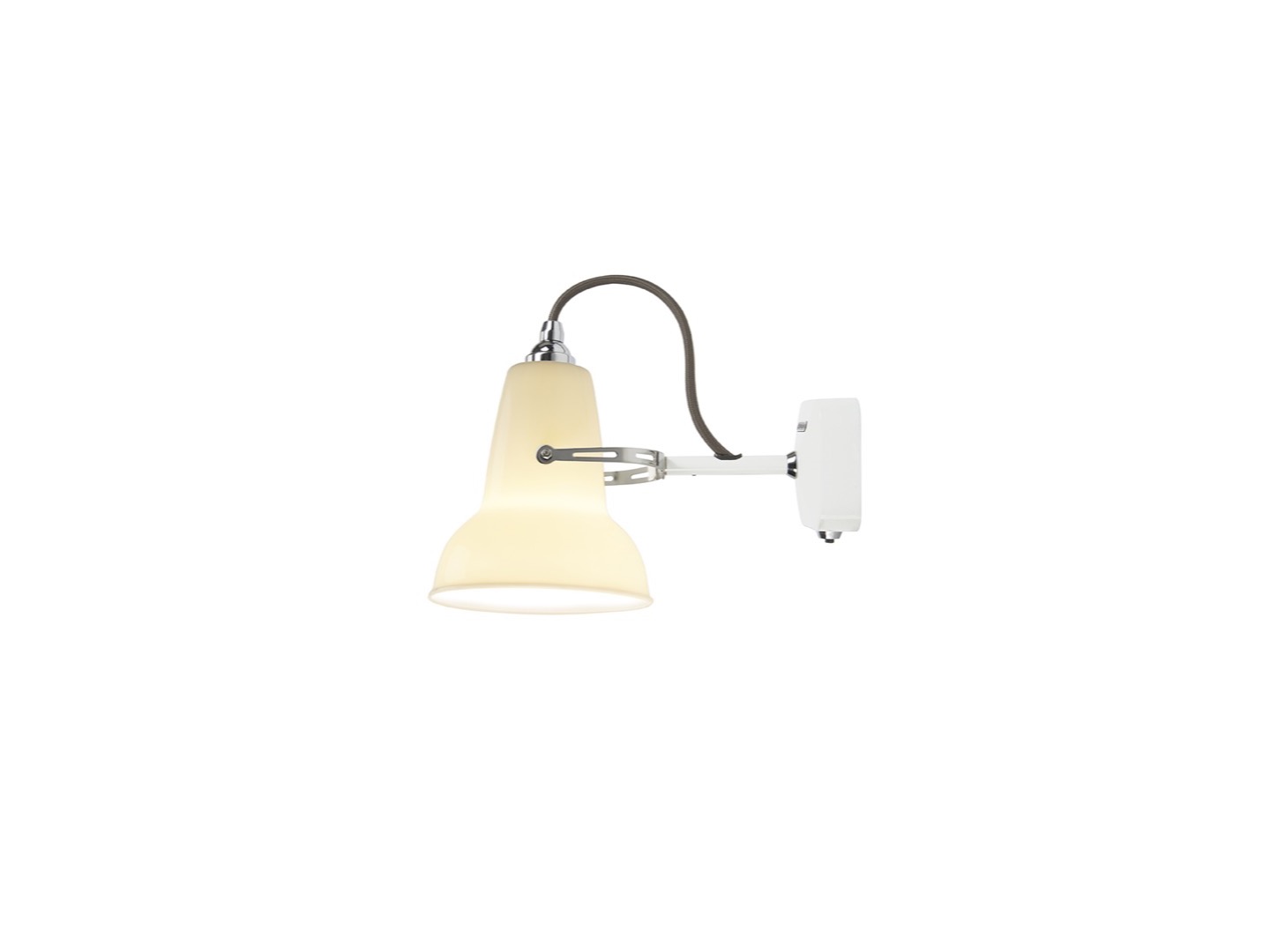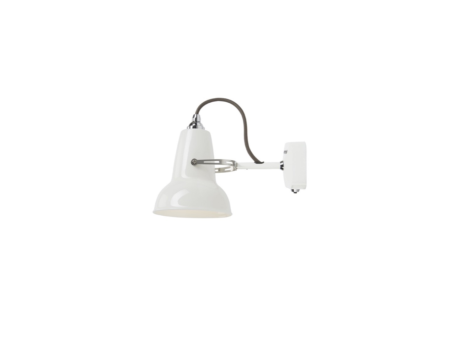 Original 1227 Mini Ceramic Wall Light to wariacja klasycznej lampy Anglepoise - pomniejszona i ozdobiona chromowanymi dodatkami i przewodem w kolorowym oplocie. Jedna z najpopularniejszych lamp w kolekcji, chętnie stosowana w miejscach użyteczności publicznej, a w szczególności na rynku HoReCa. Wersja Ceramic charakteryzuje się kloszem wykonanym z porcelany.