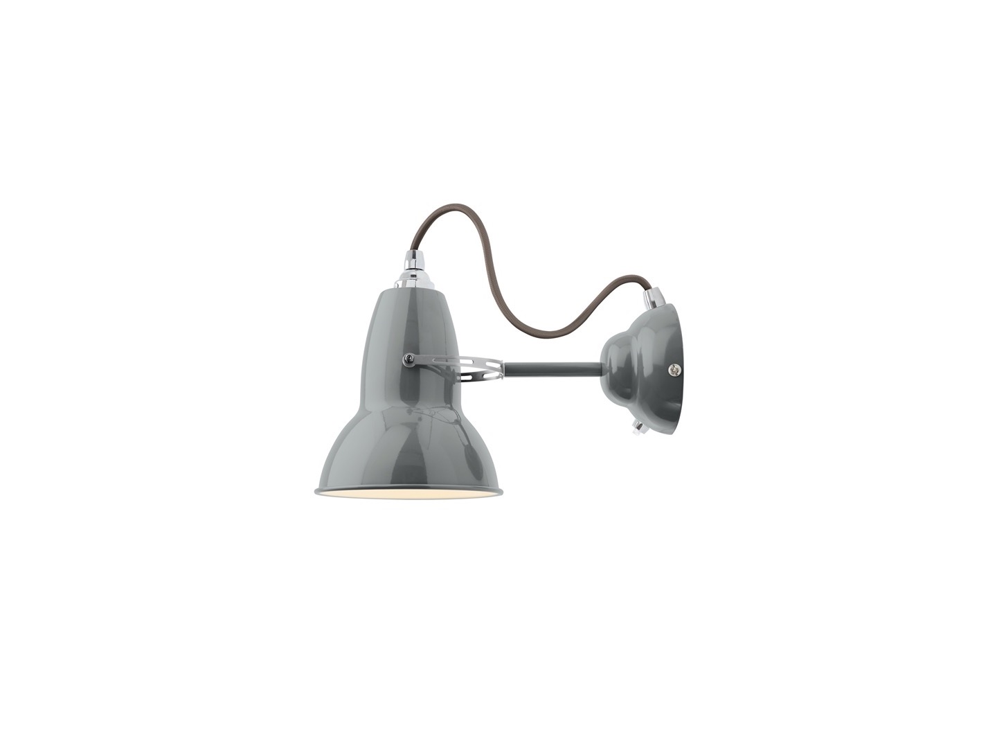 Original 1227 Wall Light to wariacja klasycznej lampy Anglepoise ozdobiona chromowanymi dodatkami i przewodem w kolorowym oplocie. Charakterystyczna dla serii Original 1227 jest też paleta kolorów. Jedna z najpopularniejszych lamp w kolekcji, chętnie stosowana w miejscach użyteczności publicznej, a w szczególności na rynku HoReCa.
