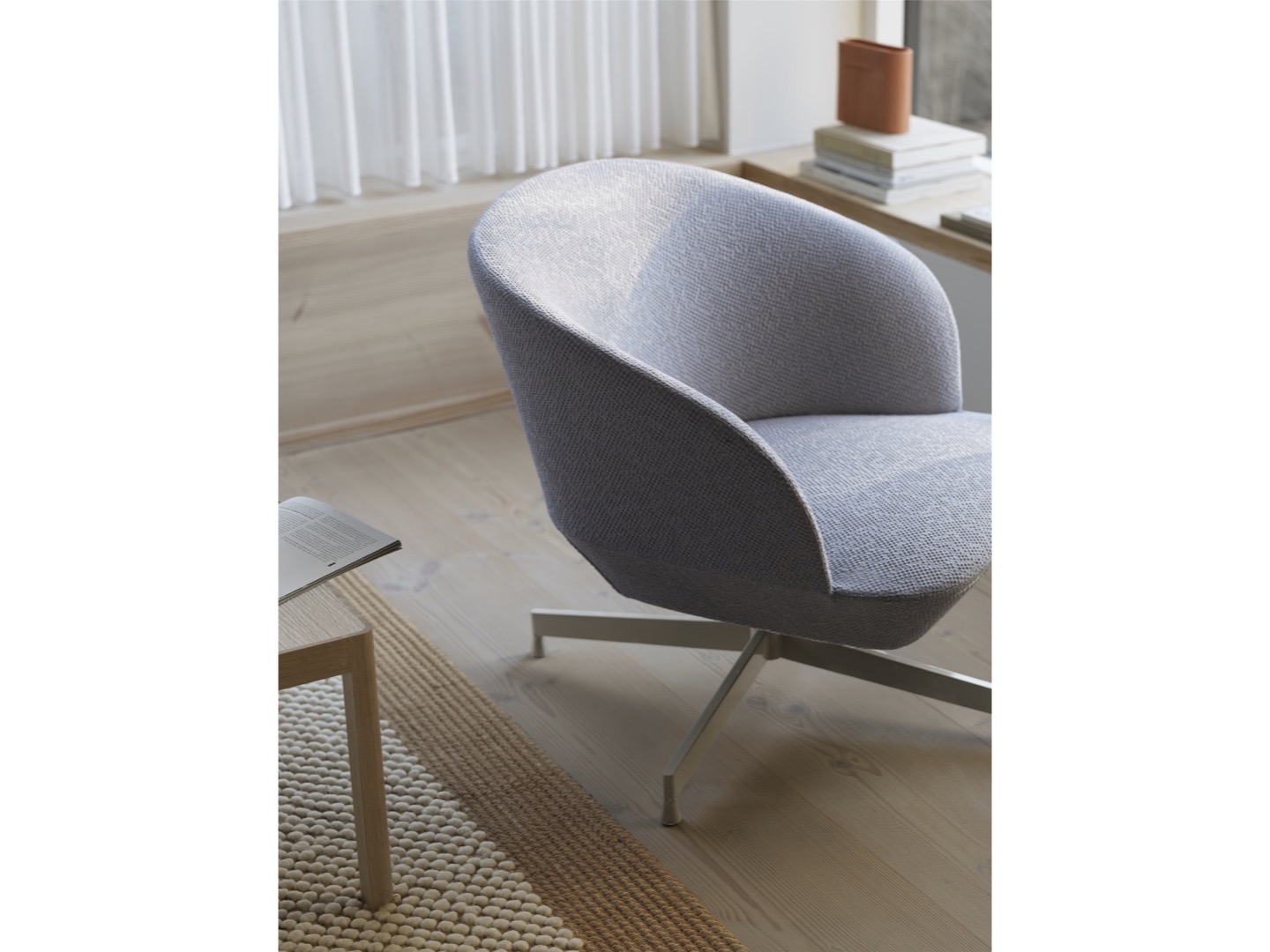 Łącząc kompaktową konstrukcję z wygodą i elegancją, fotel Oslo Lounge Chair oferuje siedzisko o klasycznym, ale nowoczesnym wyrazie. Niska i głęboka skorupa jest uniesiona przez obejmujące plecy. Połączenie walorów rzeźbiarskich i wyraźnie funkcjonalnego designu sprawia, że jest to idealny element zarówno do współczesnego domu, jak i przestrzeni publicznych. Obrotowa podstawa dodaje krzesłu klasycznego i dynamicznego charakteru, ponieważ ułatwia elastyczność i ruch w pozycji siedzącej.
