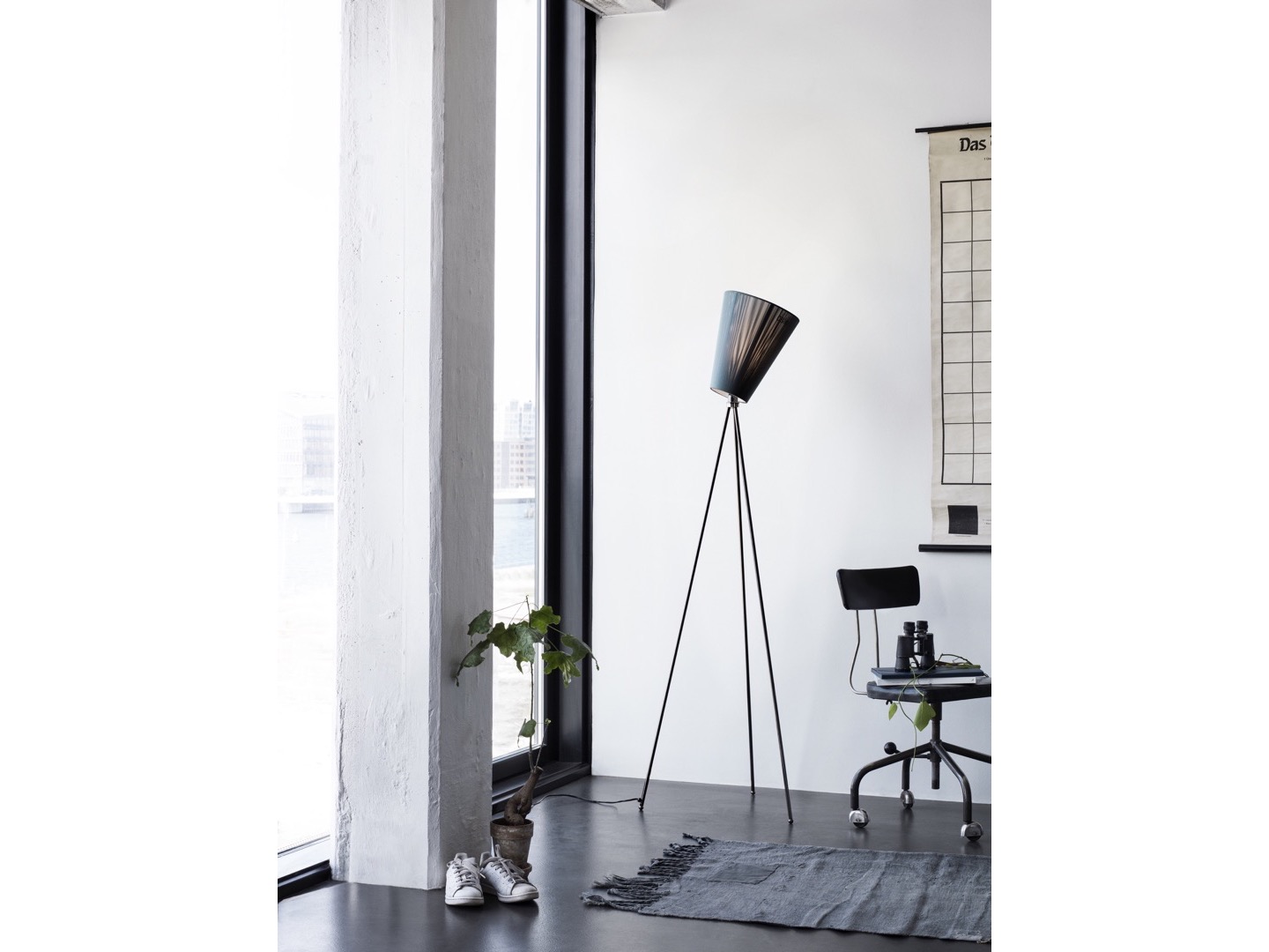 Oslo, to tradycyjna lampa z abażurem na trójnogu. No prawie. W przypadku Oslo abażur wygląda, jakby był założony górą do dołu. No i daje się dużo łatwiej niż w tradycyjnej lampie ustawiać. Lampa większość światła kieruje ku górze, niewielką ilość do dołu, a resztę rozprasza przez abażur.