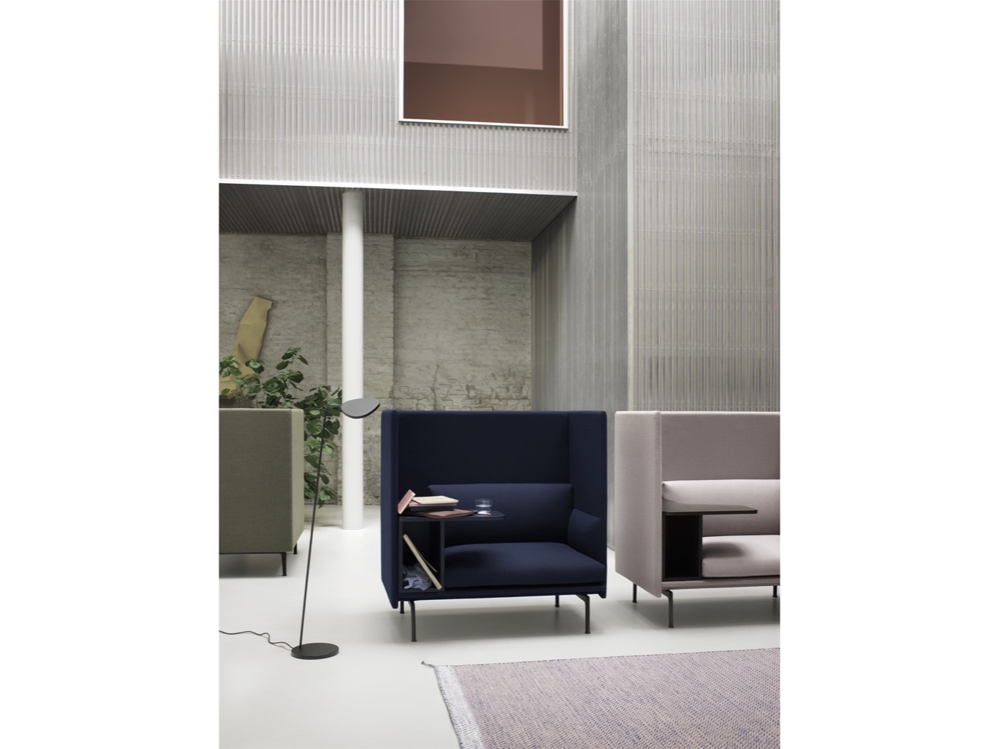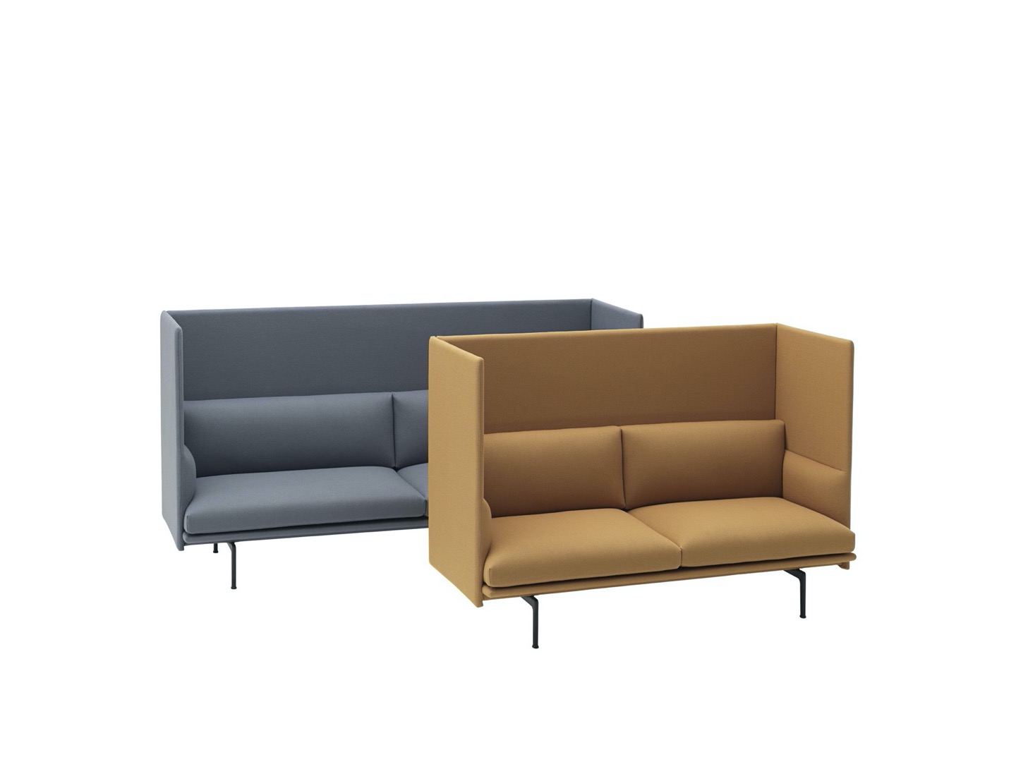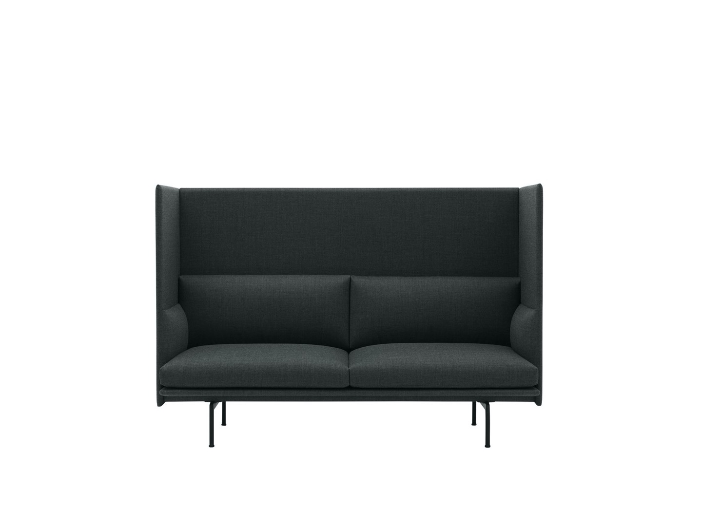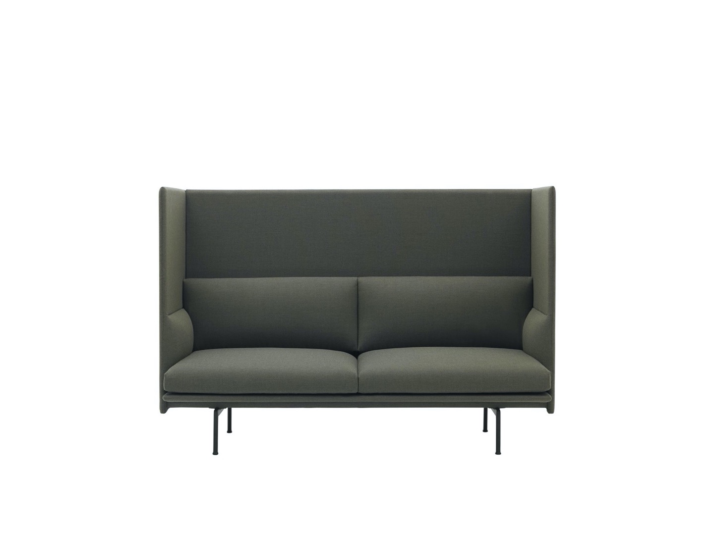 Sofa Outline z wysokim oparciem łączy miękkie, głębokie siedzisko z wysokim oparciem, pozwalając projektowi tworzyć prywatne sfery w większych przestrzeniach aby zapewnić schronienie do rozmów.