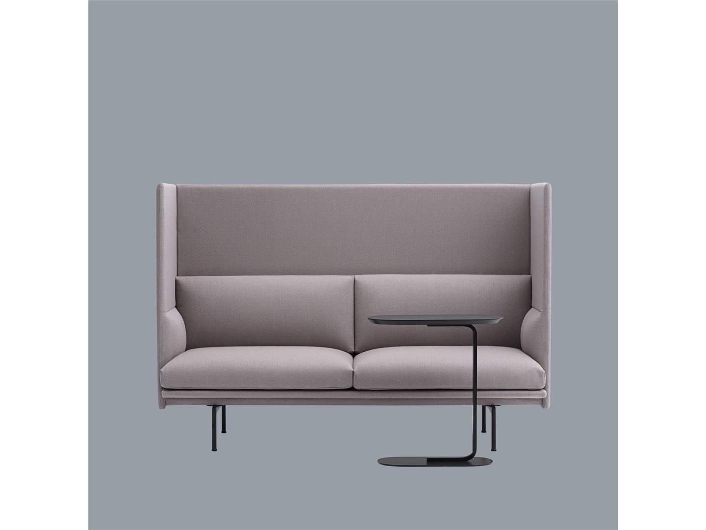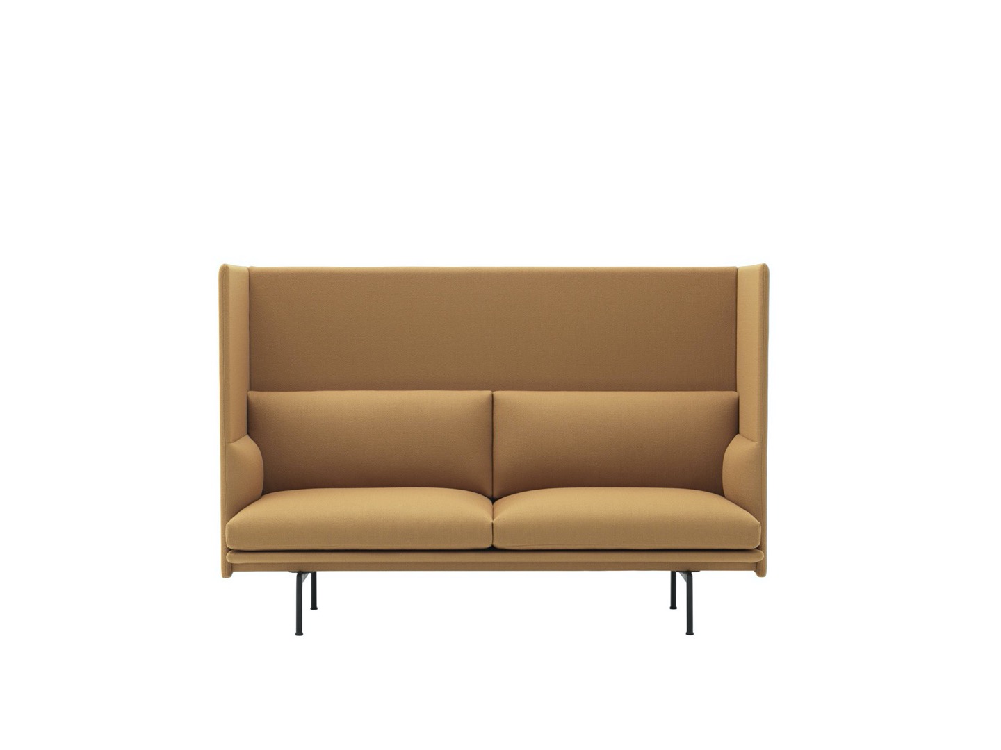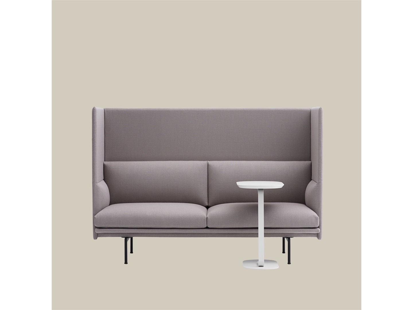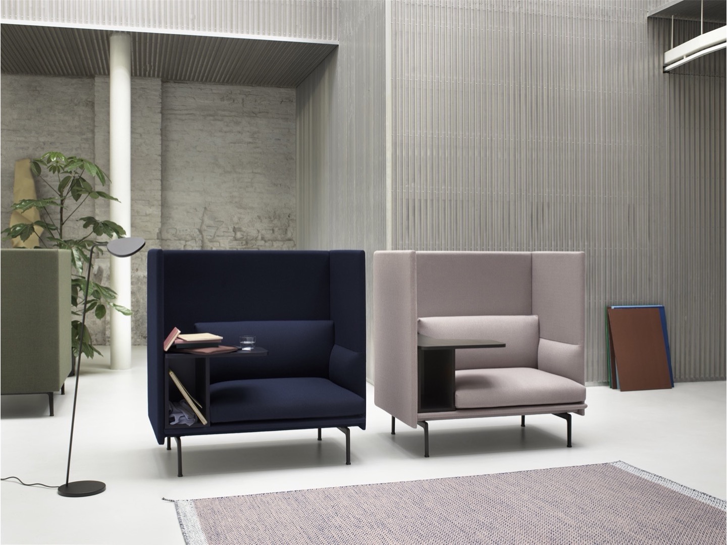 Sofa Outline z wysokim oparciem łączy miękkie, głębokie siedzisko z wysokim oparciem, pozwalając projektowi tworzyć prywatne sfery w większych przestrzeniach aby zapewnić schronienie do rozmów.