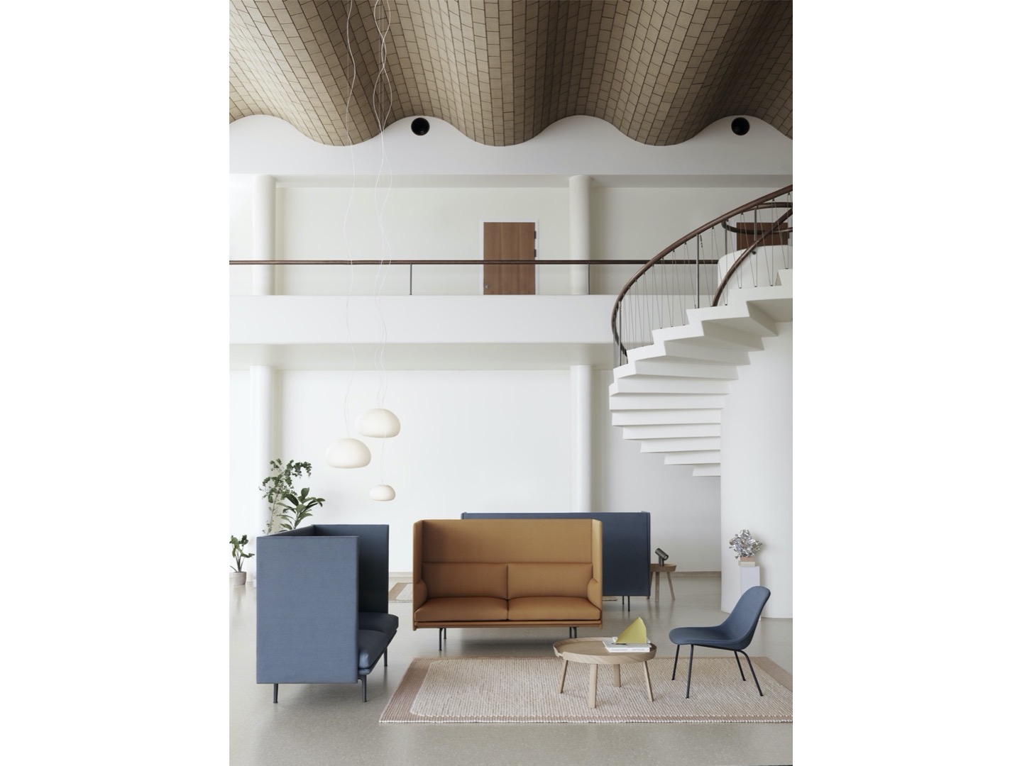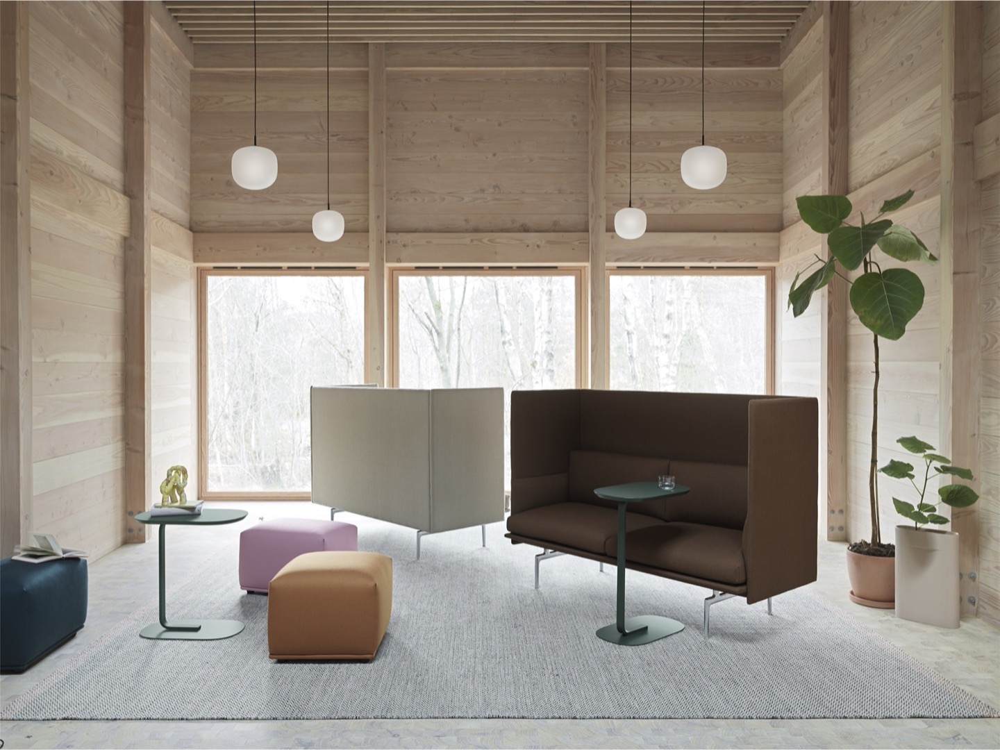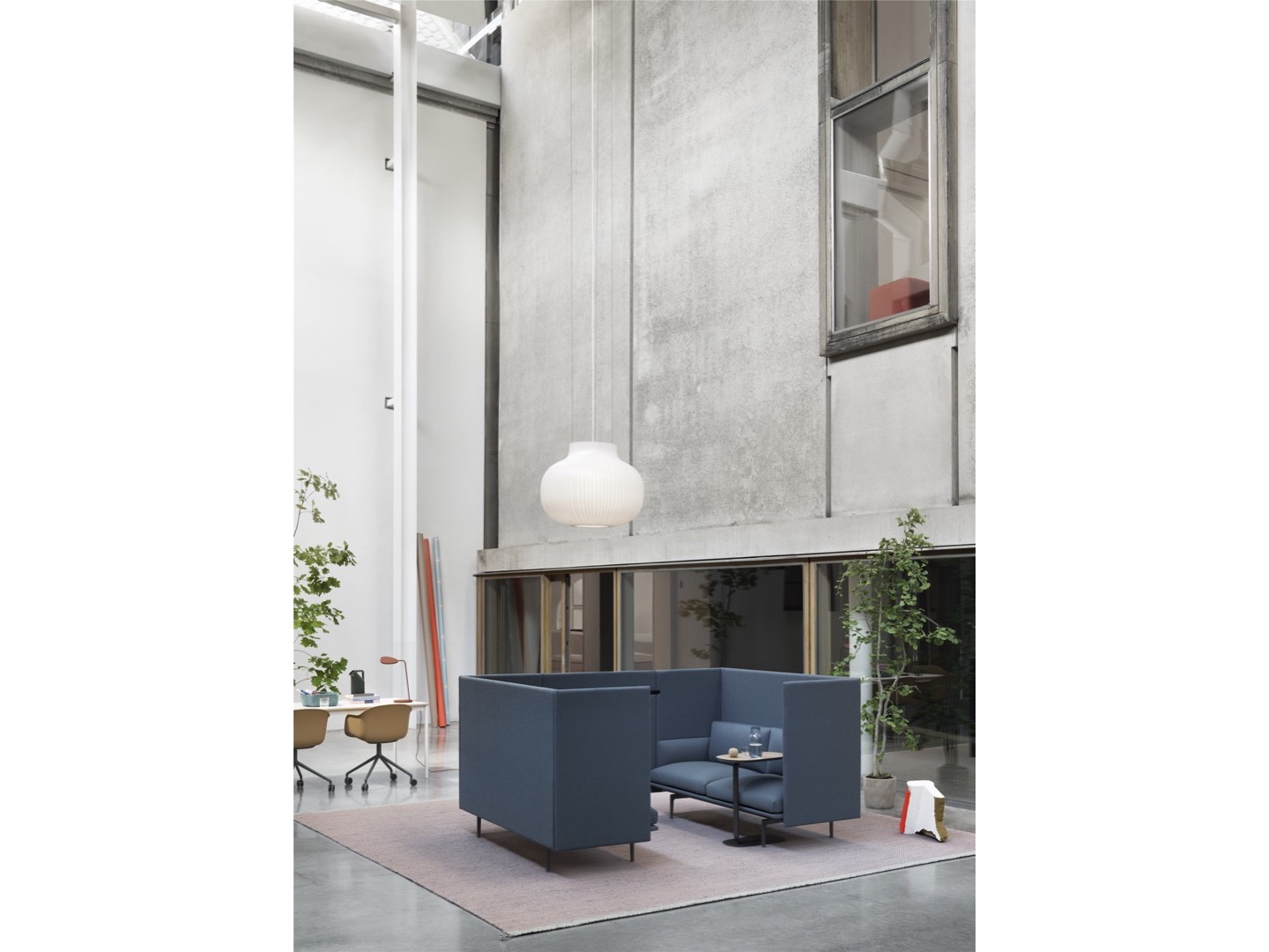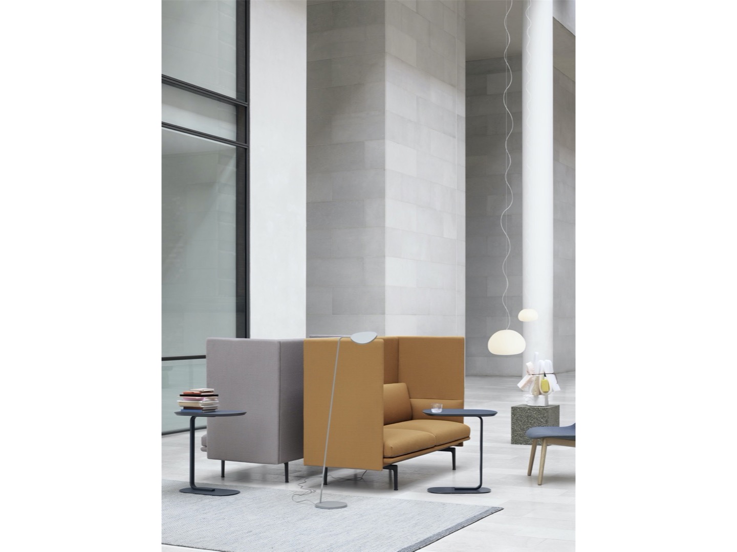 Sofa Outline z wysokim oparciem łączy miękkie, głębokie siedzisko z wysokim oparciem, pozwalając projektowi tworzyć prywatne sfery w większych przestrzeniach aby zapewnić schronienie do rozmów.