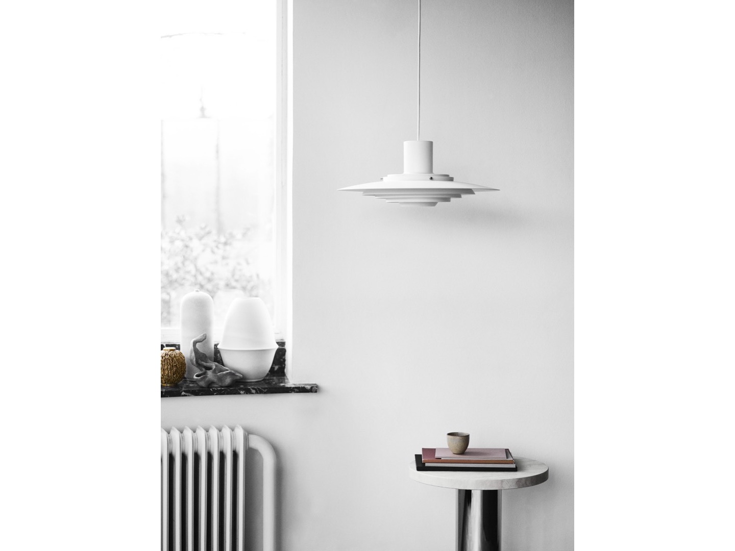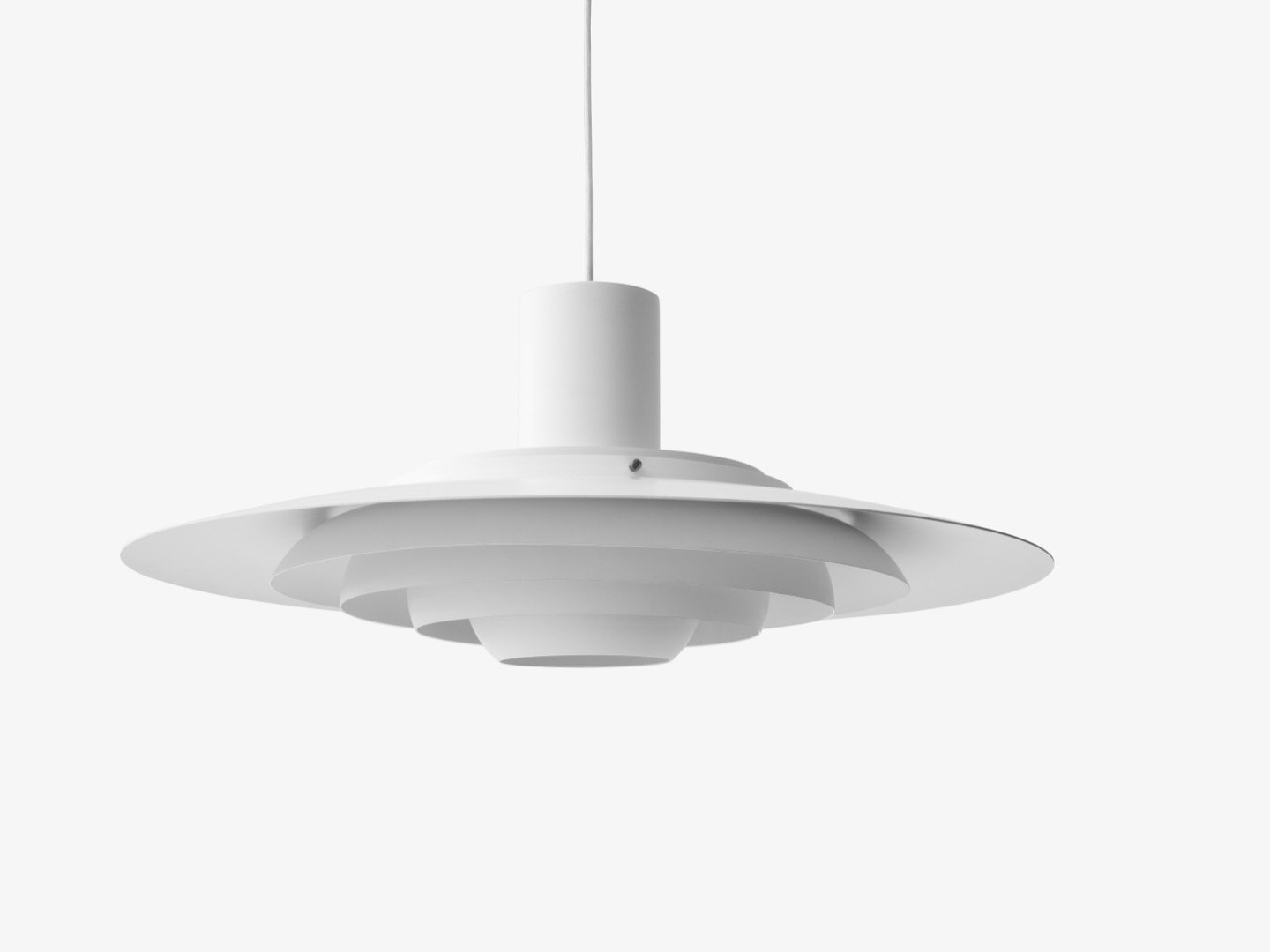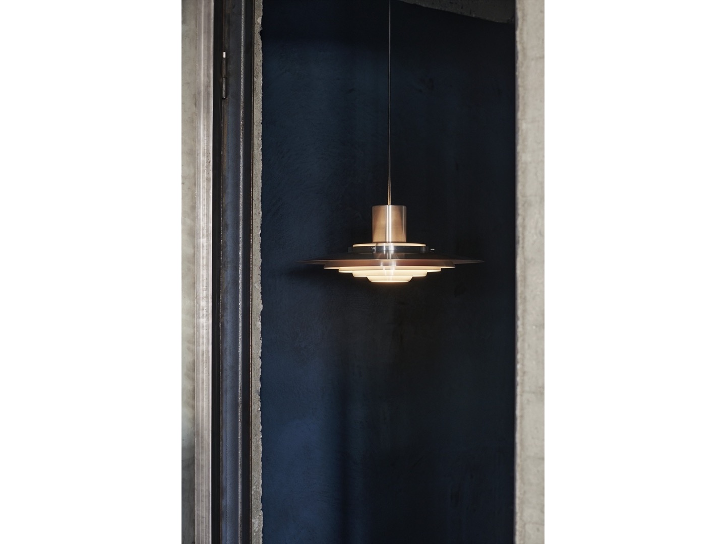 Jørgena Kastholma (1931-2007) i Prebena Juhla Fabriciusa (1931-1984) kierowała wspólna misja stworzenia czystej pochodnej funkcji. Obaj byli architektami, ukończyli Duńską Szkołę Architektury Wnętrz, gdzie studiowali u Finna Juhla, a następnie u Arne Jacobsena. Lampa wisząca P376 to doskonały przykład subtelnego architektonicznego podejścia Kastholm & Fabricius do projektu. Zaprojektowane pierwotnie w 1963 roku, pięć koncentrycznych kloszy tworzy gradację krzywizn w kierunku środka lampy, emitując miękkie, rozproszone światło. Dyskretne rozmieszczenie kloszy i jedwabiste aluminiowe wykończenie zapewniają spójną ekspresję, która jest zarówno ikoniczna, jak i fascynująca.