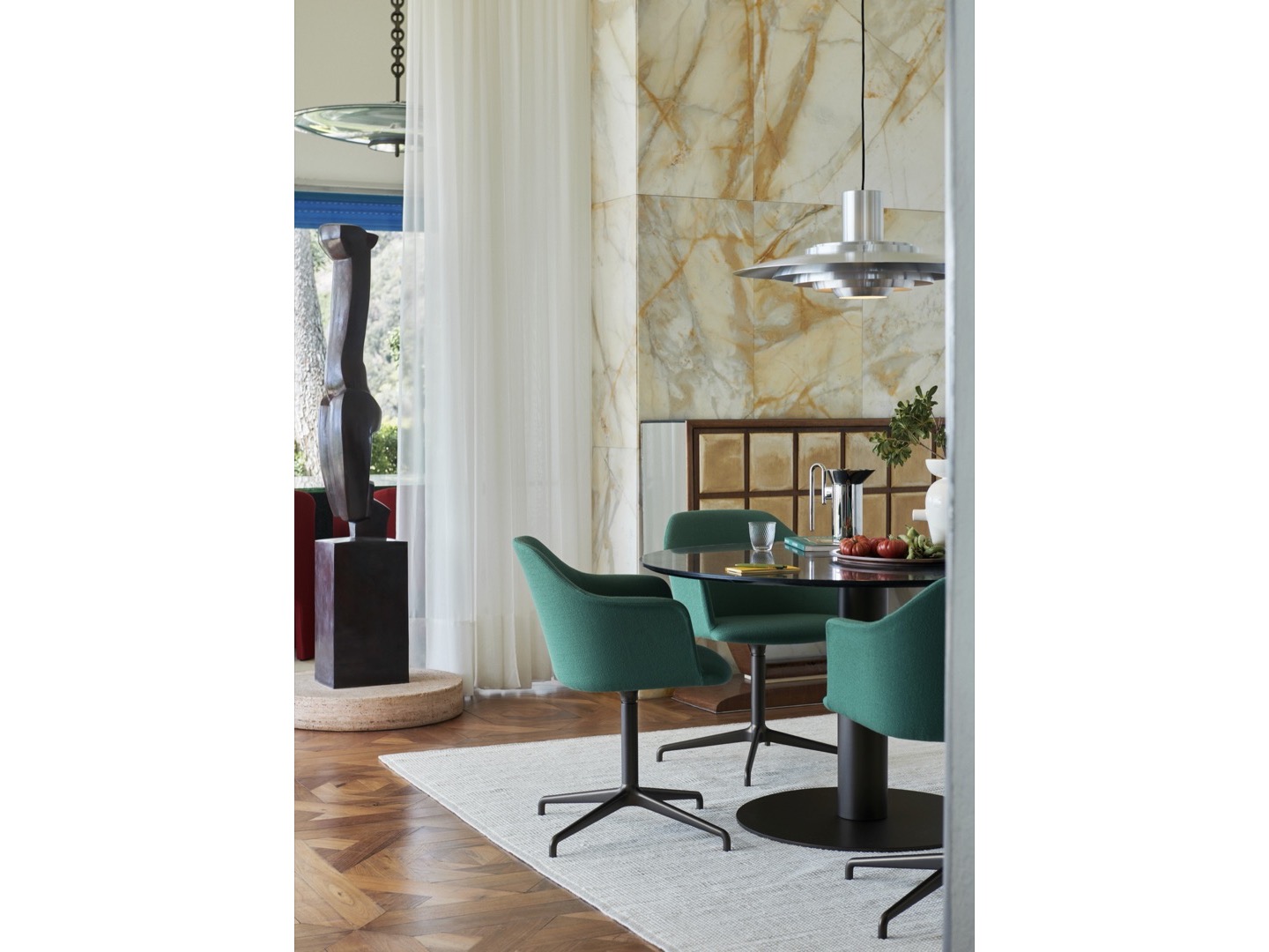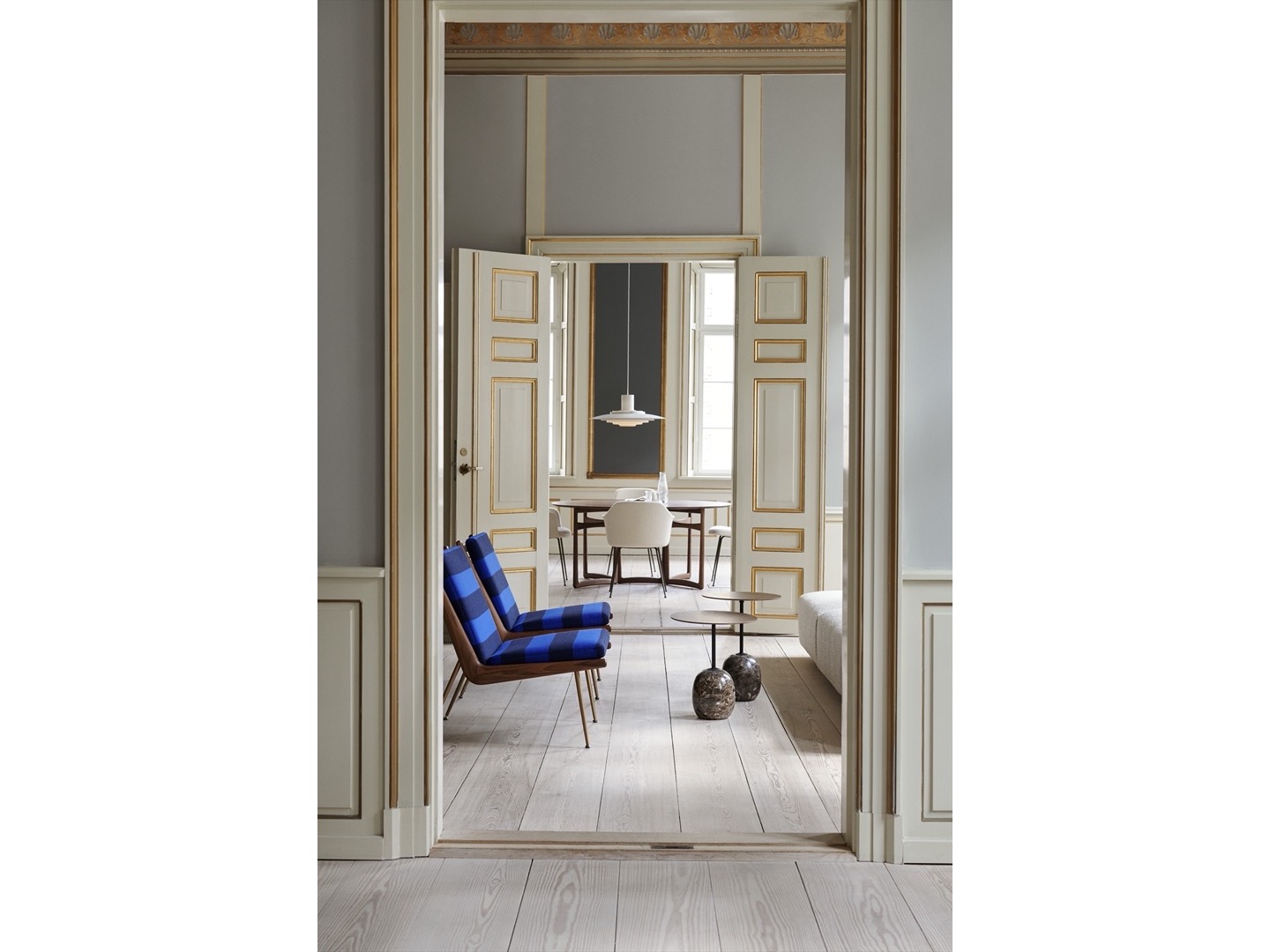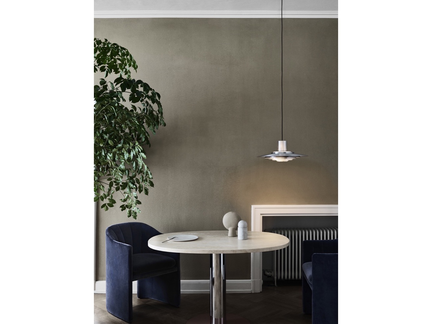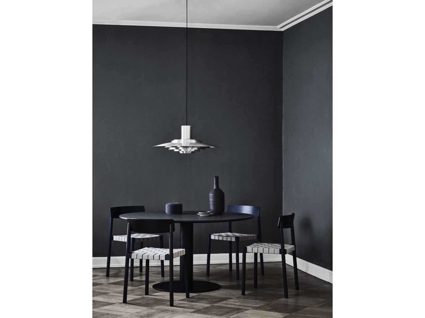 Jørgena Kastholma (1931-2007) i Prebena Juhla Fabriciusa (1931-1984) kierowała wspólna misja stworzenia czystej pochodnej funkcji. Obaj byli architektami, ukończyli Duńską Szkołę Architektury Wnętrz, gdzie studiowali u Finna Juhla, a następnie u Arne Jacobsena. Lampa wisząca P376 to doskonały przykład subtelnego architektonicznego podejścia Kastholm & Fabricius do projektu. Zaprojektowane pierwotnie w 1963 roku, pięć koncentrycznych kloszy tworzy gradację krzywizn w kierunku środka lampy, emitując miękkie, rozproszone światło. Dyskretne rozmieszczenie kloszy i jedwabiste aluminiowe wykończenie zapewniają spójną ekspresję, która jest zarówno ikoniczna, jak i fascynująca.