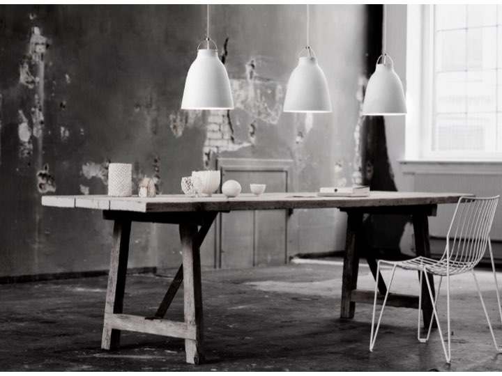 Lampy Caravaggio to seria charakterystycznych, oryginalnych lamp wiszących odznaczających się lekką, miękką niemal kobiecą linią. Lampy wykonane są z lekkiej i cienkiej stali malowanej z zewnątrz błyszczącym lakierem w kolorze czarnym lub białym. Dzięki swej konstrukcji Caravaggio daje skoncentrowane światło wydobywające się również delikatnie górą klosza. Cechą charakterystyczną jest również czerwony lub szary kabel, na którym wisi lampa.
