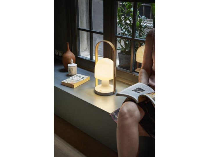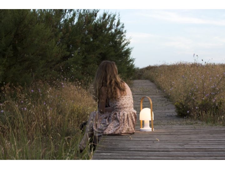 'Follow me' wykonana jest z najwyższej jakości materiałów. Metalowa, malowana podstawa połączona jest ze szklanym kloszem drewnianą rączką. Złoty włącznik umieszczony w podstawie idealnie pasuje do koloru użytego drewna. Siłę światła można regulować (3 stopnie mocy), a klosz przechylać tak, by oświetlić dokładnie to, co chcemy i tak, jak chcemy.