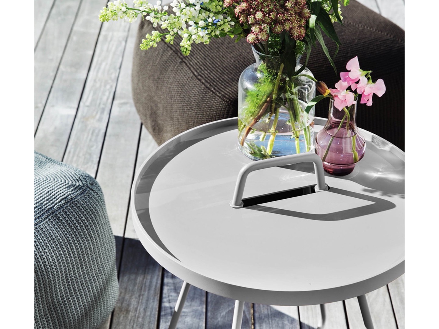 Ideą przyświecającą projektowi było stworzenie stolika bocznego z odczepianą tacą. Duńscy projektanci stworzyli unikalne rozwiązanie, w którym blat stołu może być z łatwością odczepiony i użyty do przenoszenia np. napojów z kuchni na taras...Łatwe do złapania rączki umożliwiają przeniesienie stoliczka kiedy tylko chcemy.