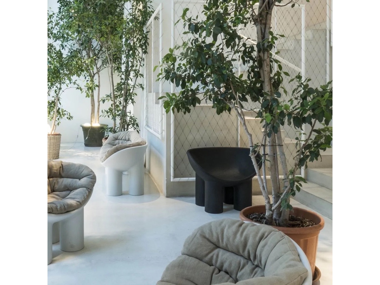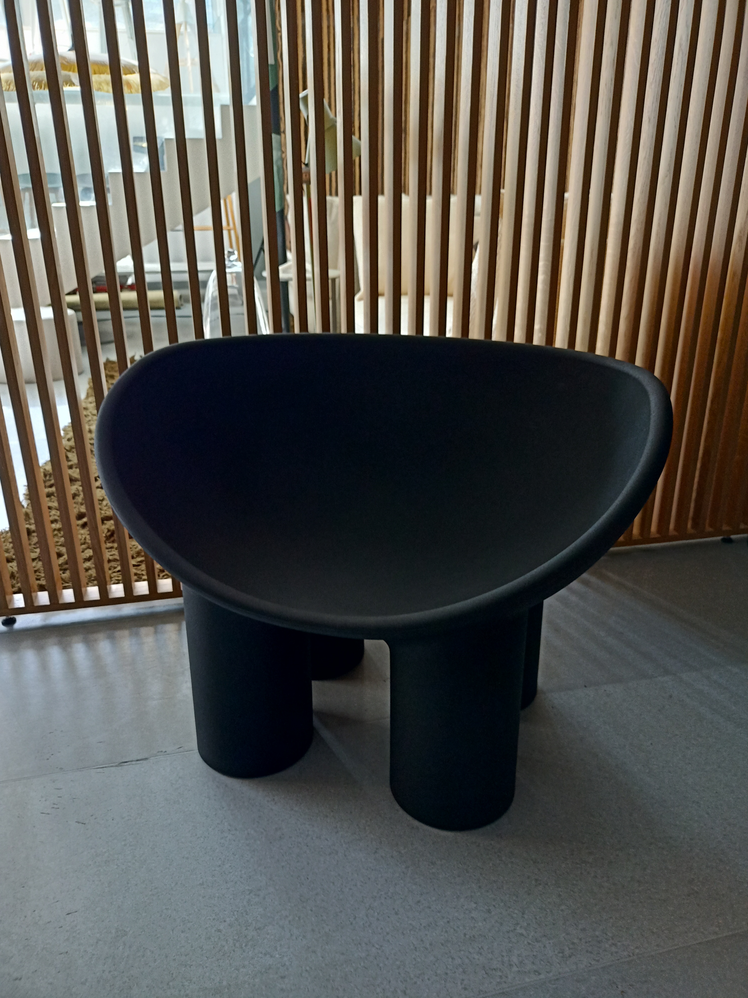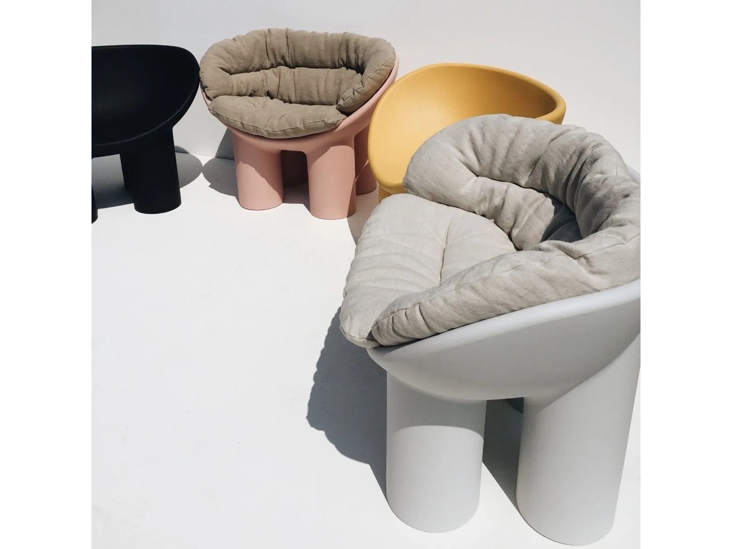 Kolekcja Roly Poly, składająca się z fotela i sofy, ucieleśnia koncepcje mebli i rzeźby, w ten sposób doskonale reprezentując filozofię Driade. Cechą charakterystyczną jest zaokrąglony kształt misy siedziska, z cylindrycznymi nogami i delikatnie liniowymi kształtami, które nadają mu masywny wygląd. Wykonane z formowanego rotacyjnie polietylenu, niskie siedzisko zostało wzbogacone miękkimi wyściełanymi poduszkami, które mieszczą się w jego zakrzywionym kształcie. Fotel i sofa są dostępne w różnych kolorach.