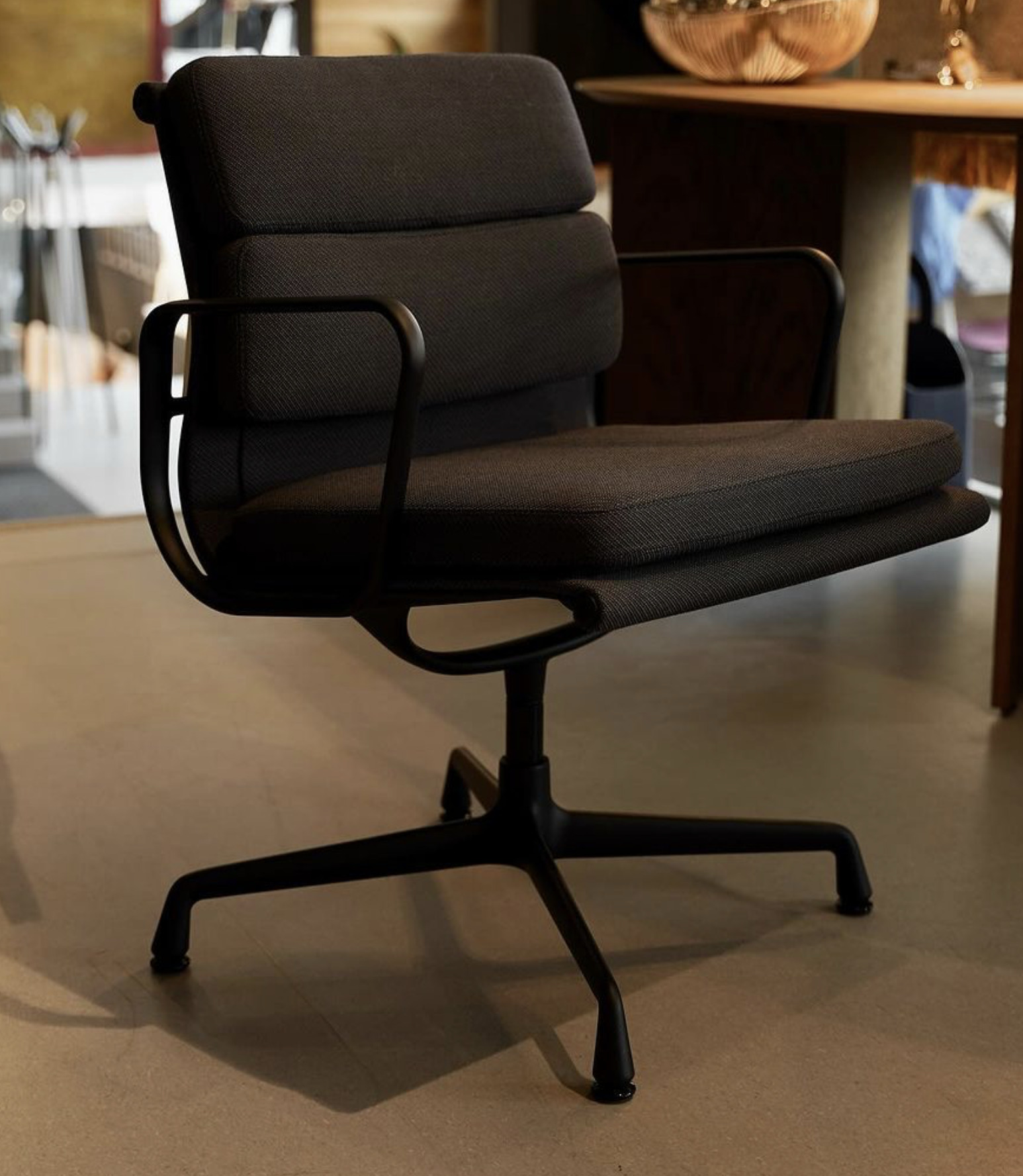 Krzesło Soft Pad EA 208 na bazie w kolorze Deep Black w tkaninie Anthracite/Mid-Grey. Tylko 1 szt. dostępna od ręki!