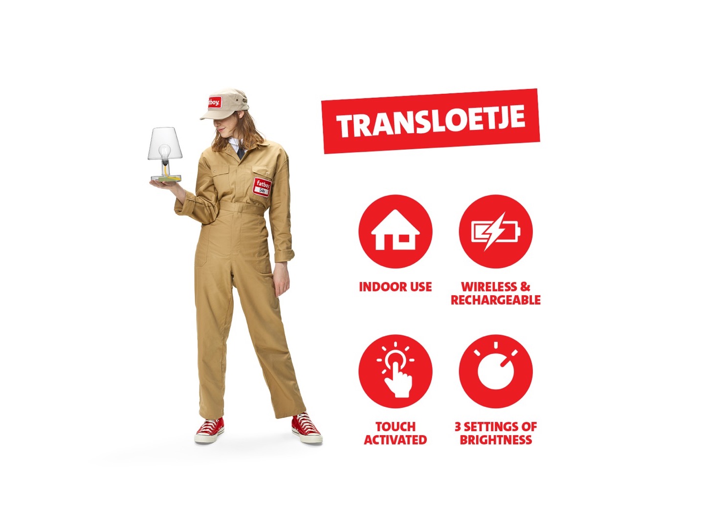 Pomimo tego, że Transloetje operuje kształtami z poprzedniej epoki, jest bardzo nowoczesna. Żarówka, to oczywiście nowoczesne źródło światła LED. Podobnie jak Edison the Petit ma akumulator, który pozwala jej świecić bez zasilania nawet osiem godzin. Zupełną nowością jest włącznik - lampę wystarczy dotknąć u podstawy by ją zapalić, rozjaśnić i wyłączyć!