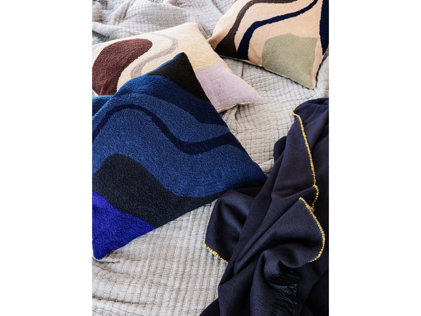 Ta linia miękkich bawełnianych poduszek ma z przodu pomysłowy haftowany wzór, a tył w jednolitym kolorze. Poduszka występuje w trzech różnych wersjach kolorystycznych, wszystkie utrzymane w spokojnych barwach z jednym jasnym detalem. W tej serii znajdziesz również pasujące koce gobelinowe.