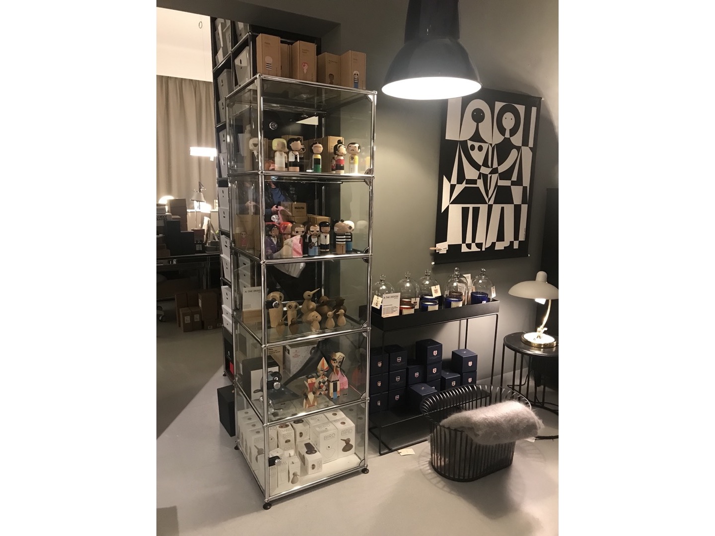 Znany system mebli modułowych USM Haller umożliwia także budowanie szafek częściowo lub całkowicie przeszklonych. Szklane drzwi i ściany idealnie nadają się do budowy witryn - mebli, które umożliwiają eksponowanie zawartości przy jednoczesnej ochronie jej przed kurzem.