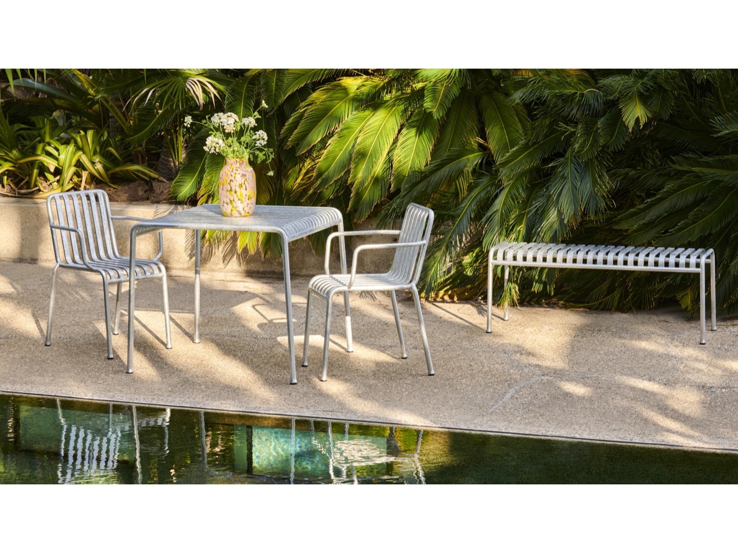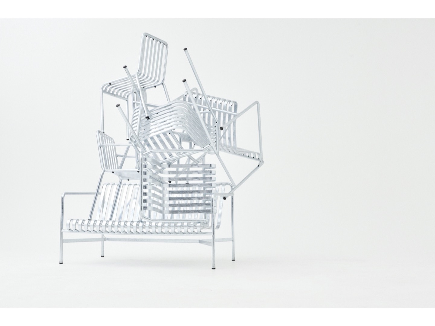 Kolekcja Palissade została zaprojektowana dla marki HAY przez braci Bouroullec i obejmuje niezwykle trwałe meble zewnętrzne. Proste i ponadczasowe formy oraz naturalne kolory sprawiają, że meble idealnie wtapiają się w otoczenie, zwłaszcza kiedy bogate jest w roślinność. Malowana proszkowo stal zapewnia długowieczność - jedno z ważnych założeń całego projektu. Wynikający z materiału spory ciężar mebli pozwala stosować je w miejscach użyteczności publicznej i wszędzie tam, gdzie potrzeba rozwiązań o podwyższonej odporności nie tylko na czynniki atmosferyczne.