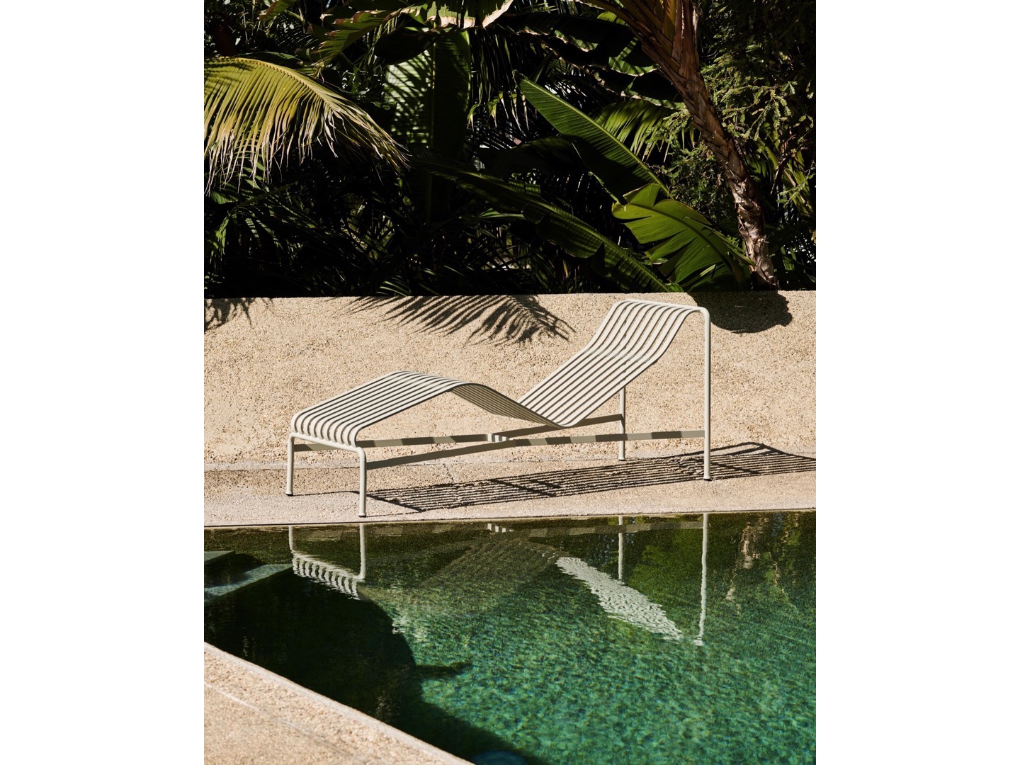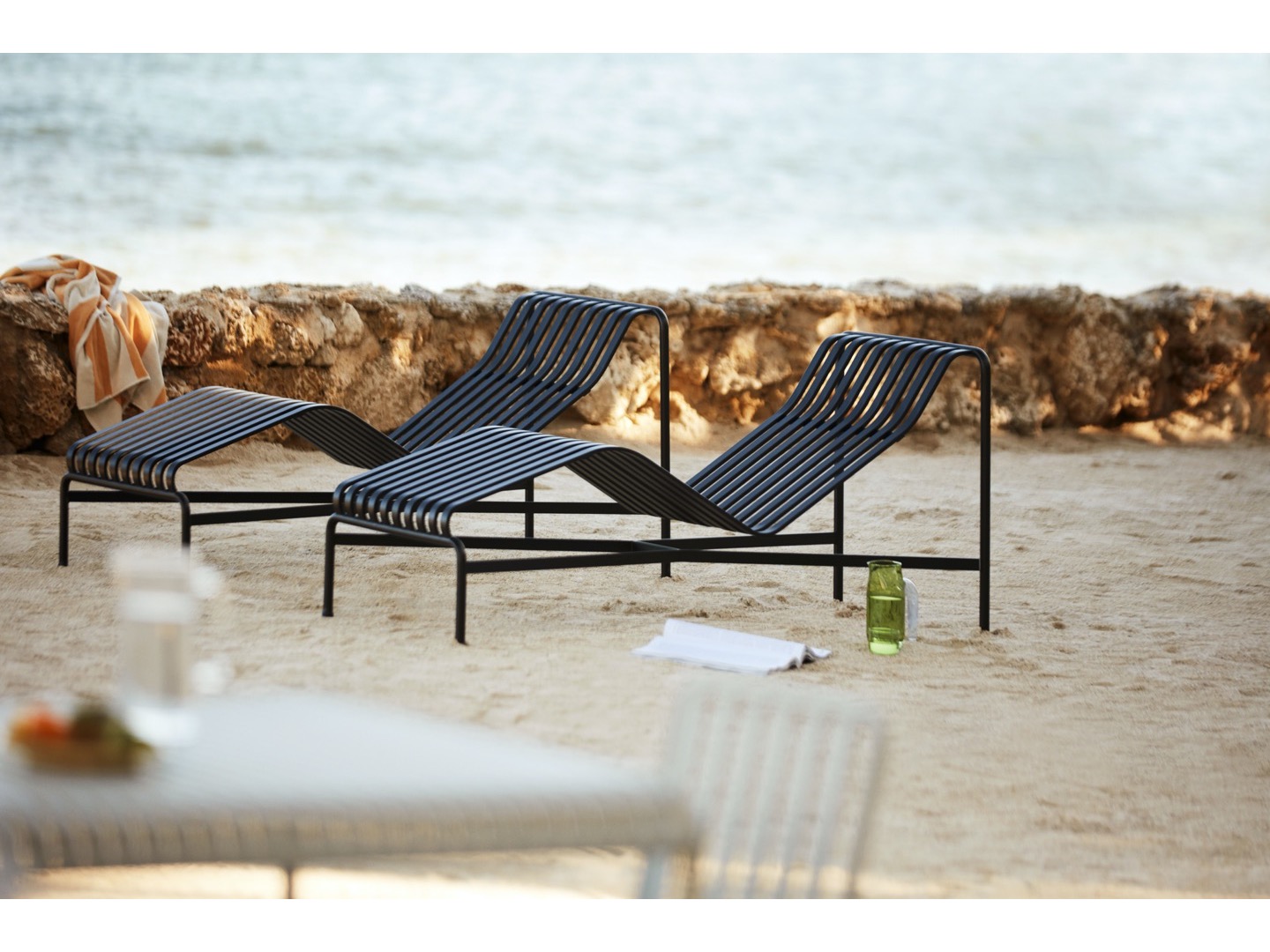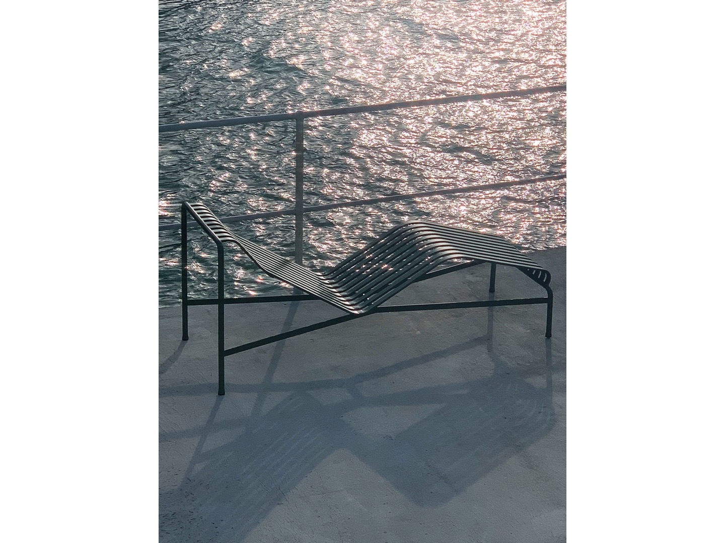 Zaprojektowany przez francuski duet Ronan i Erwan Bouroullec, szezlong Palissade ma zakrzywioną ramę, która dopasowuje się do ciała, tworząc wygodną pozycję do leżenia. Elegancki design łączy ta sama symetryczna geometria, co resztę serii Palissade. Zaprojektowane tak, aby odtworzyć tę samą wizualną prostotę, która pozwala na bezproblemową integrację z naturalnym krajobrazem lub otoczeniem miejskim.