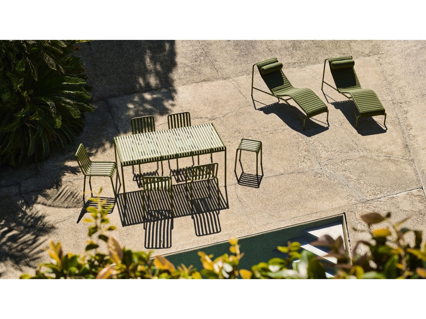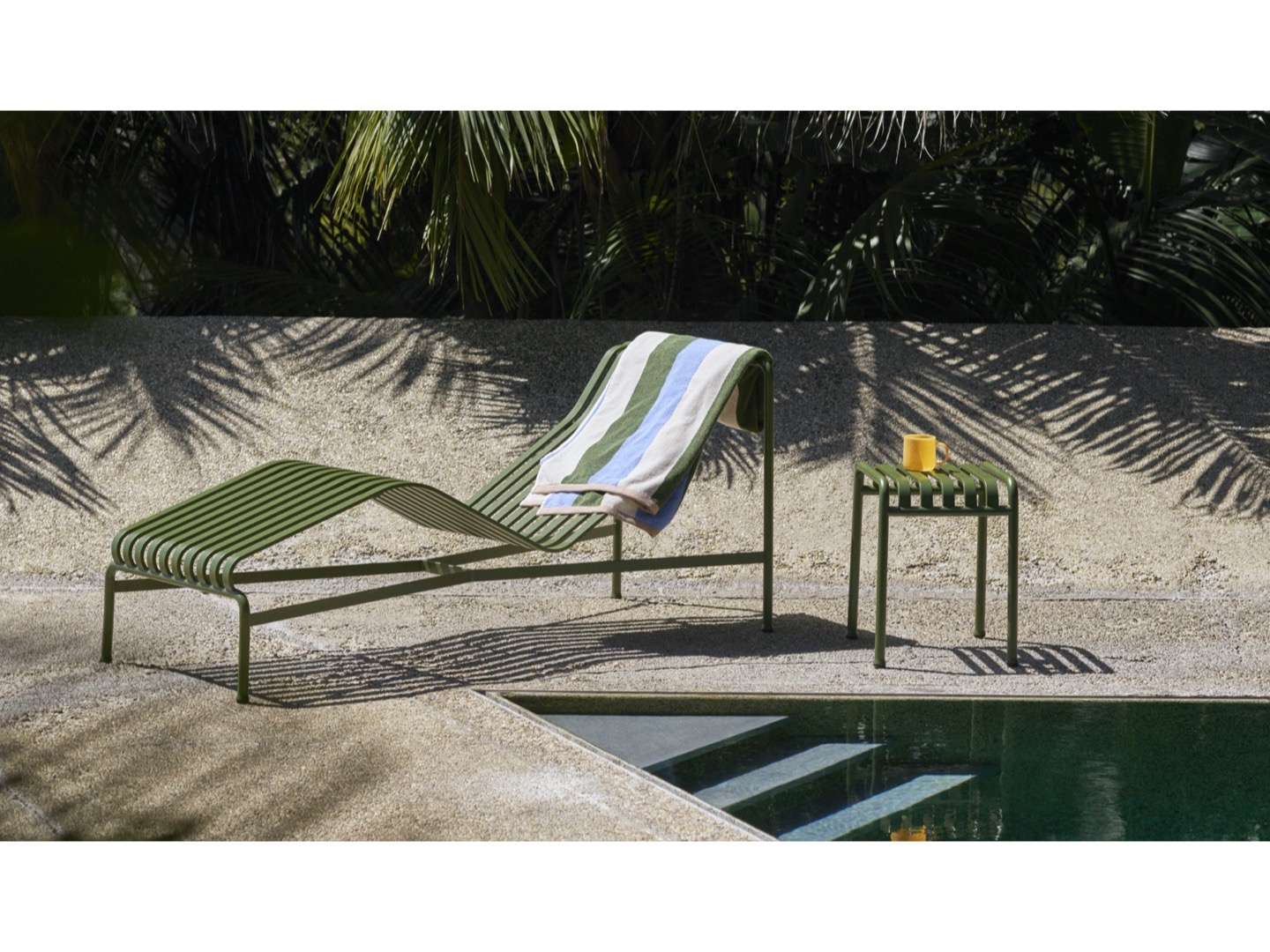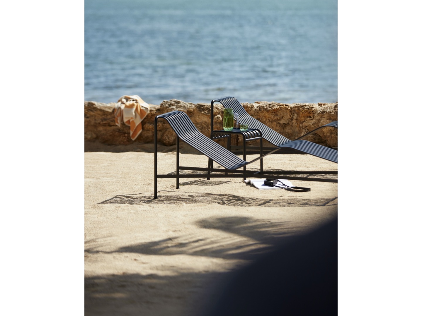 Zaprojektowany przez francuski duet Ronan i Erwan Bouroullec, szezlong Palissade ma zakrzywioną ramę, która dopasowuje się do ciała, tworząc wygodną pozycję do leżenia. Elegancki design łączy ta sama symetryczna geometria, co resztę serii Palissade. Zaprojektowane tak, aby odtworzyć tę samą wizualną prostotę, która pozwala na bezproblemową integrację z naturalnym krajobrazem lub otoczeniem miejskim.