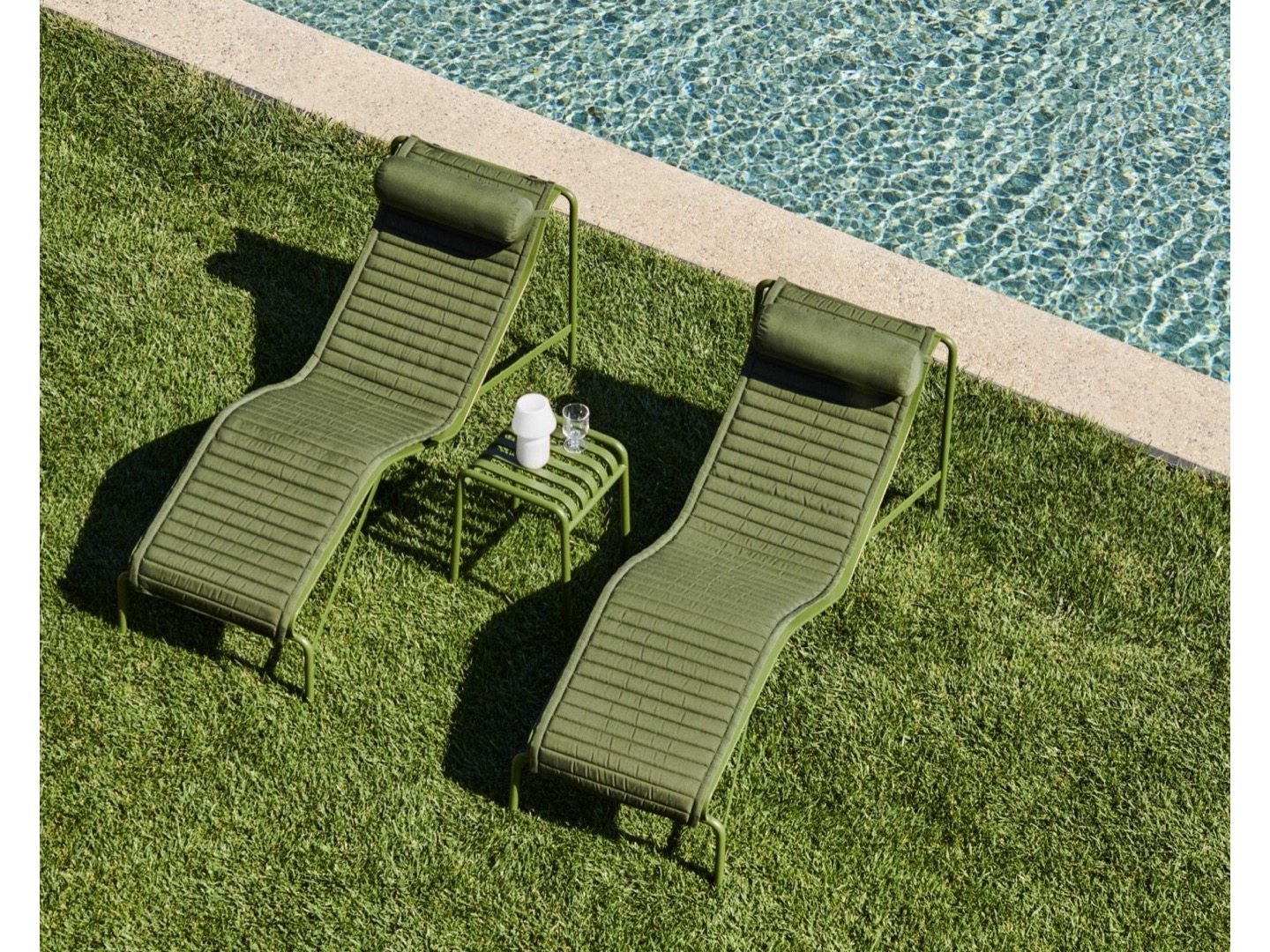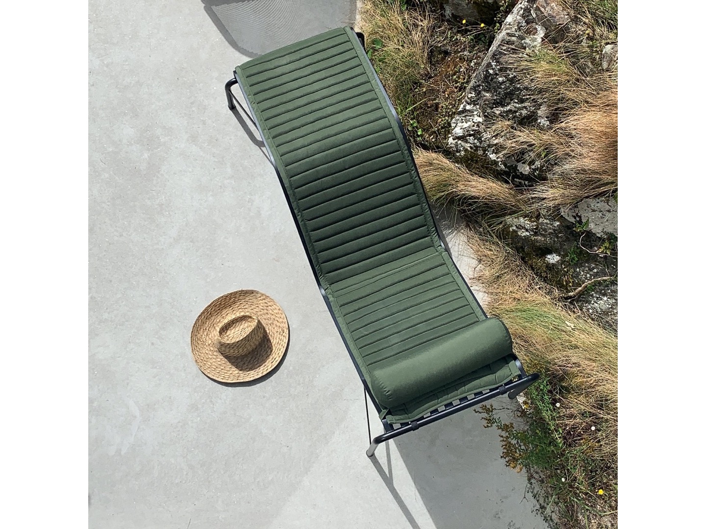 Stal malowana proszkowo, specjalnie zaprojektowana do użytku na zewnątrz, ma ochronny podkład zewnętrzny zapewniający optymalną trwałość i sprężystość: dzięki temu utrzymuje się przez dłuższy czas i staje się piękniejsza z biegiem lat. Szezlong jest dostępny w trzech kolorach i idealnie nadaje się na tarasy, balkony, do ogrodów i przestrzeni publicznych.