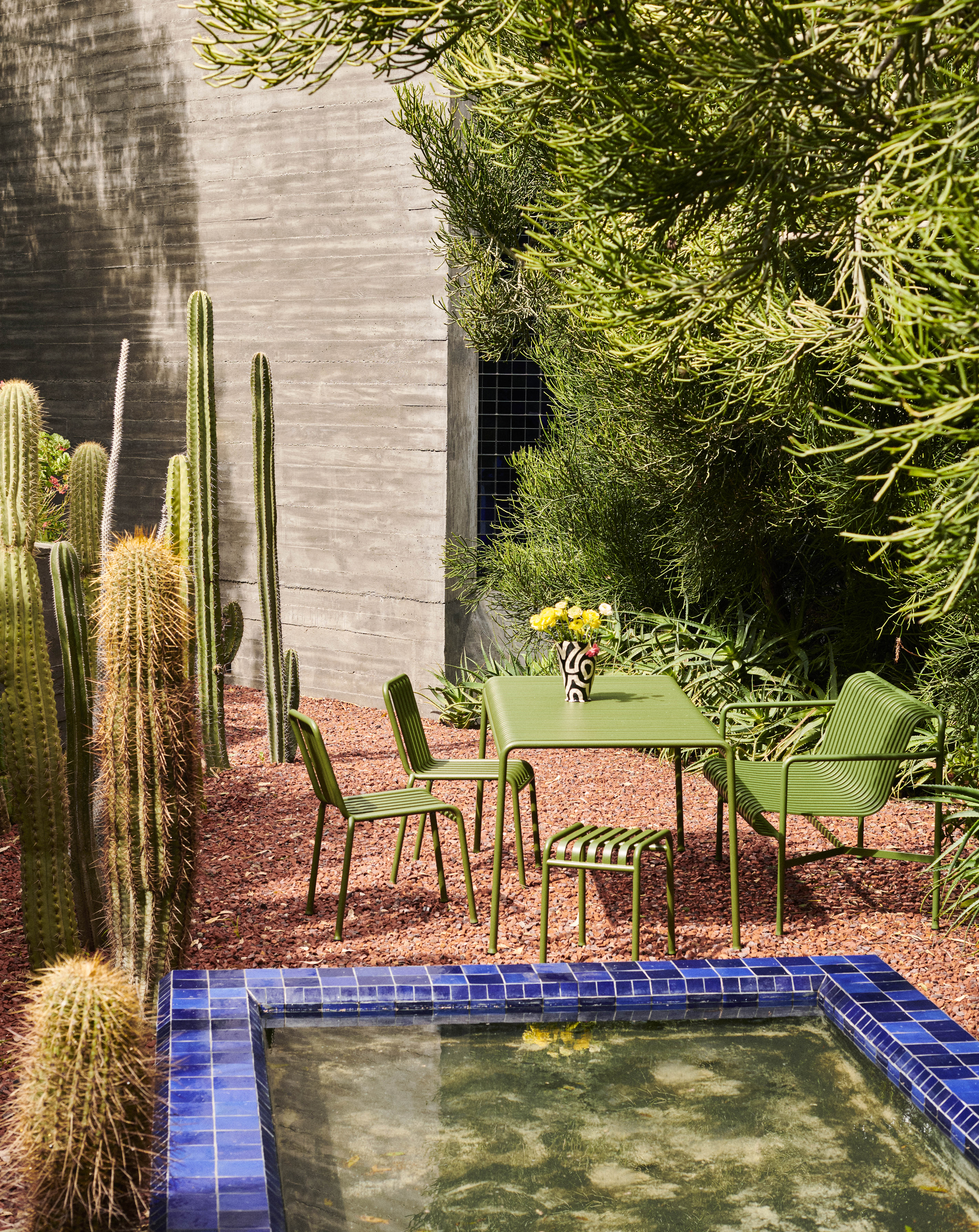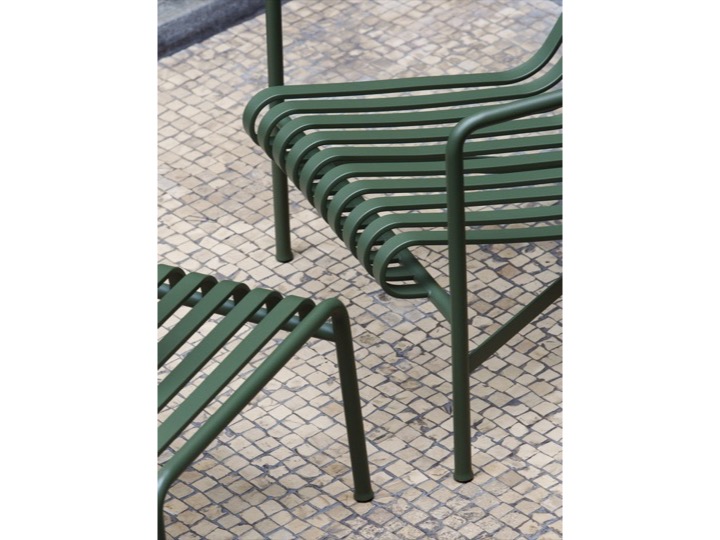 Kolekcja Palissade została zaprojektowana dla marki HAY przez braci Bouroullec i obejmuje niezwykle trwałe meble zewnętrzne. Proste i ponadczasowe formy oraz naturalne kolory sprawiają, że meble idealnie wtapiają się w otoczenie, zwłaszcza kiedy bogate jest w roślinność. Malowana proszkowo stal zapewnia długowieczność - jedno z ważnych założeń całego projektu. Wynikający z materiału spory ciężar mebli pozwala stosować je w miejscach użyteczności publicznej i wszędzie tam, gdzie potrzeba rozwiązań o podwyższonej odporności nie tylko na czynniki atmosferyczne.