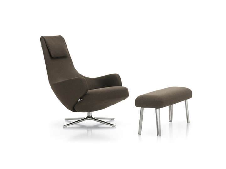 Repos i Grand Repos wraz podnóżkami to kolejny zrealizowany przez Vitrę projekt znakomitego Antonio Citterio. Kształt oparcia i podłokietników zapraszają do zrelaksowania się w objęciach tych wspaniałych foteli. Obrotowa baza występuje w wersji polerowanego aluminium lub malowanego. Formę oparcia i siedziska wzbogacają dodatkowo przeszycia na krawędziach.