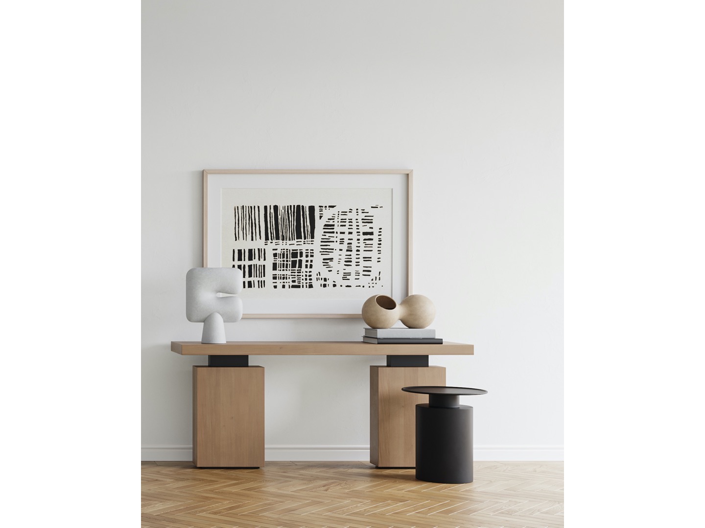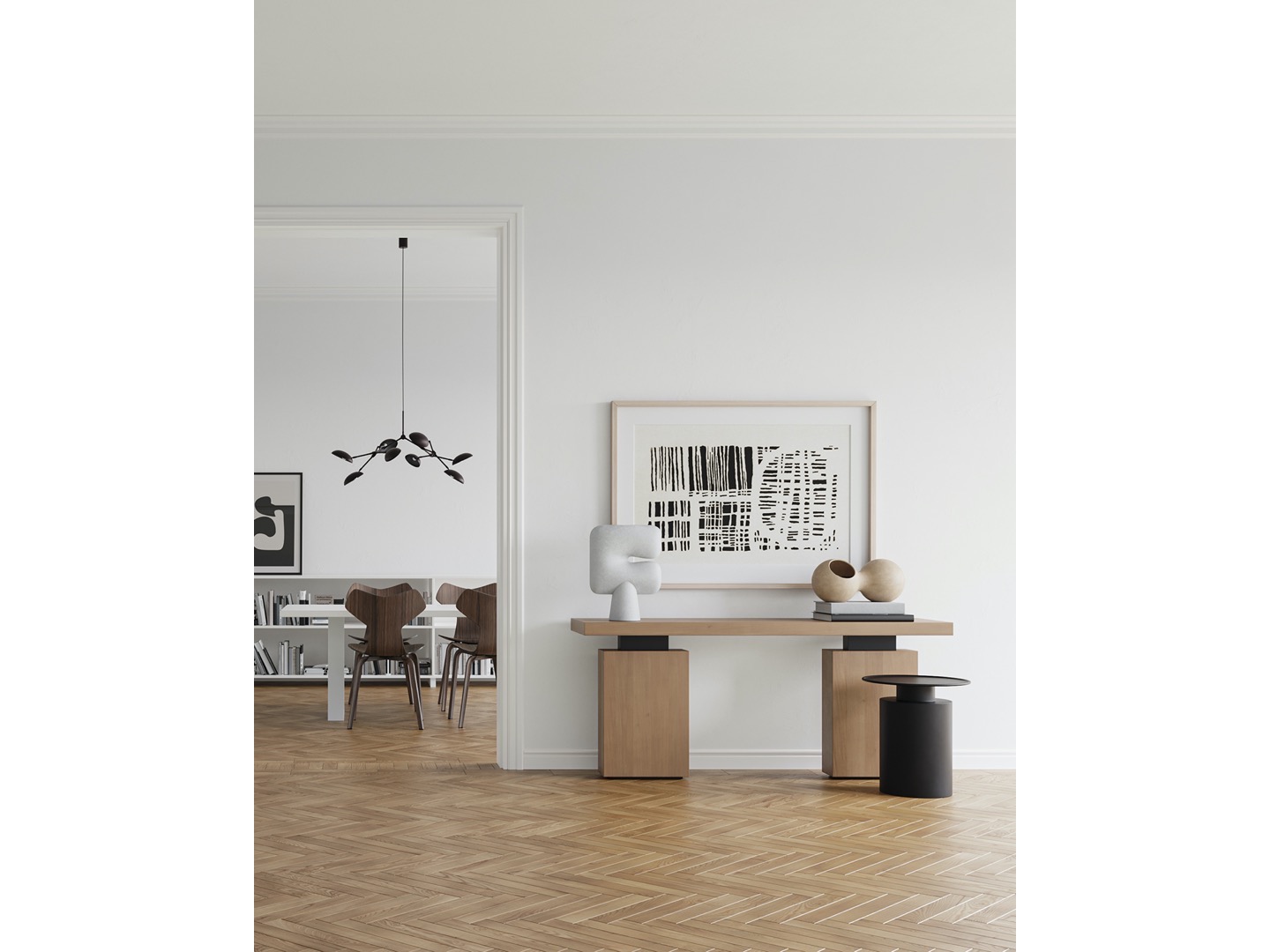 Elementem charakteryzującym stoliki w kolekcji Pillar jest kontrast między cienkim jak papier blatem a obszerną podstawą.