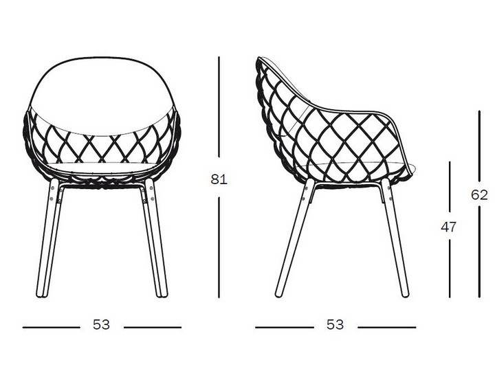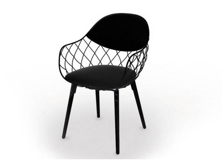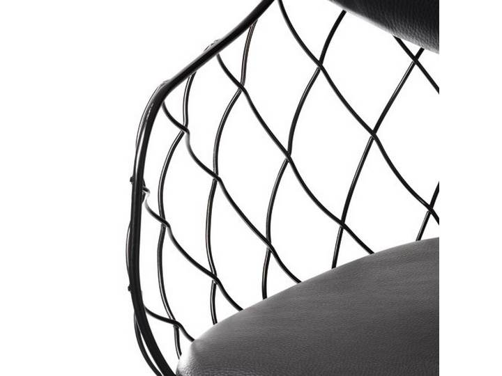 Nogi wykonane są z drewna naturalnego lub malowanego; oparcie i podłokietniki tworzy metalowa, malowana siatka; na oparciu i siedzisku poliuretanowa poducha pokryta tkaniną lub skórą.