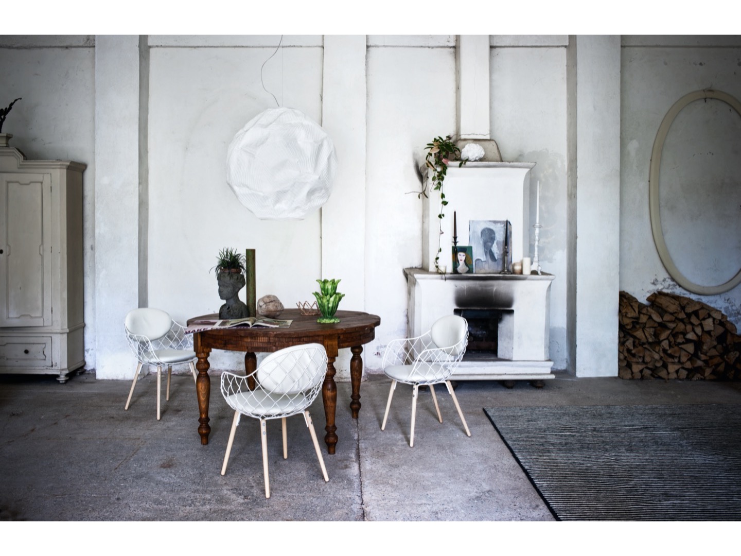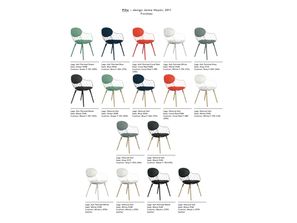 Pina należy do Jaime Hayon. Krzesło o wyjątkowo zwartej bryle, surowe i eleganckie jednocześnie. Niezwykłe połączenie materiałów z pewnością doda uroku każdemu pomieszczeniu.