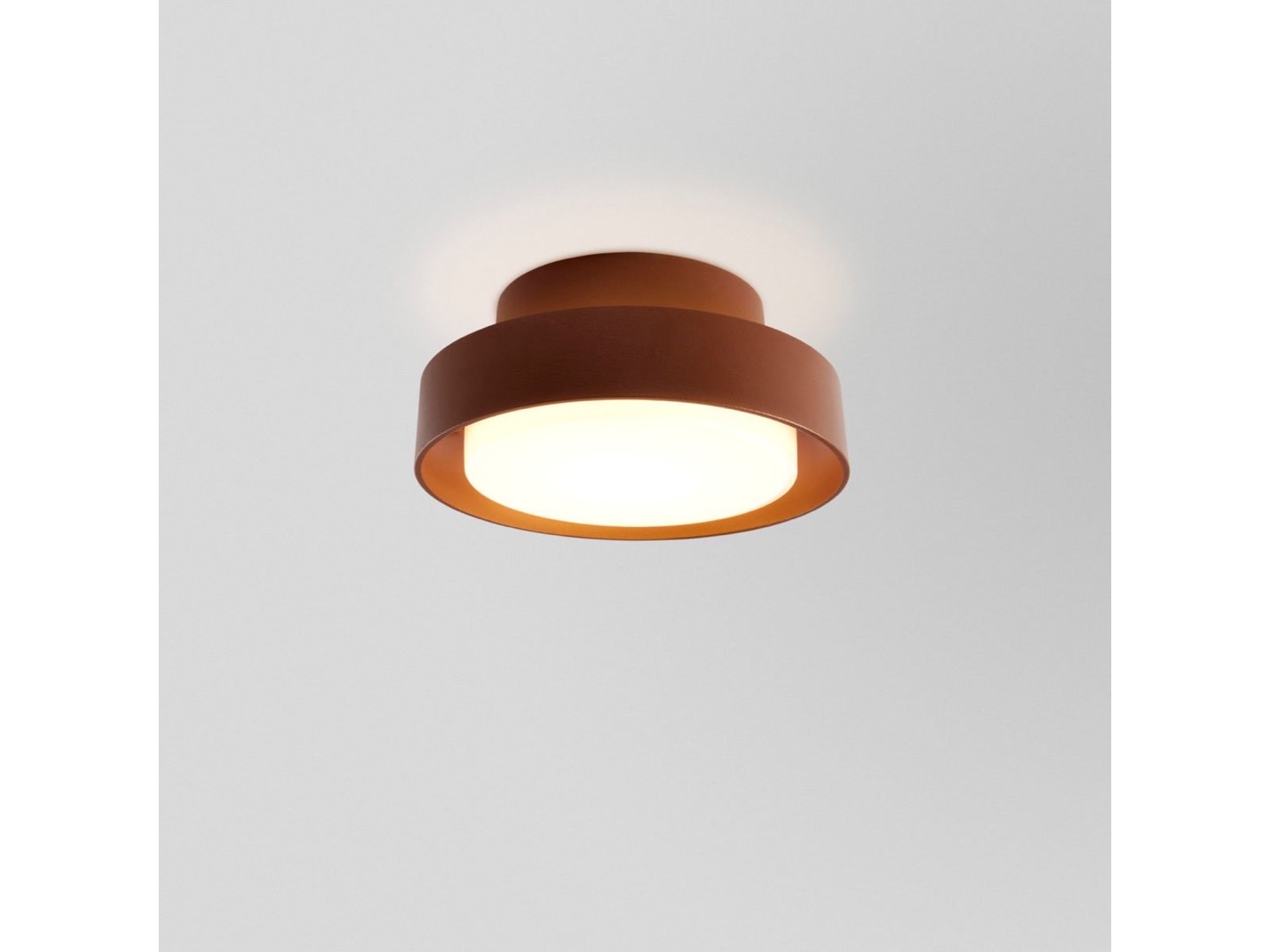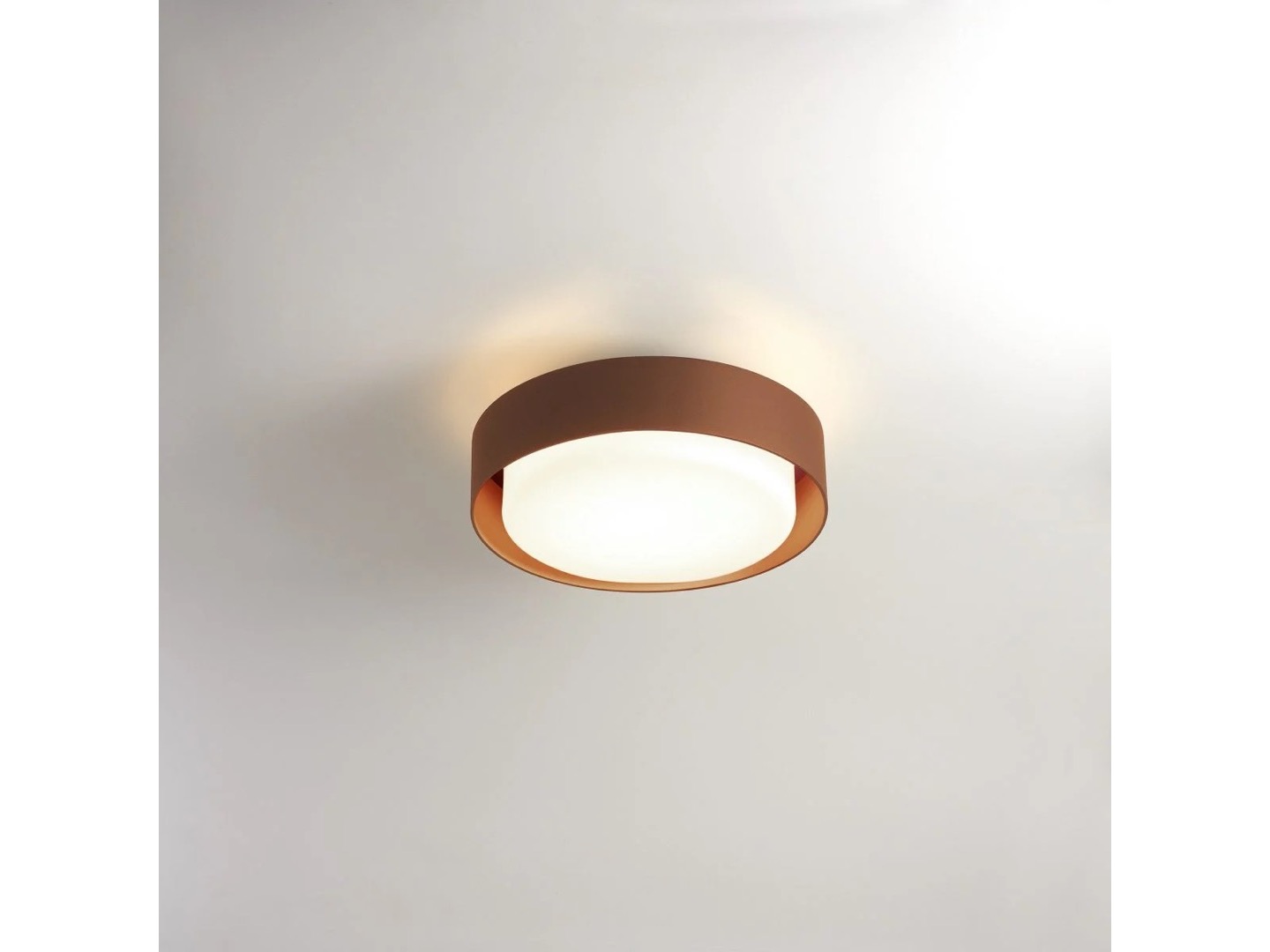 Dyfuzor z białego dmuchanego szkła wydaje się unosić w powietrzu, odłączony od otaczającego go pierścienia, a jego światło filtruje się, tworząc wokół niego świetlistą aureolę. Emanuje prostotą, a jednocześnie jest użyteczny.