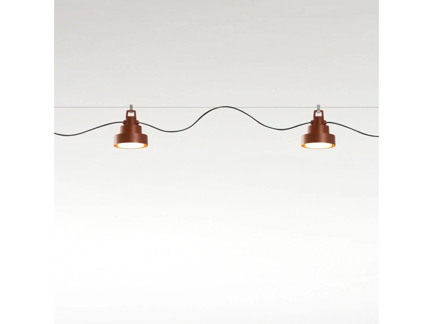 Projekt łączący prostotę i funkcjonalność, który w nowej wersji lampy wiszącej jest wyposażony w girlandę, umożliwiającą łączenie różnych lamp w jeden punkt świetlny. Wreszcie kabel neoprenowy zapewnia wodoodporność. Nowy Plaff-on! kieruje światło bezpośrednio w dół.