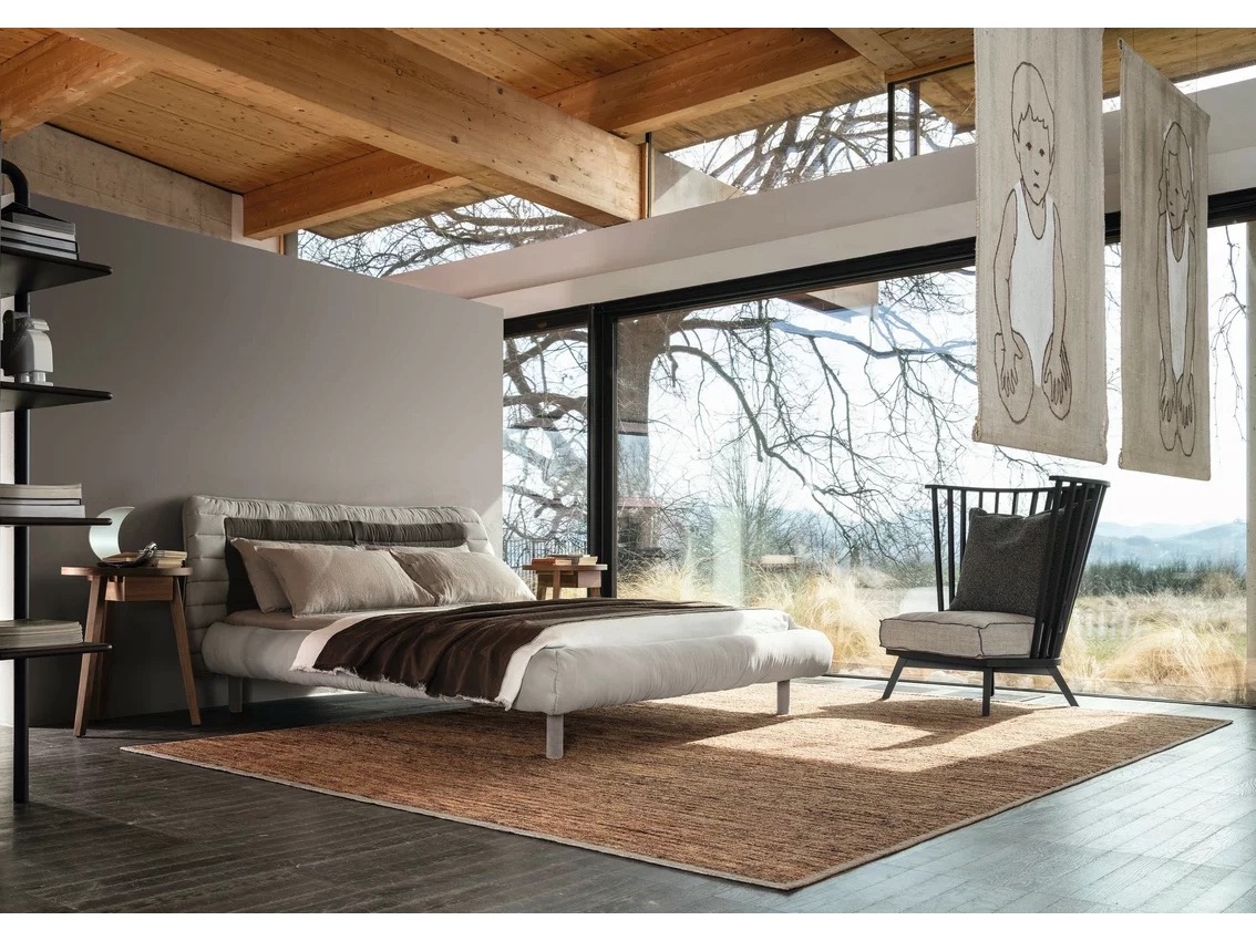 Otoczone wyściełaną ramą łóżko Plumeau ujawnia swoją esencję w miękkich, krętych kształtach, które przywodzą na myśl świat tekstyliów. Stworzony z chęci reinterpretacji nocnego wellness we współczesnym tonie poprzez narrację inspirowaną estetyką azjatyckich społeczności nomadów. Wyściełana powierzchnia ze zdejmowanym pokrowcem przypomina peleryny i namioty ludzi żyjących na polach Mongolii, odległym miejscu, które przywołuje senne krajobrazy.