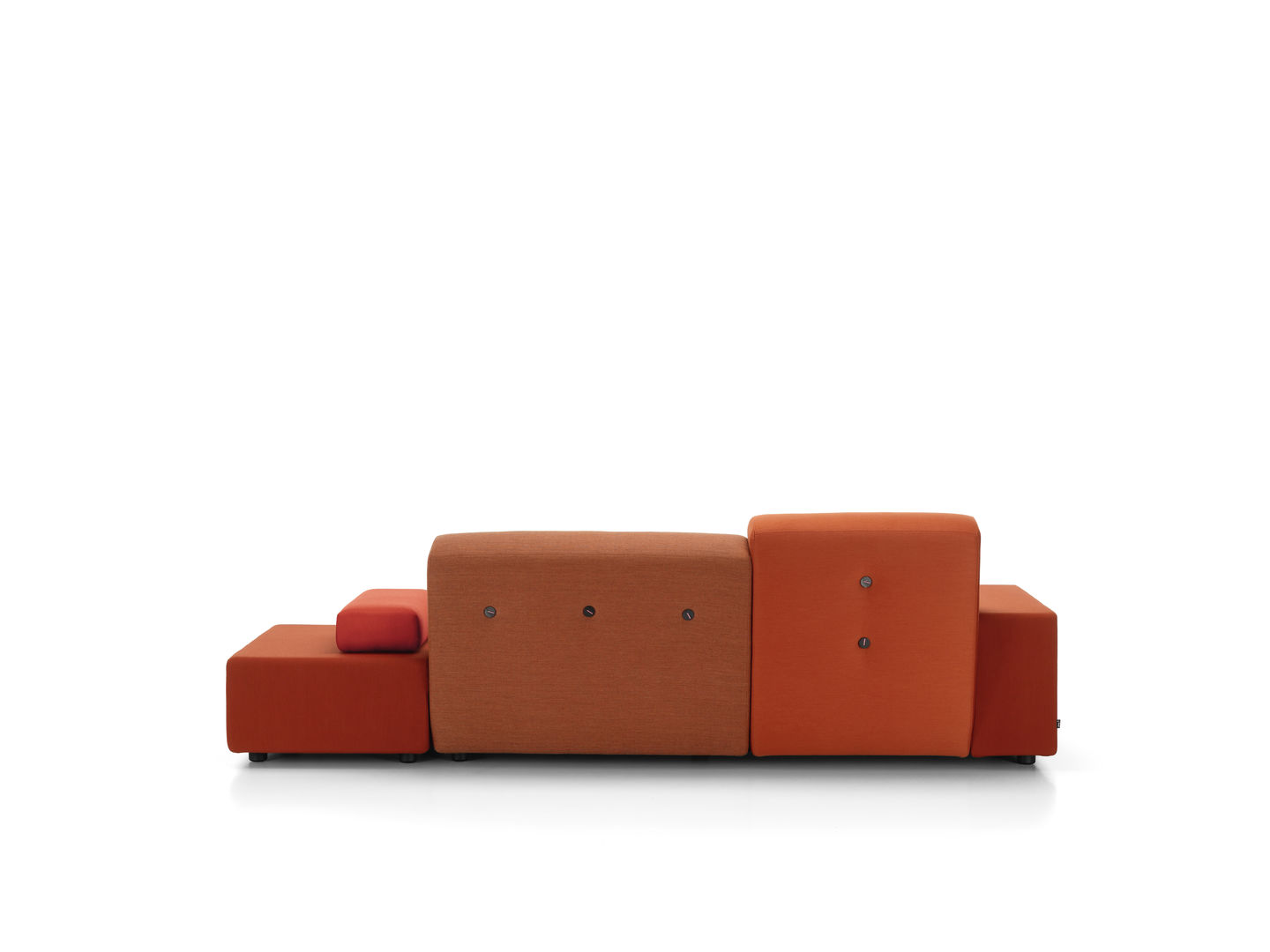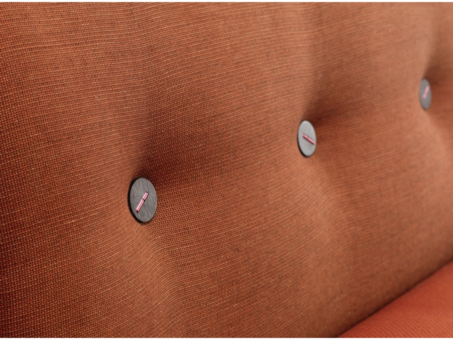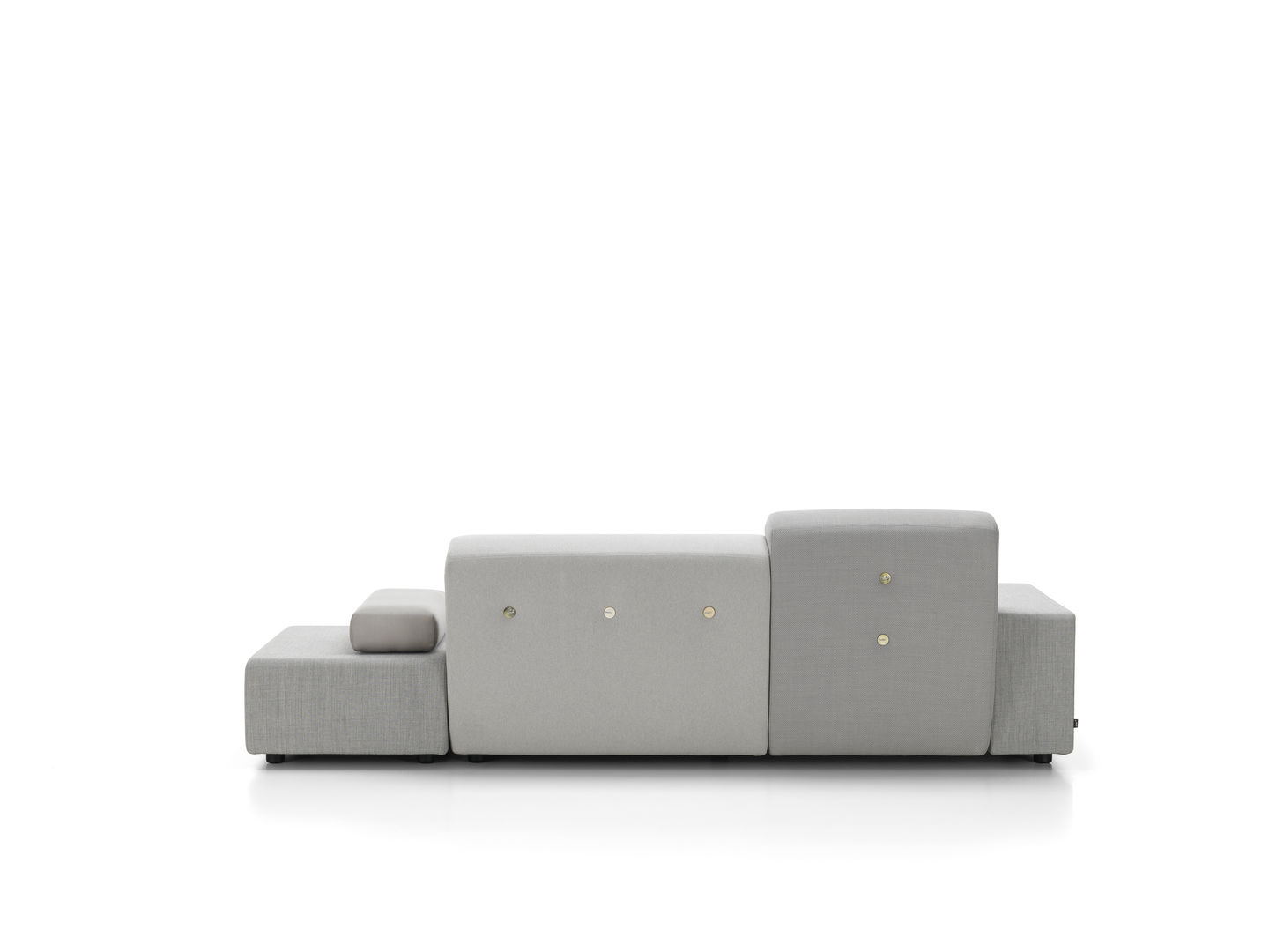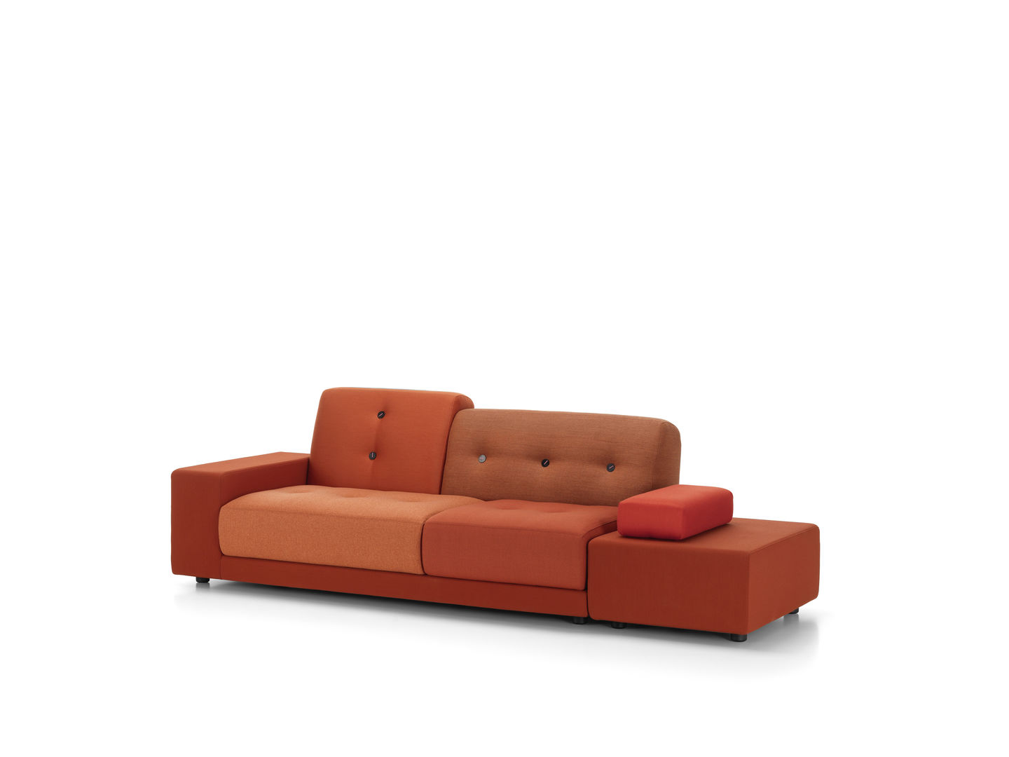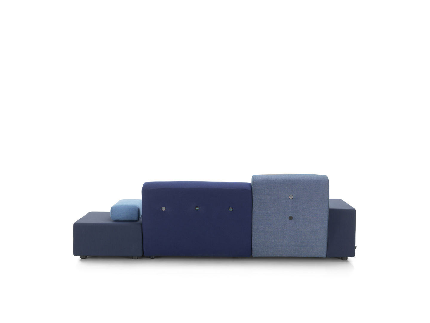 Sofa Polder ma rozłożysty kształt, horyzontalnie rozciągający się w przestrzeni. Hella Jongerius uważnie wybrała pięć kombinacji kolorystycznych i tkanin, udekorowała je guzikami wykonanymi z naturalnych materiałów.