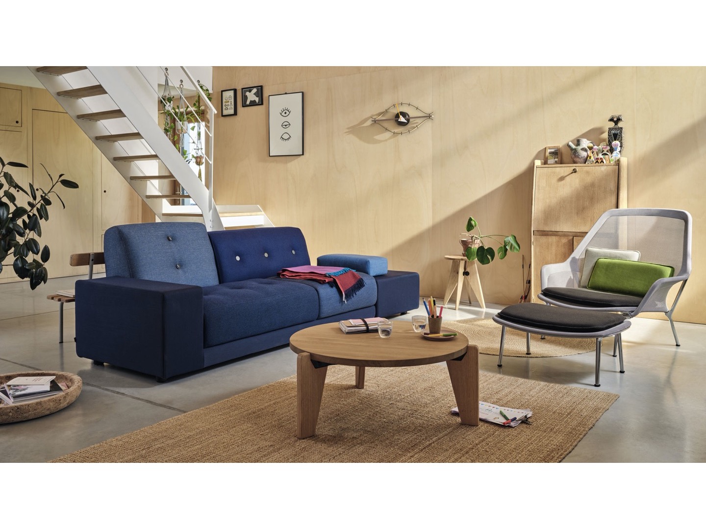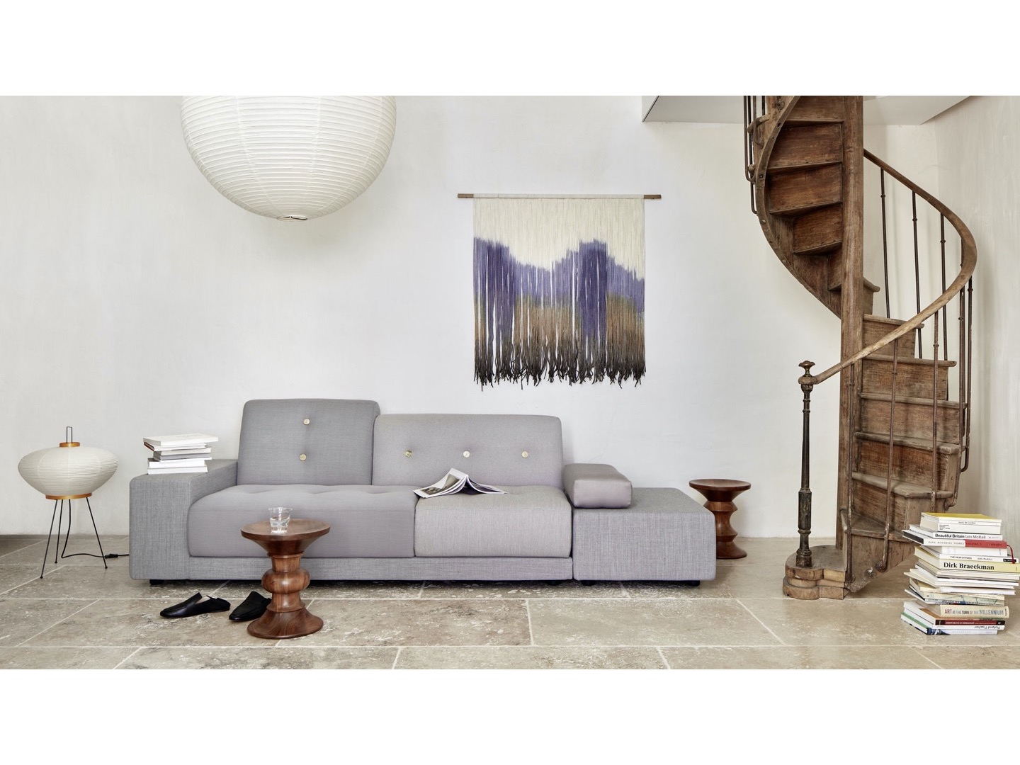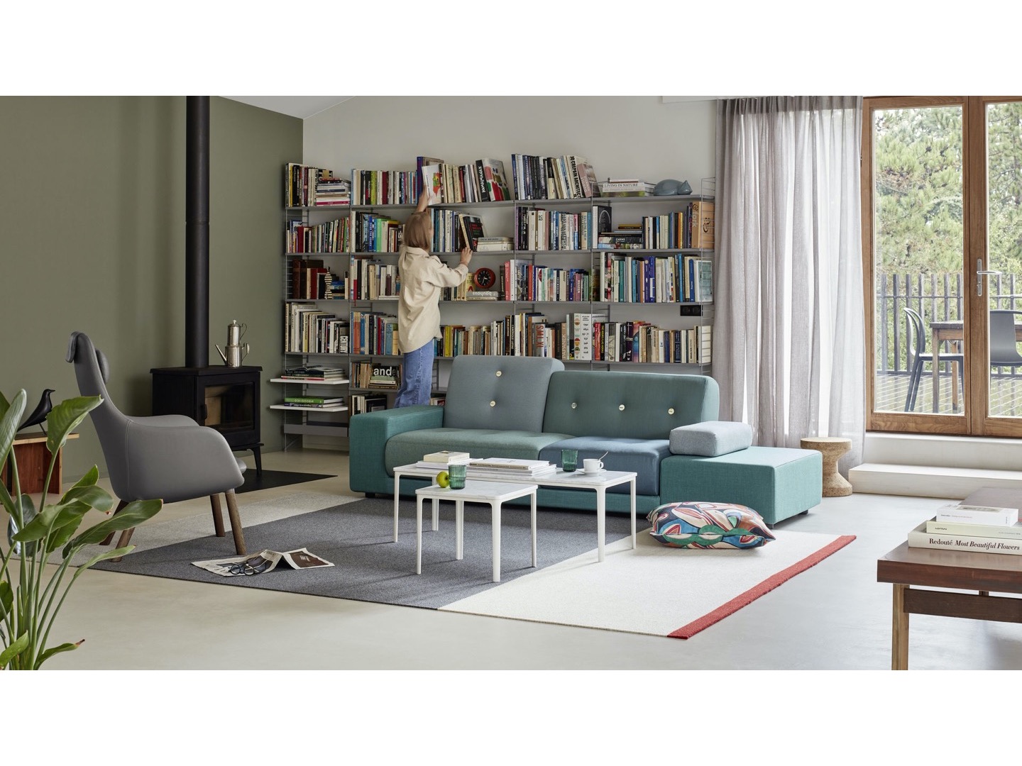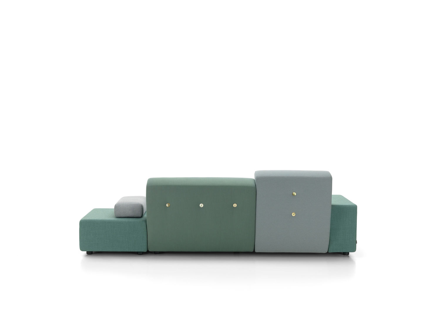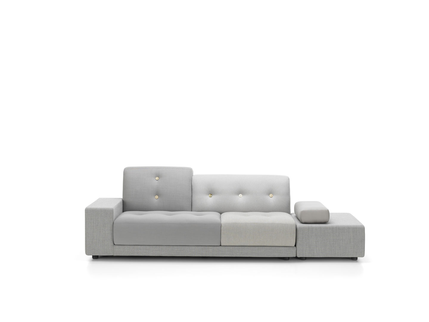 Sofa Polder ma rozłożysty kształt, horyzontalnie rozciągający się w przestrzeni. Hella Jongerius uważnie wybrała pięć kombinacji kolorystycznych i tkanin, udekorowała je guzikami wykonanymi z naturalnych materiałów.