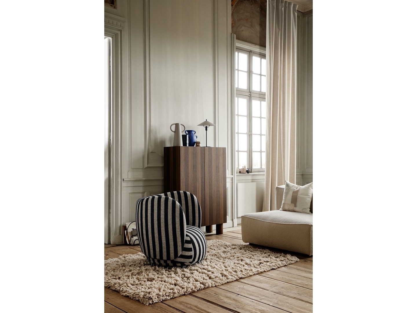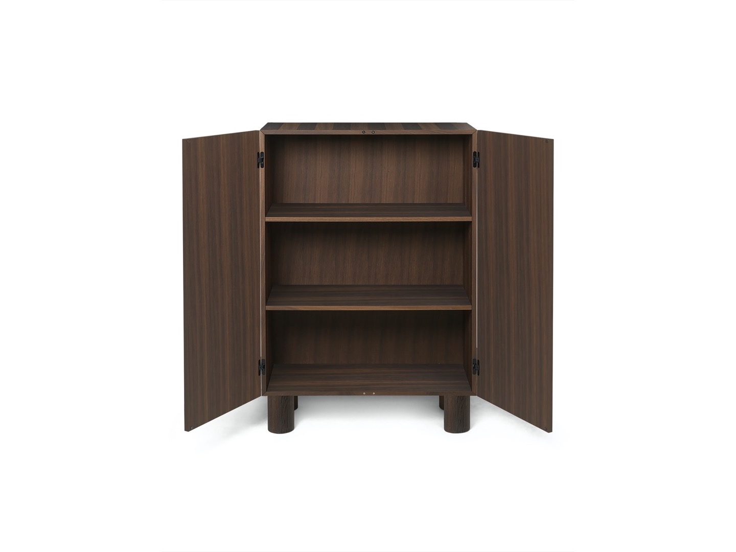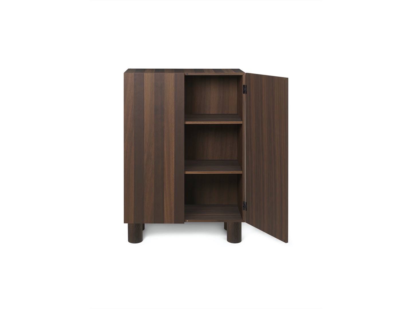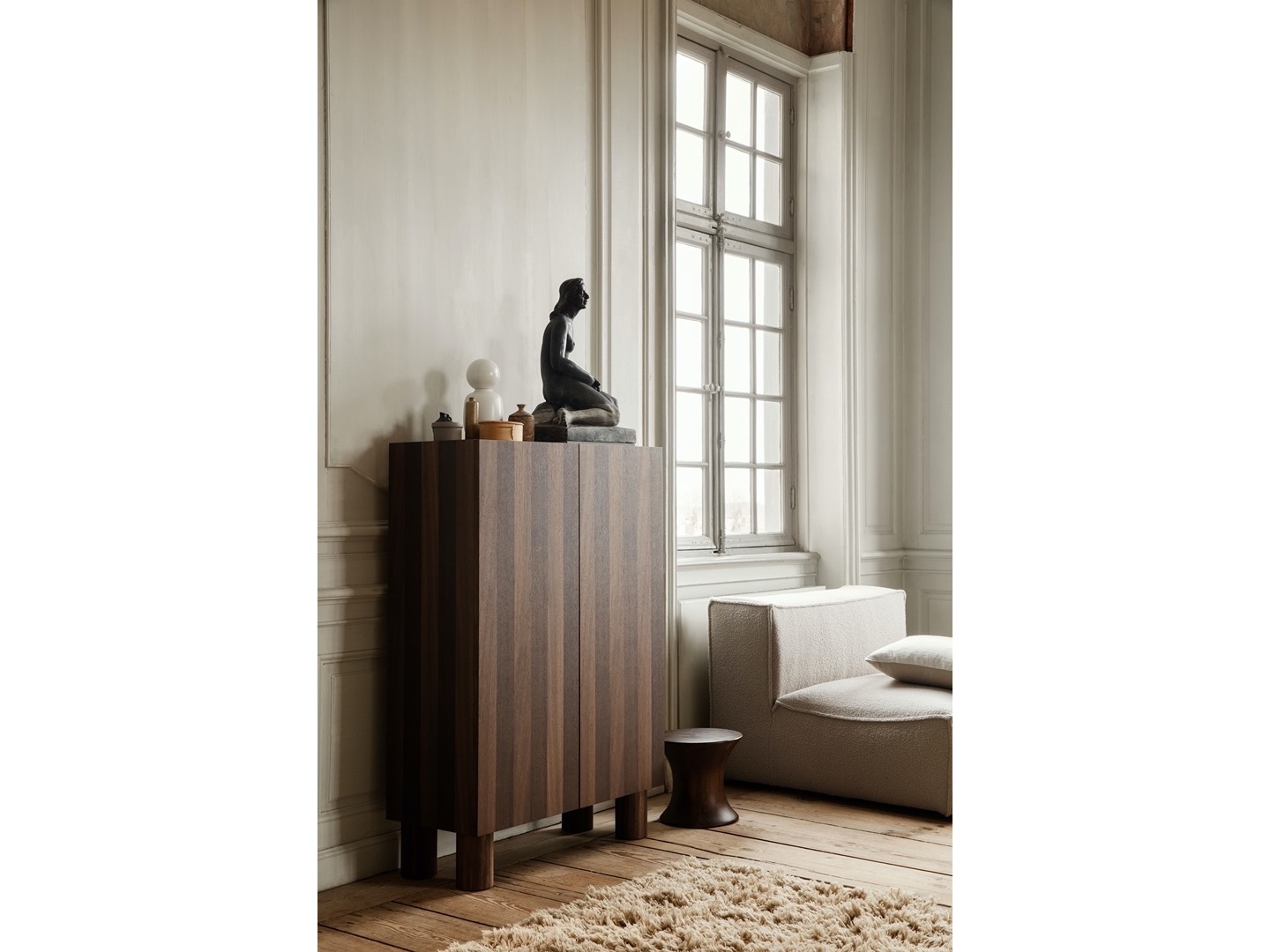 Zainspirowana brutalizmem, szafka do przechowywania Post bawi się objętością, prezentując niezwykłe rozwiązanie do przechowywania. Zachowując prosty wyraz pasiastego frontu, drzwi szafki są otwierane i zamykane za pomocą ukrytego mechanizmu, aby uniknąć widocznych uchwytów.