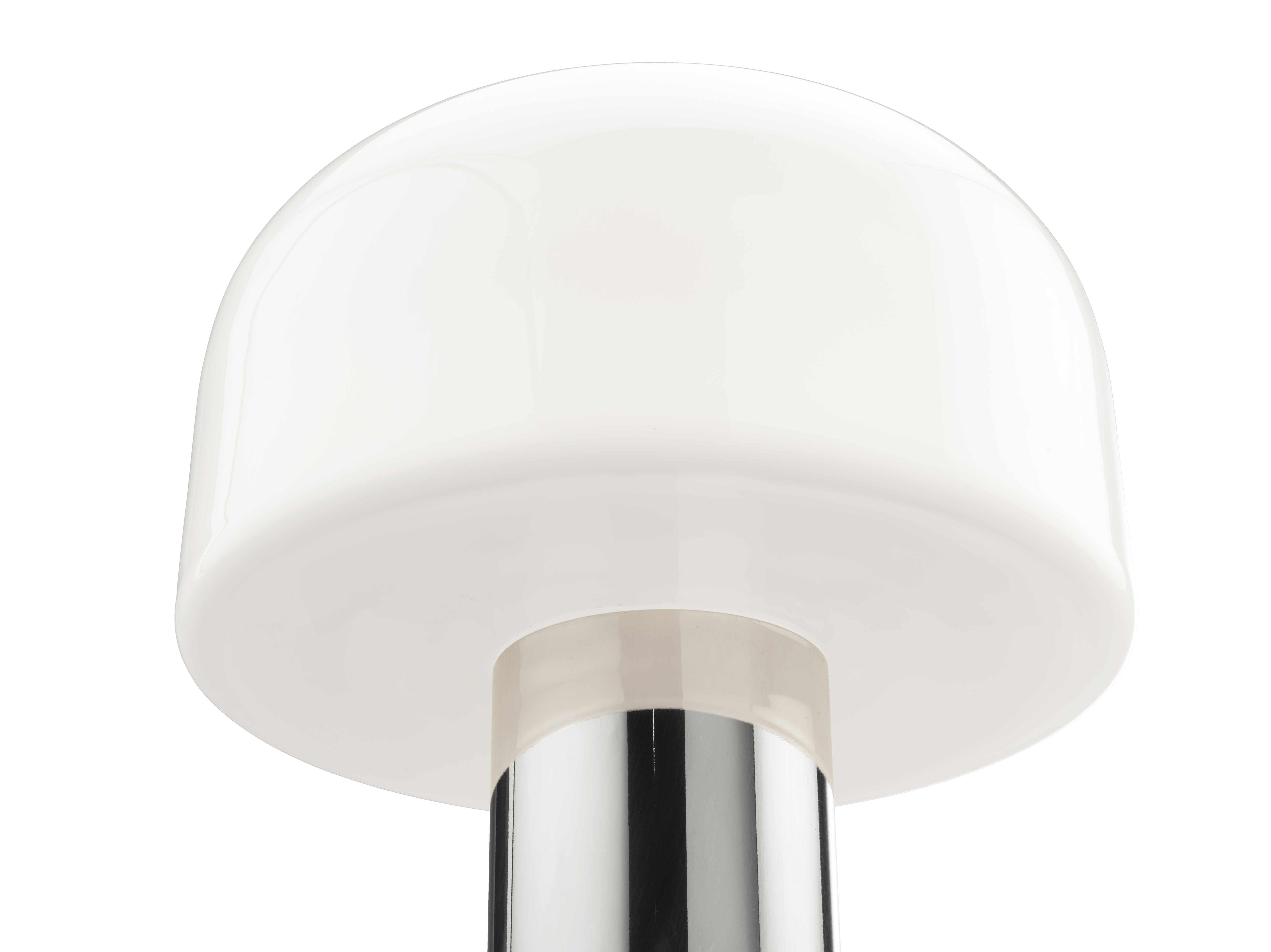 Wielkoskalowa lampa stołowa. Kopuła składa się z potrójnego dyfuzora ze szkła opalowego, zbudowanego jako kanapka ze szklanych warstw, z białą warstwą umieszczoną między dwiema przezroczystymi, które są jednocześnie dmuchane. Grubości poszczególnych warstw są różne. Projekt ten został opracowany we współpracy z działem badawczo-rozwojowym firmy Flos. Zastosowanie potrójnego szkła opalowego i duży rozmiar, który utrzymuje źródło światła w pewnej odległości od wewnętrznej powierzchni dyfuzora, pozwala na równomierne, ciepłe i przyjazne oświetlenie, tworząc przyjemną atmosferę w przestrzeni. Ta wersja lampy Bellhop Glass, o średnicy 33 cm, spoczywa na cylindrycznej aluminiowej podstawie o średnicy 12 cm i jest dostępna w wersjach Bright Aluminium, Cioko i White. Materiały wyróżniają się nie tylko walorami estetycznymi, ale także możliwością recyklingu po zakończeniu cyklu życia, podkreślając zaangażowanie firmy Flos w zrównoważony rozwój.