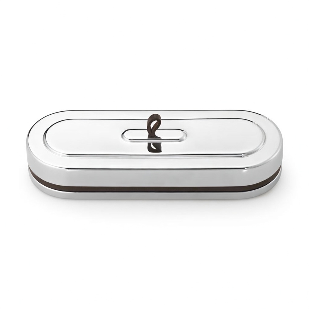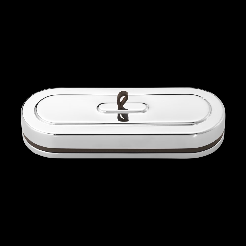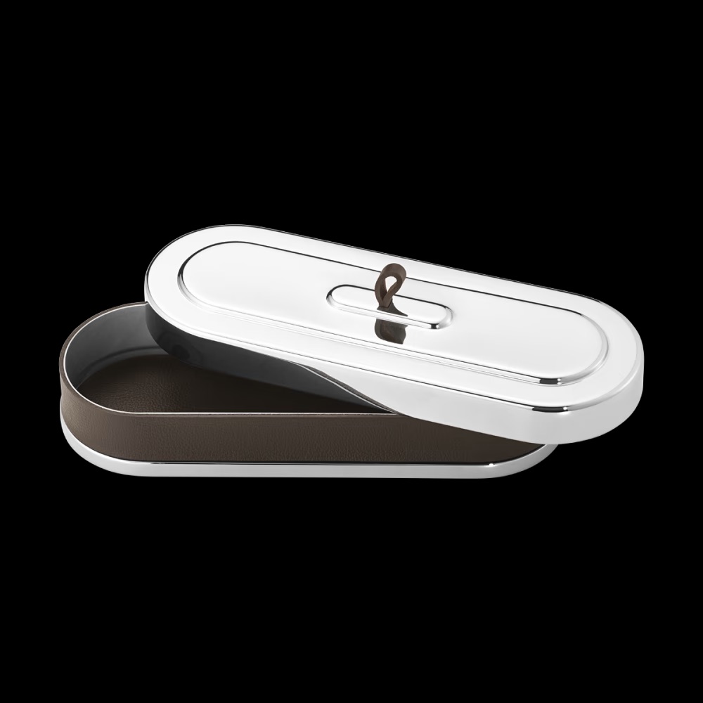 Ten efektowny pojemnik ze stali nierdzewnej dołącza do kolekcji Manhattan, eleganckich akcesoriów domowych inspirowanych estetyką Art Deco z 1920 roku w Nowym Jorku. Zdefiniowany przez długi, owalny kształt i wyposażony w ozdobne detale i pasek z brązowej skóry, element może być używany do przechowywania wszystkiego, od kluczy po długopisy - lub czegokolwiek, co najlepiej pasuje.