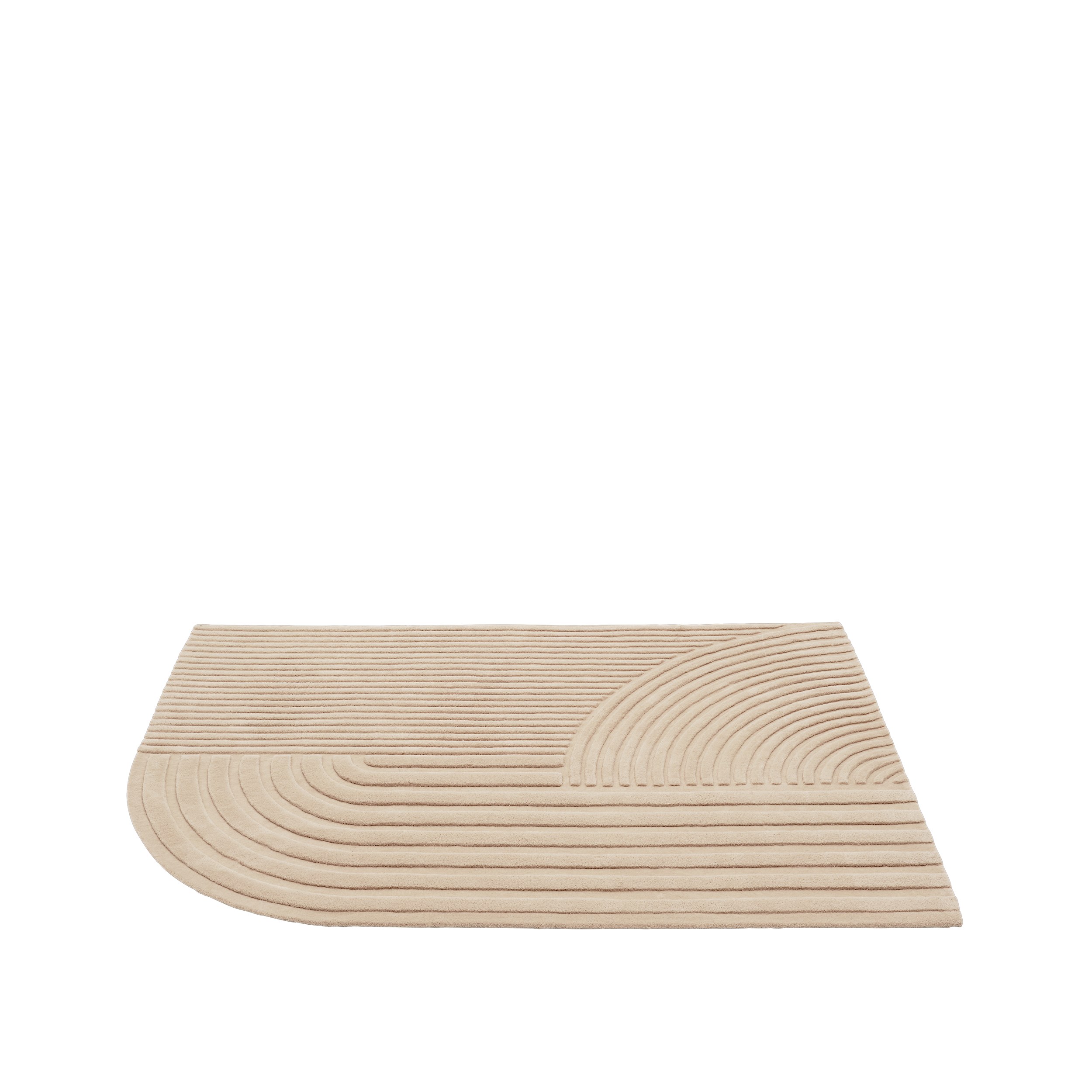 Relevo to miękki dywan o wyraźnie rzeźbiarskiej jakości. Jego uderzający wzór graficzny powstaje poprzez przycinanie tuftowanej wełny na różnych poziomach, tworząc w ten sposób przyciągającą wzrok grę cieni, która daje wrażenie dwukolorowego, a nie monochromatycznego koloru. Pojedynczy zaokrąglony narożnik dywanu nadaje mu niepowtarzalnego charakteru i dynamicznego wyrazu w każdym otoczeniu.