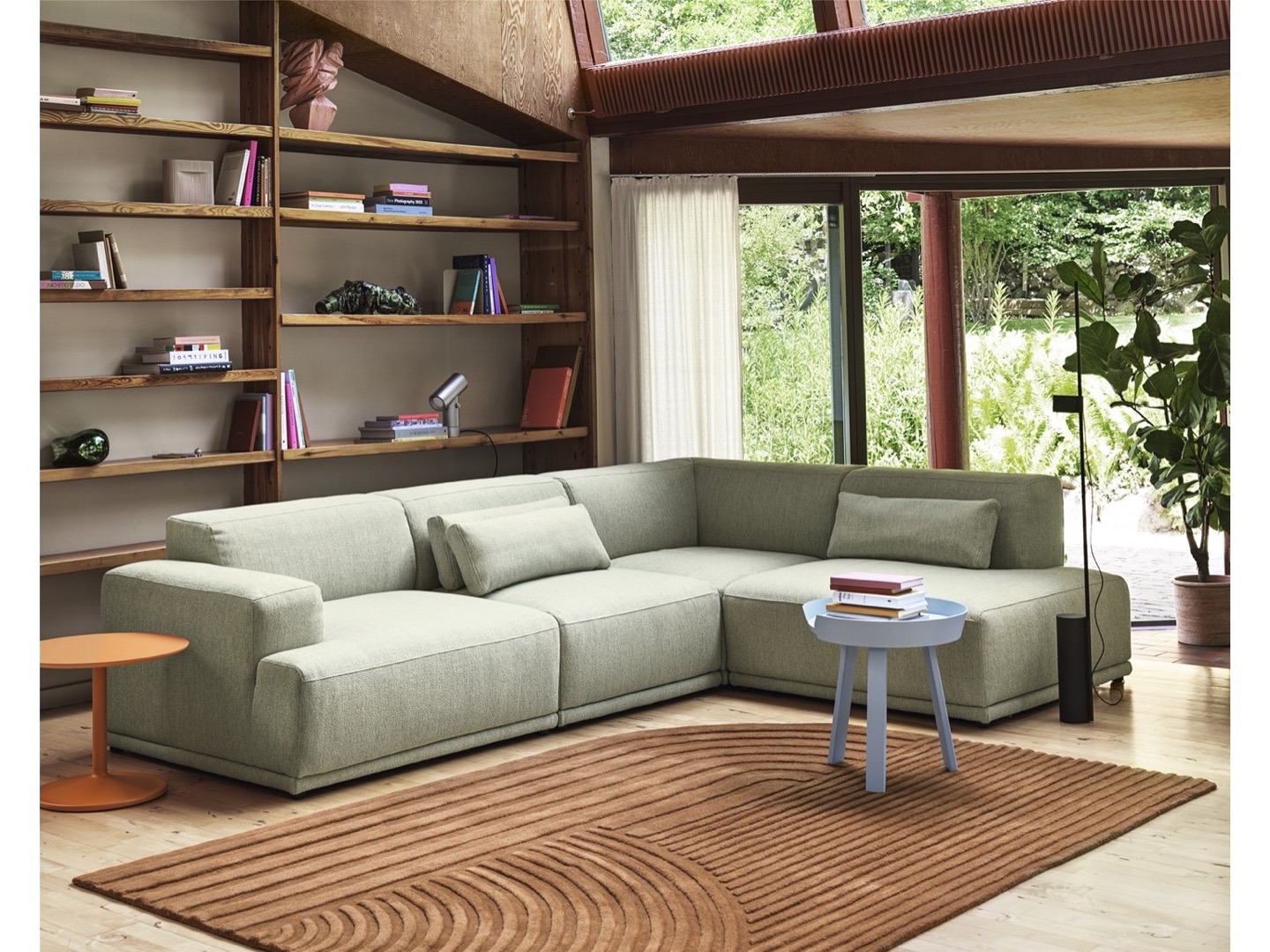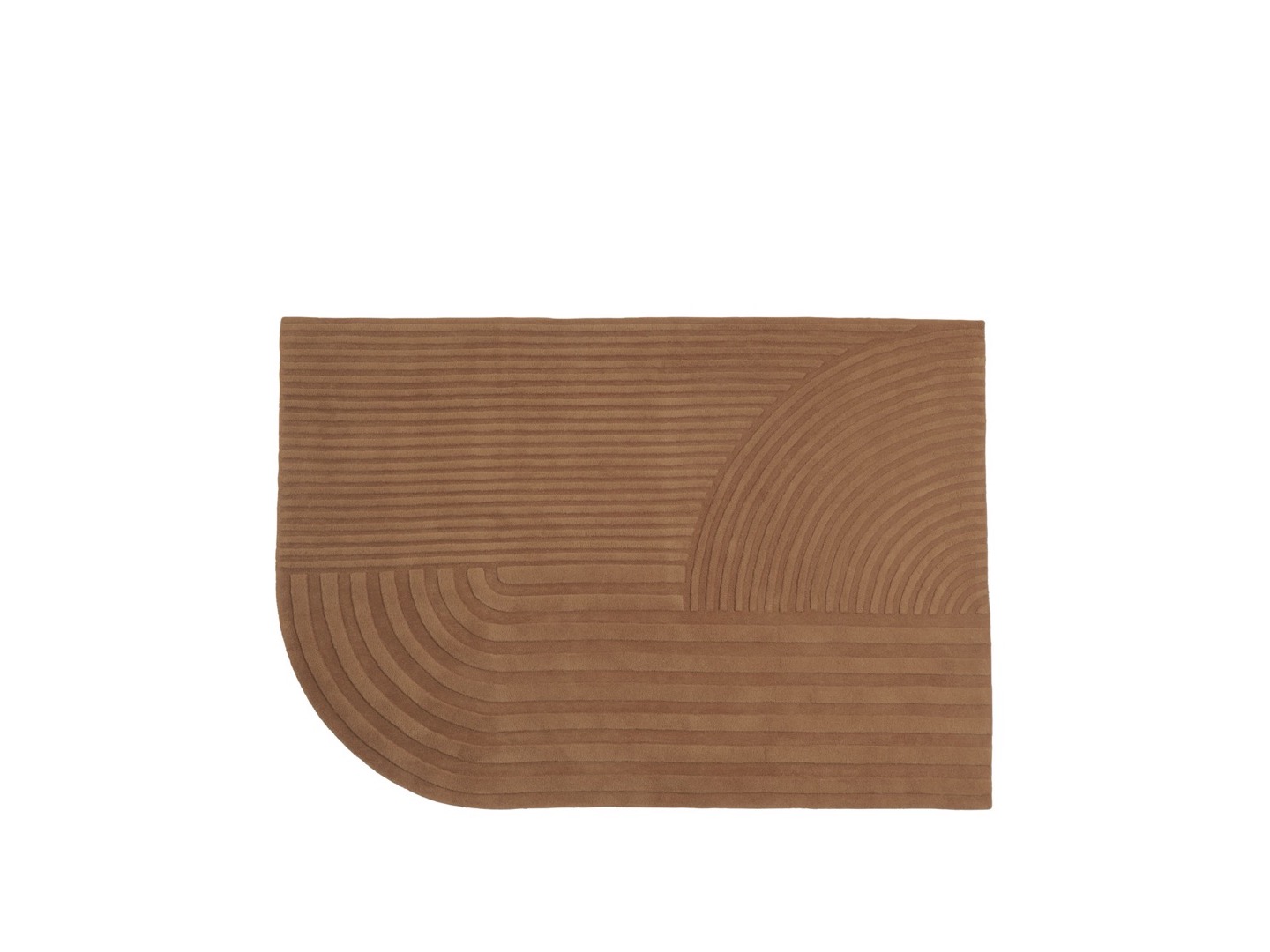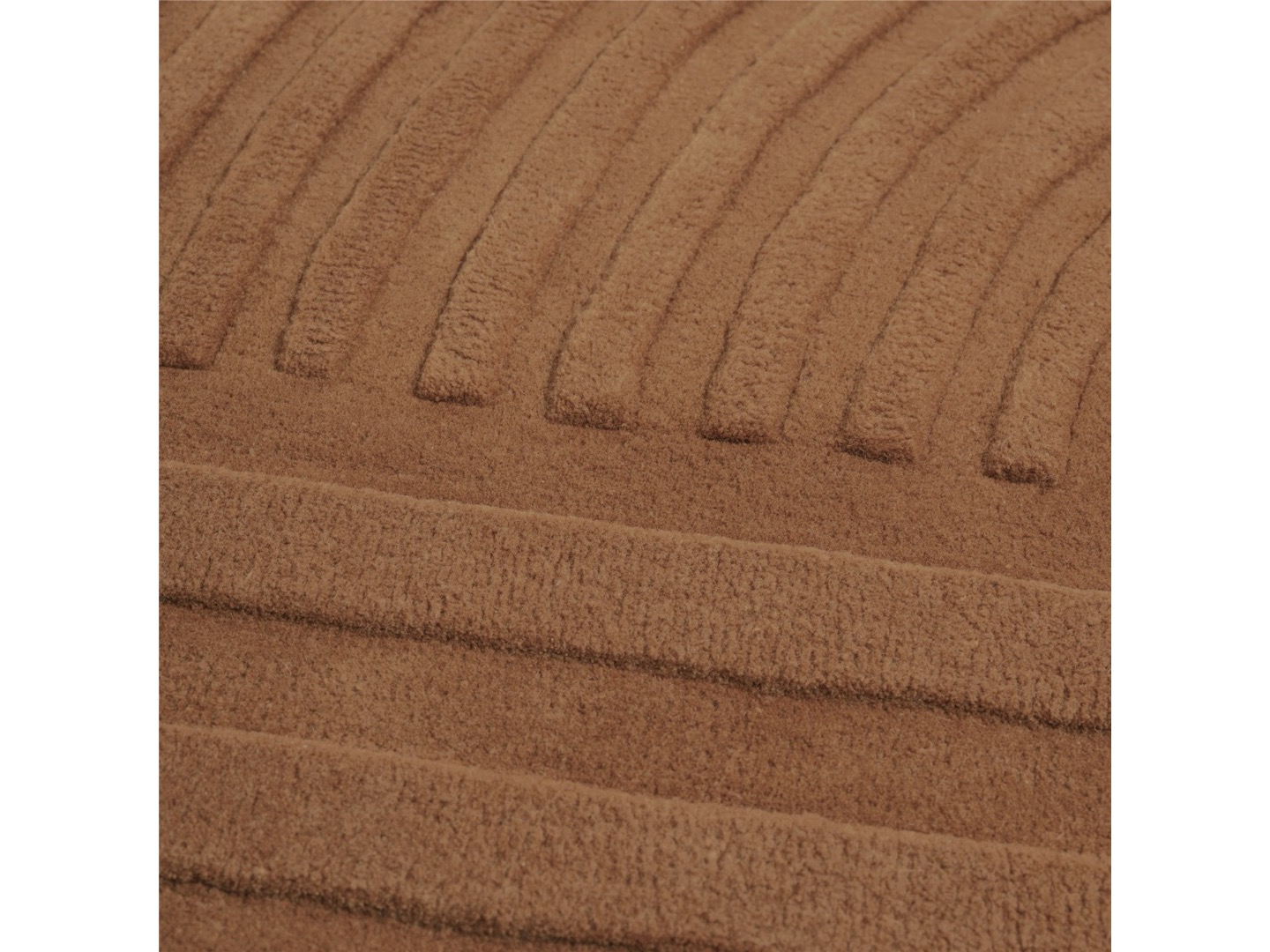 Relevo to miękki dywan o wyraźnie rzeźbiarskiej jakości. Jego uderzający wzór graficzny powstaje poprzez przycinanie tuftowanej wełny na różnych poziomach, tworząc w ten sposób przyciągającą wzrok grę cieni, która daje wrażenie dwukolorowego, a nie monochromatycznego koloru. Pojedynczy zaokrąglony narożnik dywanu nadaje mu niepowtarzalnego charakteru i dynamicznego wyrazu w każdym otoczeniu.