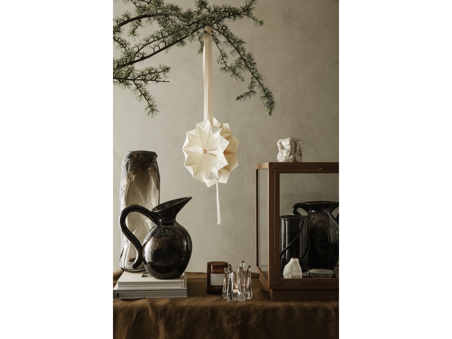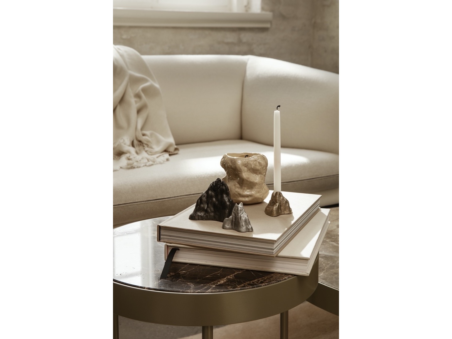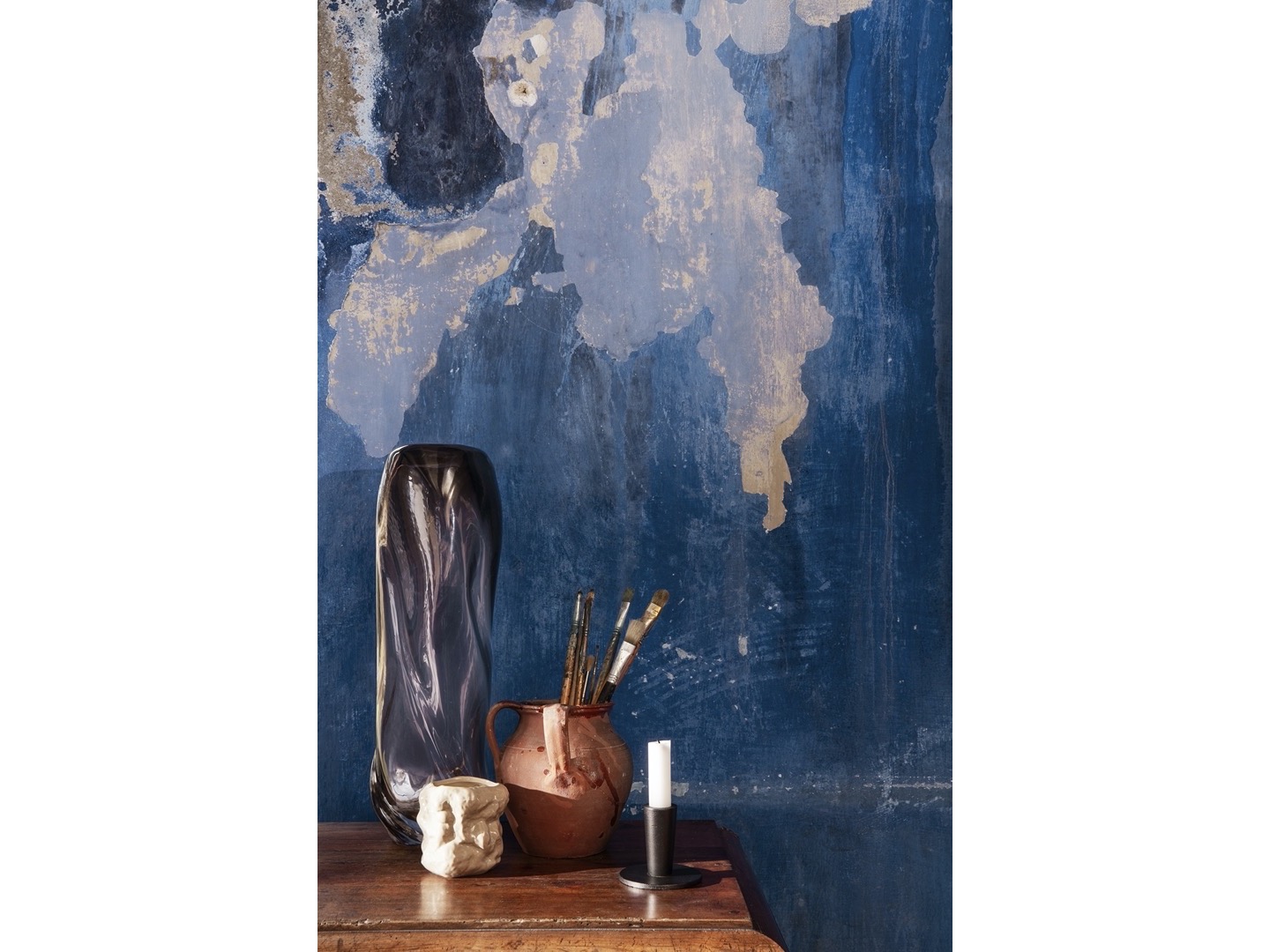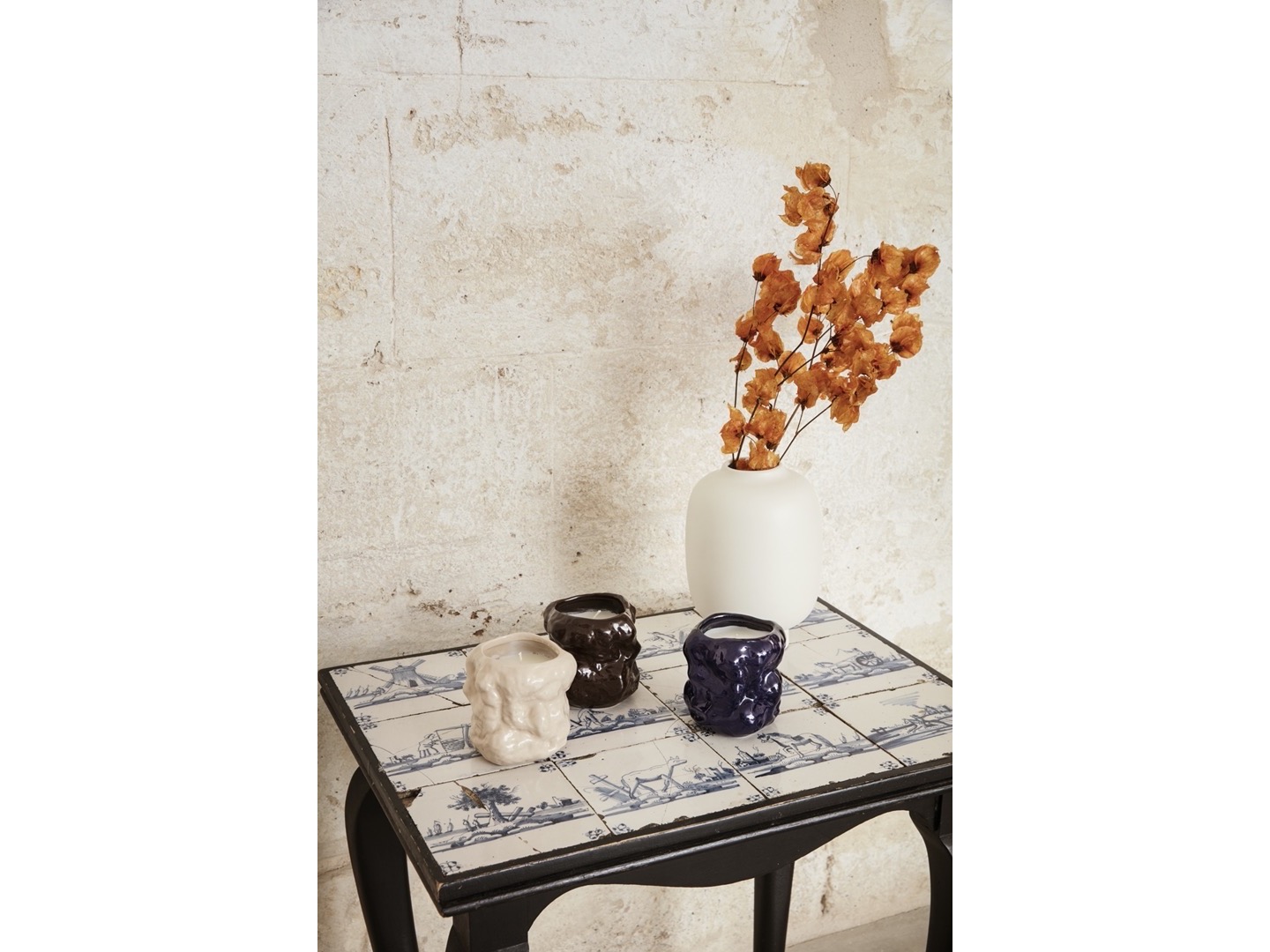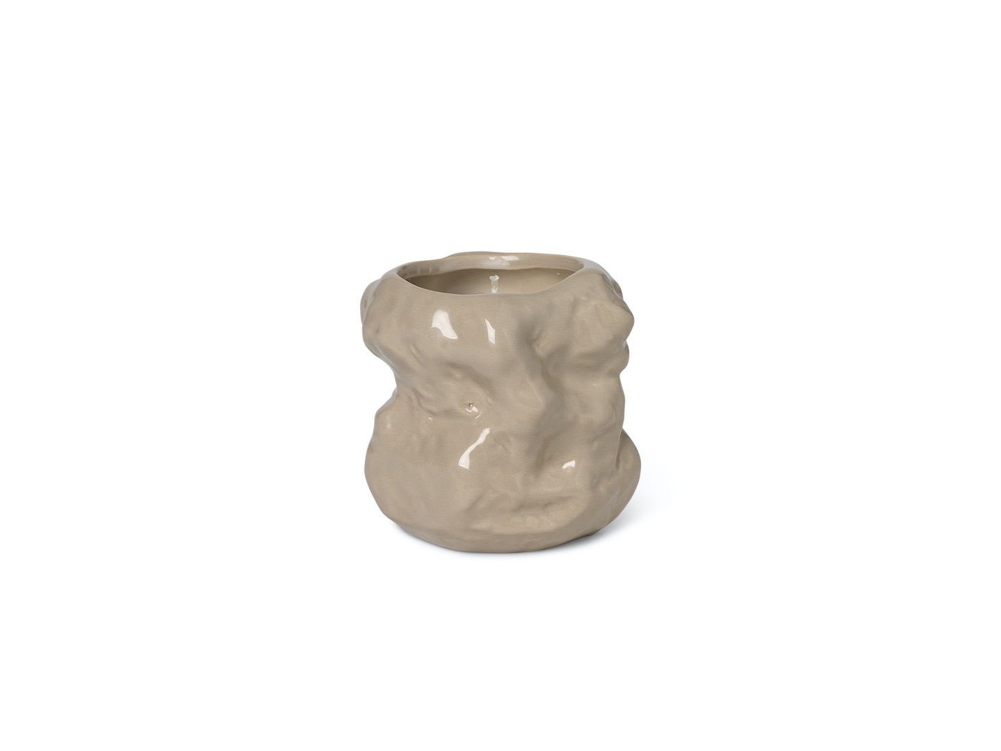 Wazon Tuck został przeprojektowany jako świecznik. Pognieciona, odbijająca światło powierzchnia, wykonana ręcznie, nadaje powierzchni cechy papieru. Kaszmirowa świeca zapachowa Tuck ma subtelny zapach rumianku.