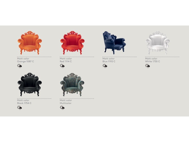 Najnowszy Proust jest wierną kopią projektu Poltrona di Proust z roku 1978 wykonaną w całości z polietylenu. Idealny do użytku zewnętrznego.