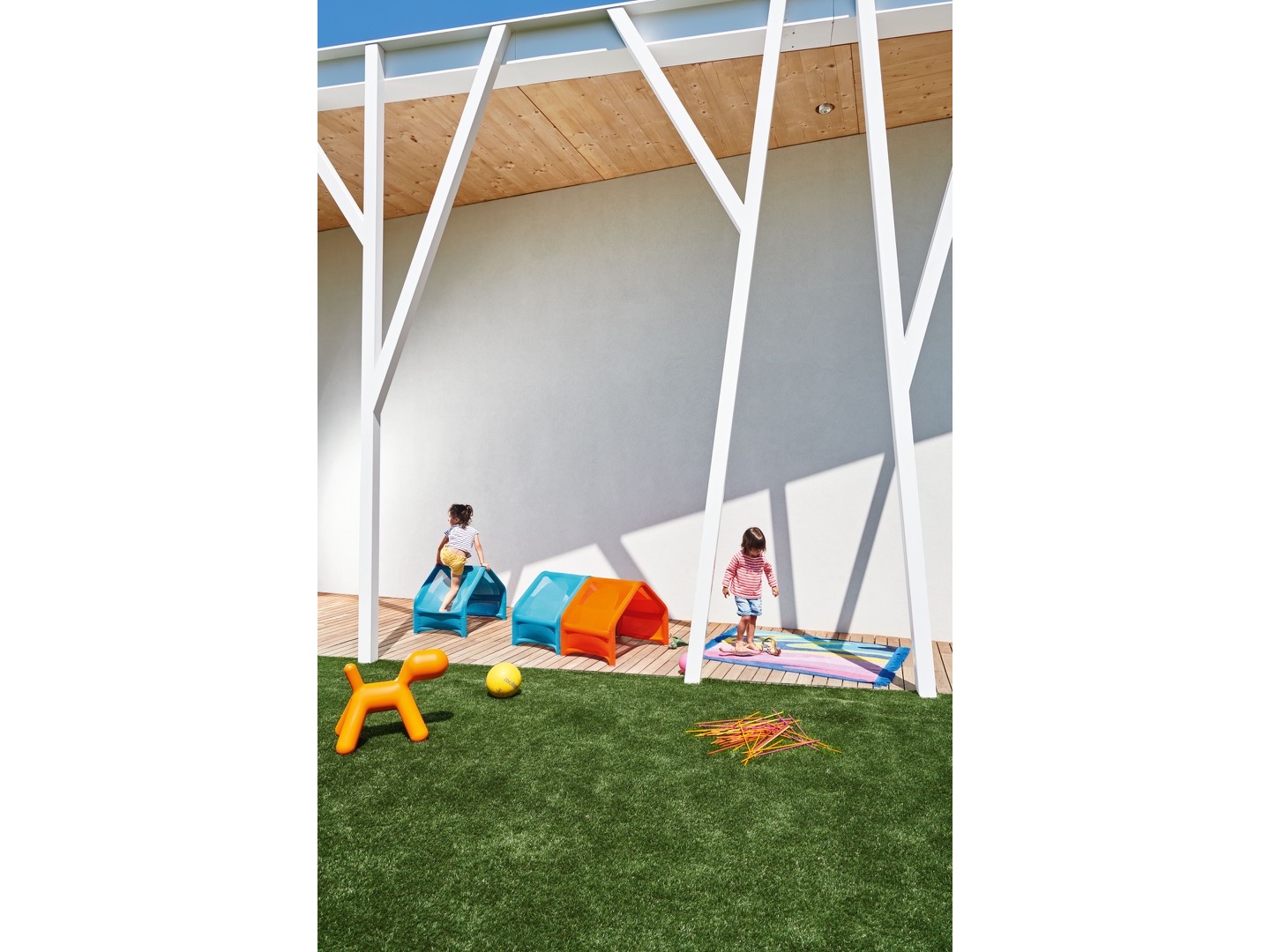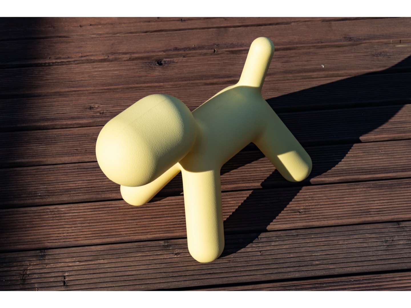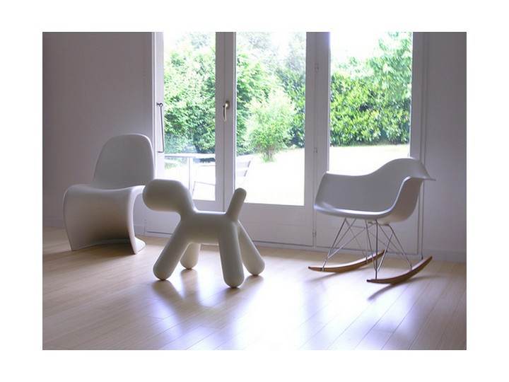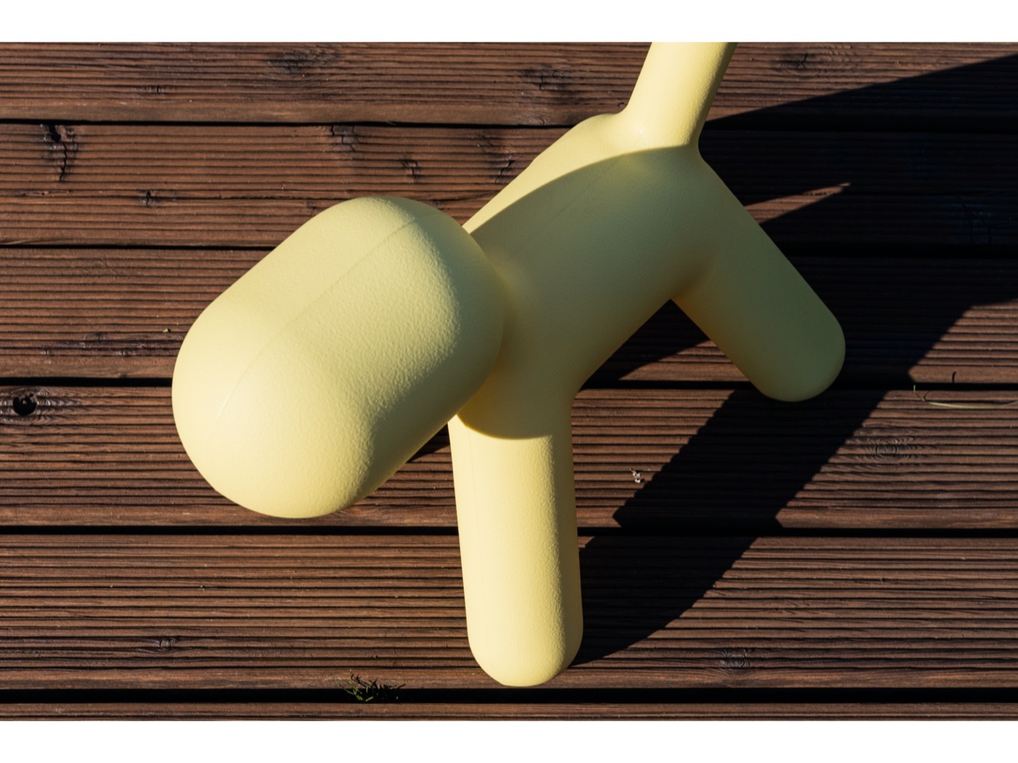 Nie szczeka, nie tarmosi Twoich butów, nie merda ogonem, ale założymy się, że przywoła uśmiech na Twojej twarzy. Eero Aarnio powołał do życia Puppy - pieska, który stał się wyzwaniem w wojnie z nudnymi siedziskami. Piesek stworzony w 2005 roku, w czterech wymiarach jest siedziskiem, zabawką, czy dekoracją do pokoju dziecinnego. Dzięki prostocie designu oraz zabawnej formie, było tylko kwestią czasu, kiedy dorośli go zapragną. I tak w rok później powstała także wersja XL, dla dorosłych. Obok bieli i zieleni, piesek występuje także w pomarańczu. Możemy go także używać na zewnątrz. Wyobraźmy go sobie na trawie czy tarasie? I tu sięgamy tematu, gdy mebel stworzony pierwotnie dla dzieci, staje się także pragnieniem dorosłych. Bo choć nie przyniesie Ci rano gazety, i tak od czasu do czasu podrapiesz go pod brodą. Abstrakcyjny pies wykonany jest z tworzywa. Dostępny w różnych wymiarach i kolorach. Może być wystawiony na zewnątrz.