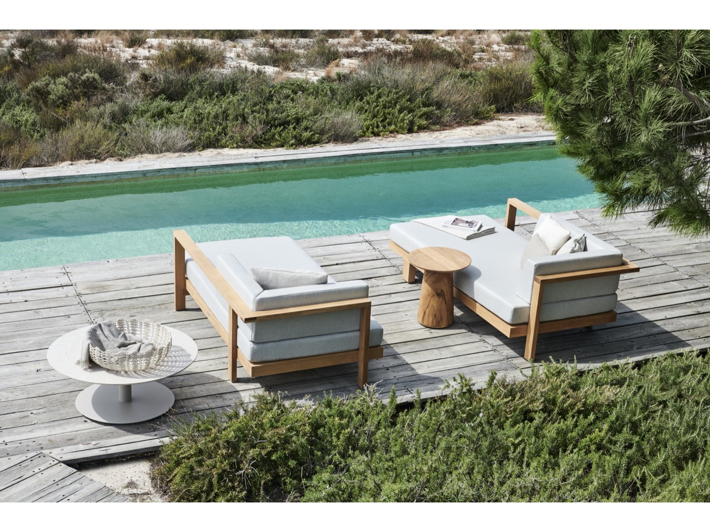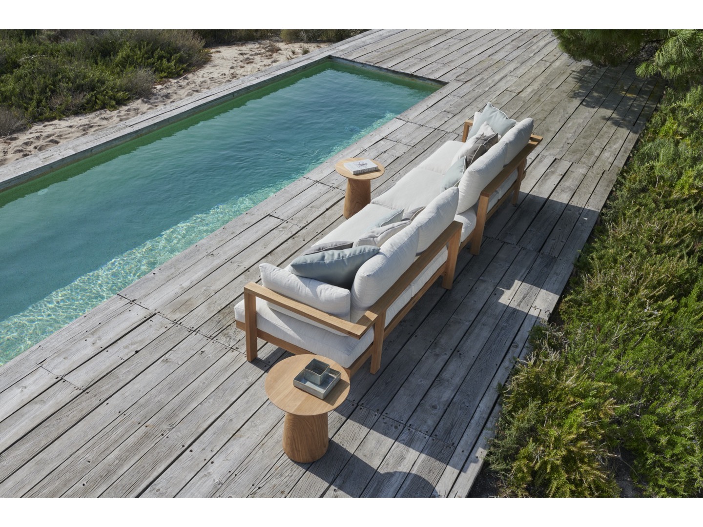 Tworząc Pure projektant Andrei Munteanu sprowadza design do esencji, pozbawionej wszelkiego nadmiaru: czystej prostoty i elegancji. Ta modułowa sofa zewnętrzna składa się z pięciu elementów, które można łatwo połączyć w wybrany zestaw wypoczynkowy. Sofa dostępna jest z dwoma rodzajami poduszek.